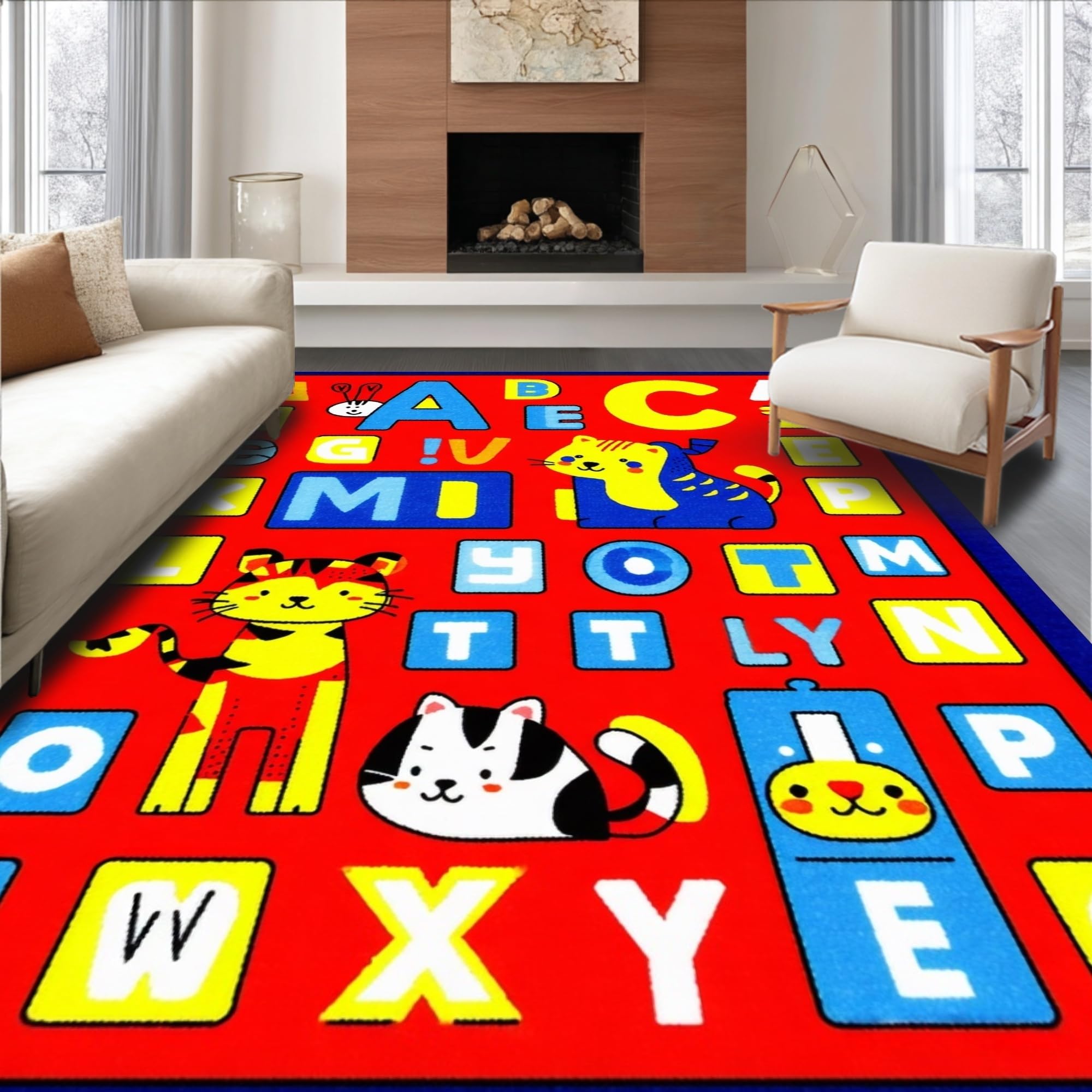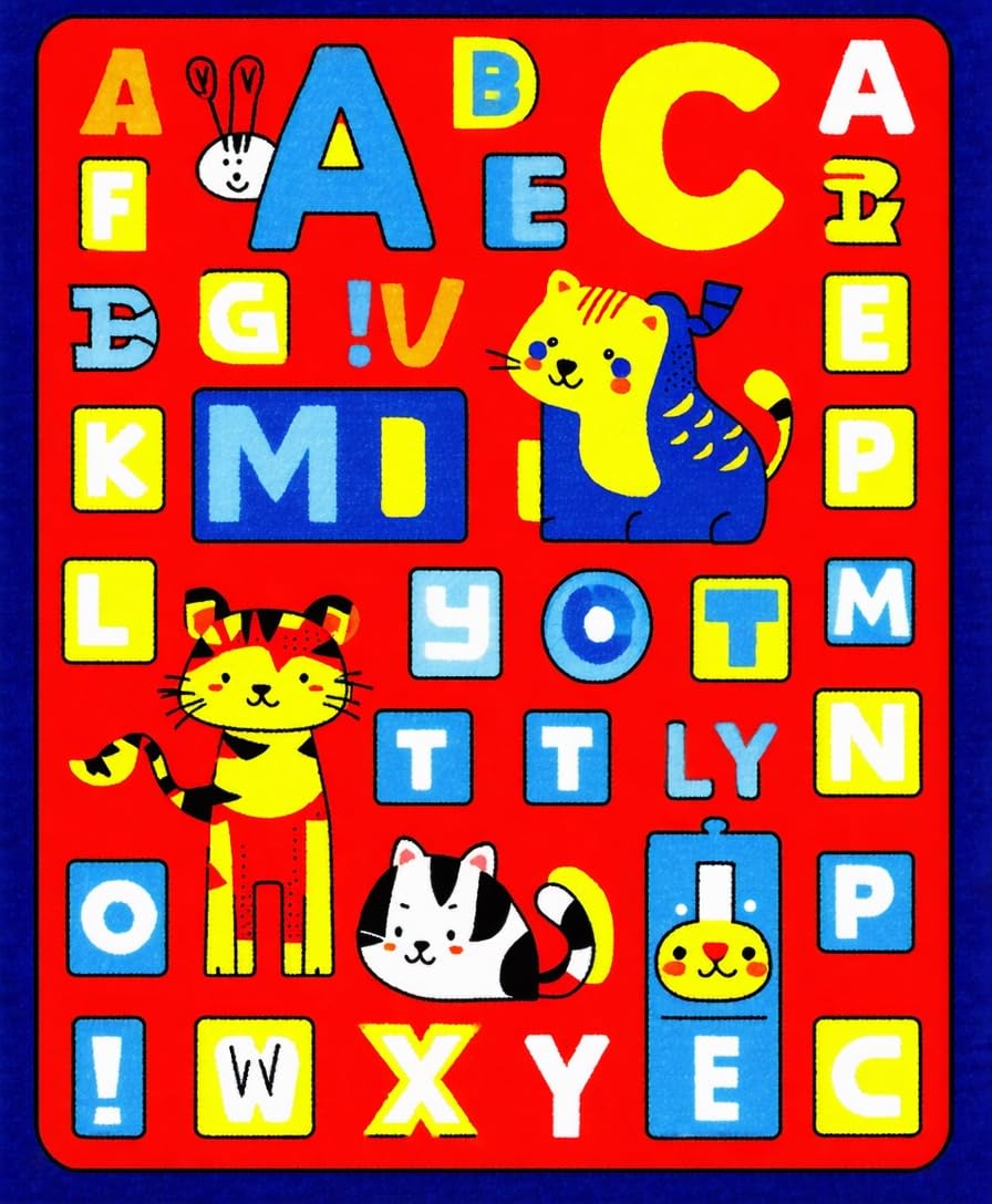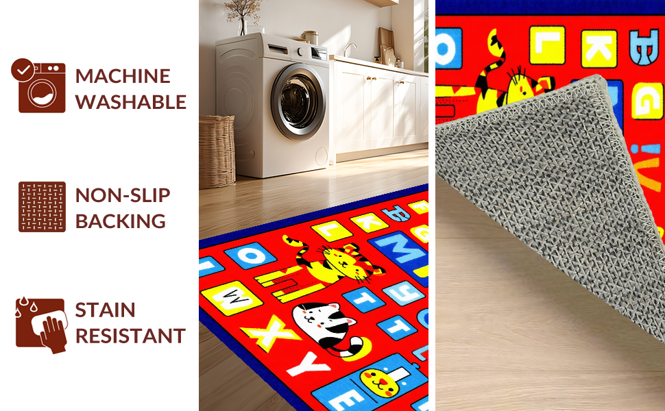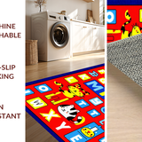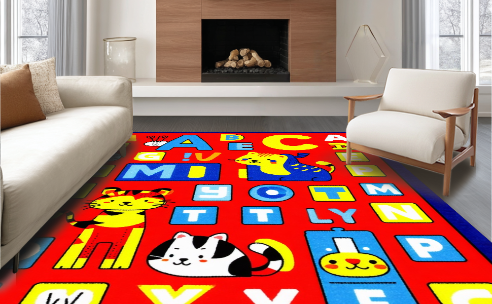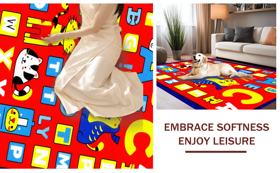 Ultra Soft Area Rug, Non Slip, Stain Resistant, Washable Area Rugs for Living Room, Bedroom, Whimsical ABC Animal Imagery(Blue) Overview: