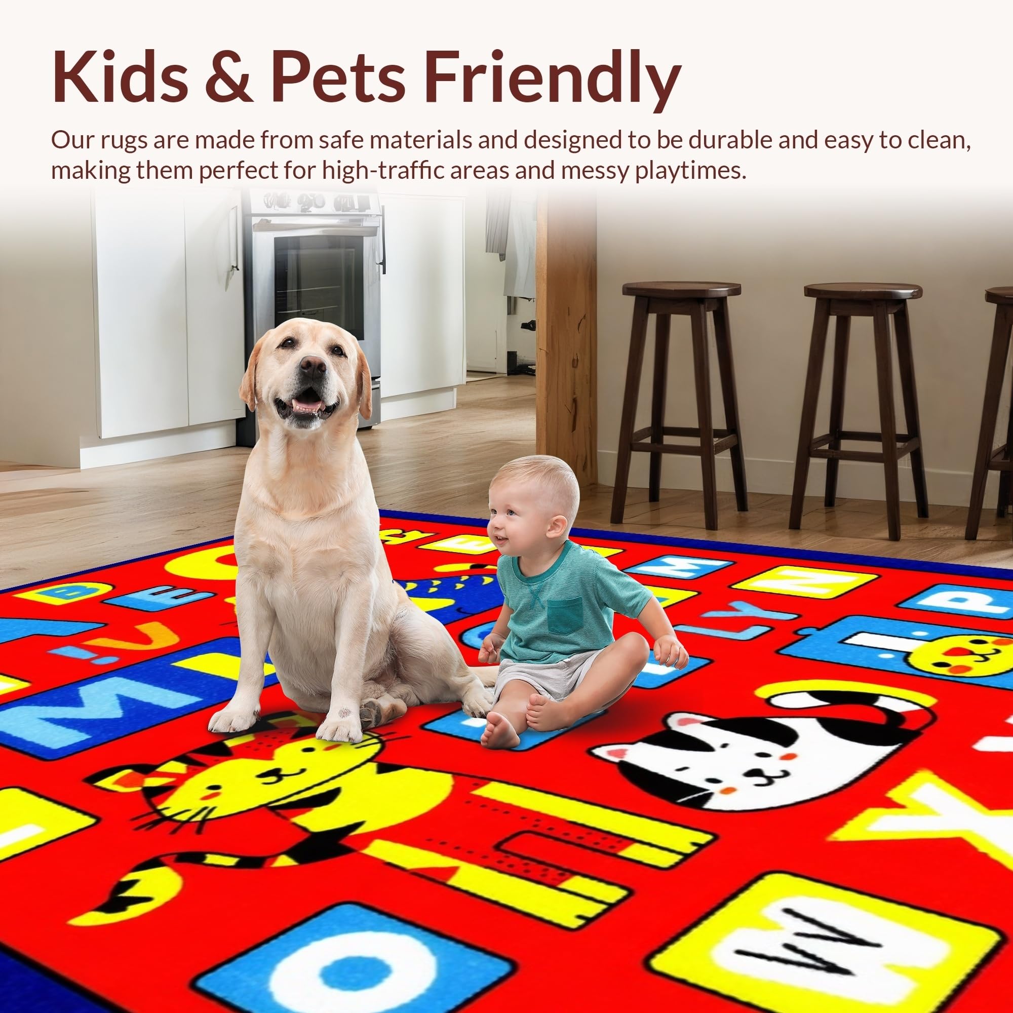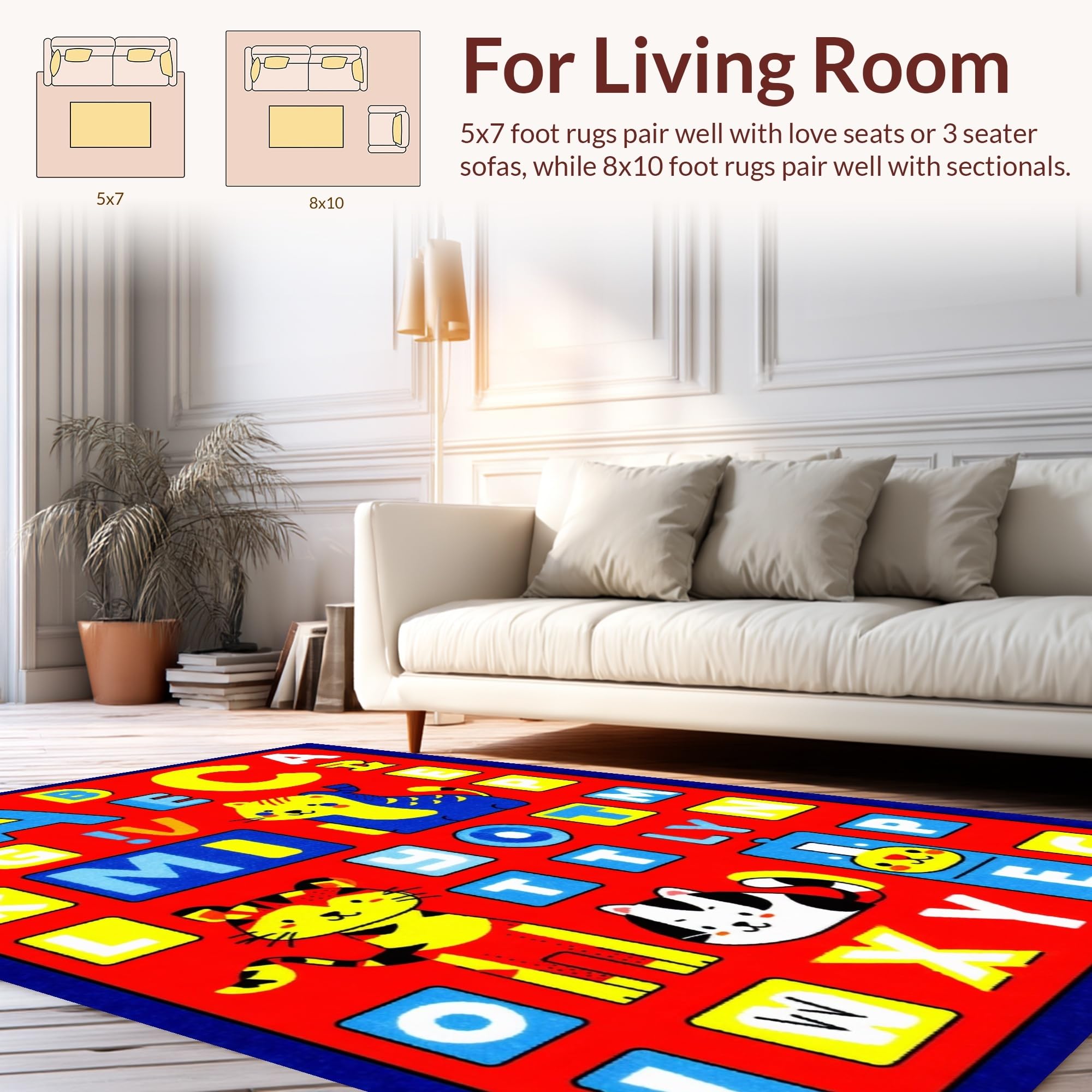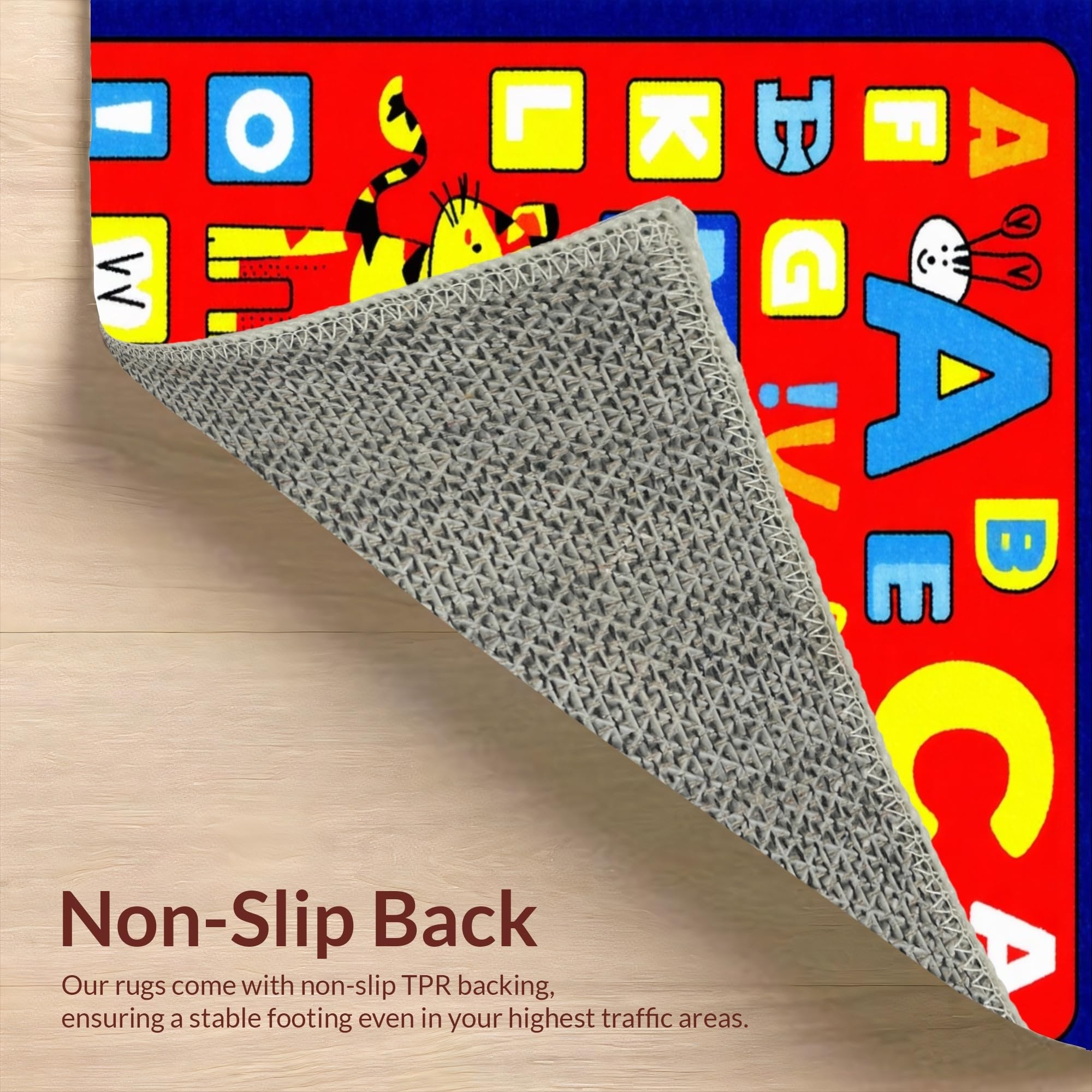 Ultra Soft Area Rug, Non Slip, Stain Resistant, Washable Area Rugs for Living Room, Bedroom, Whimsical ABC Animal Imagery(Blue) Overview: