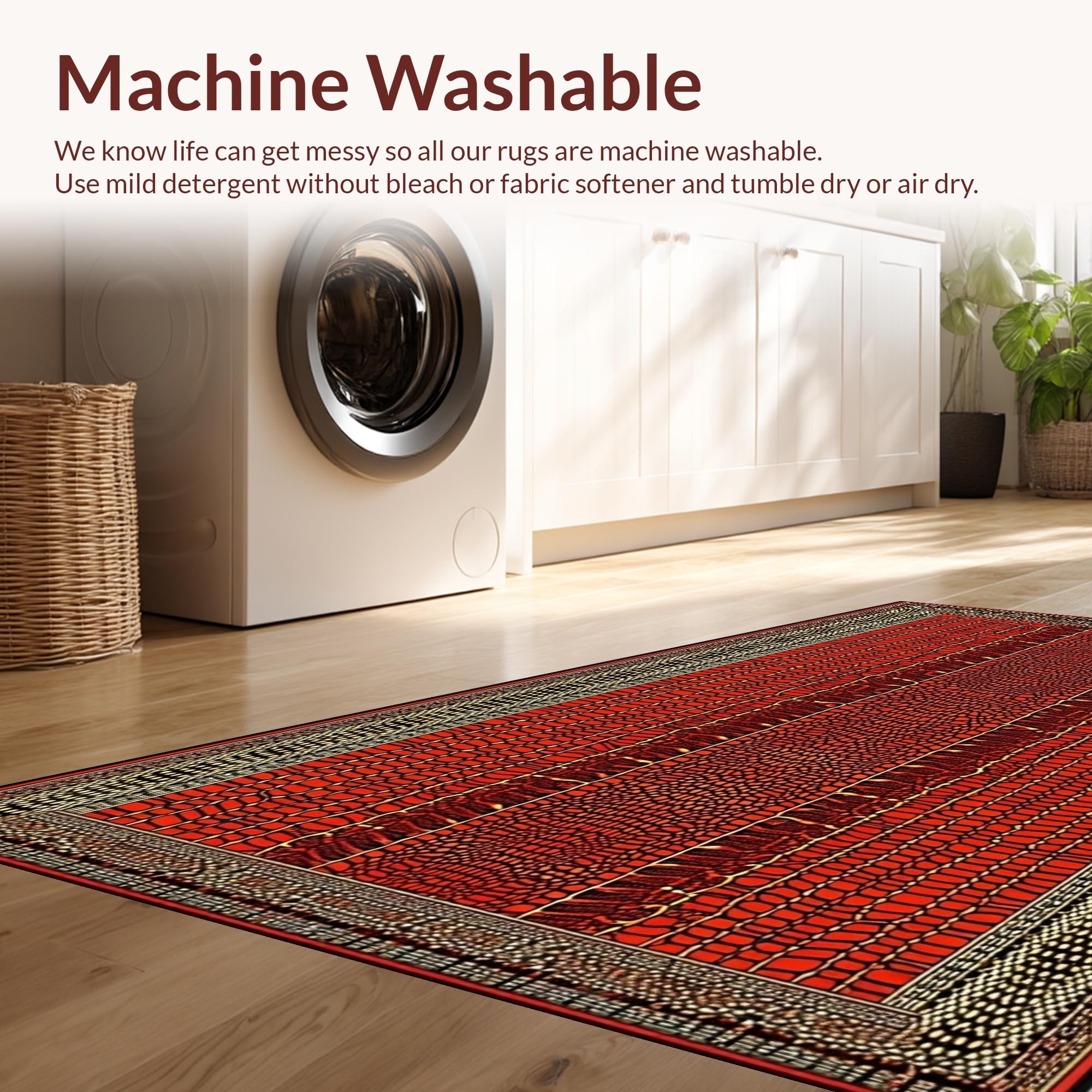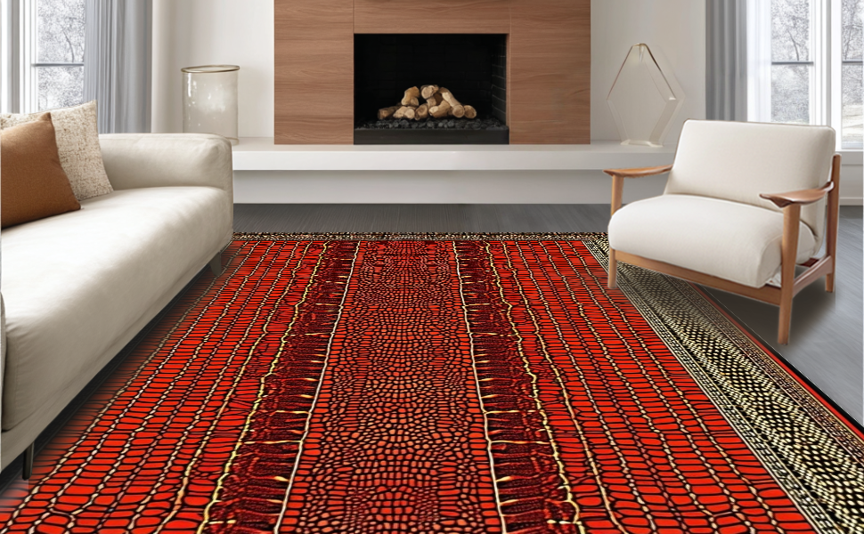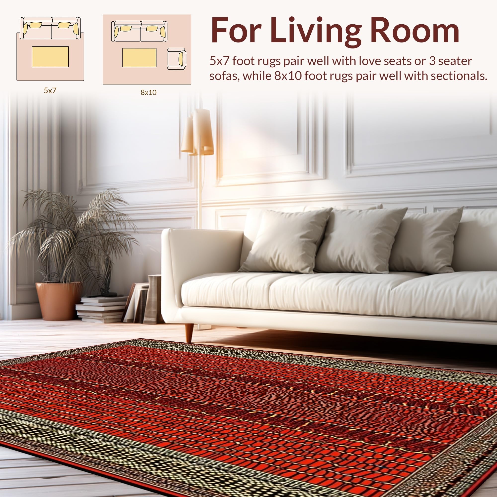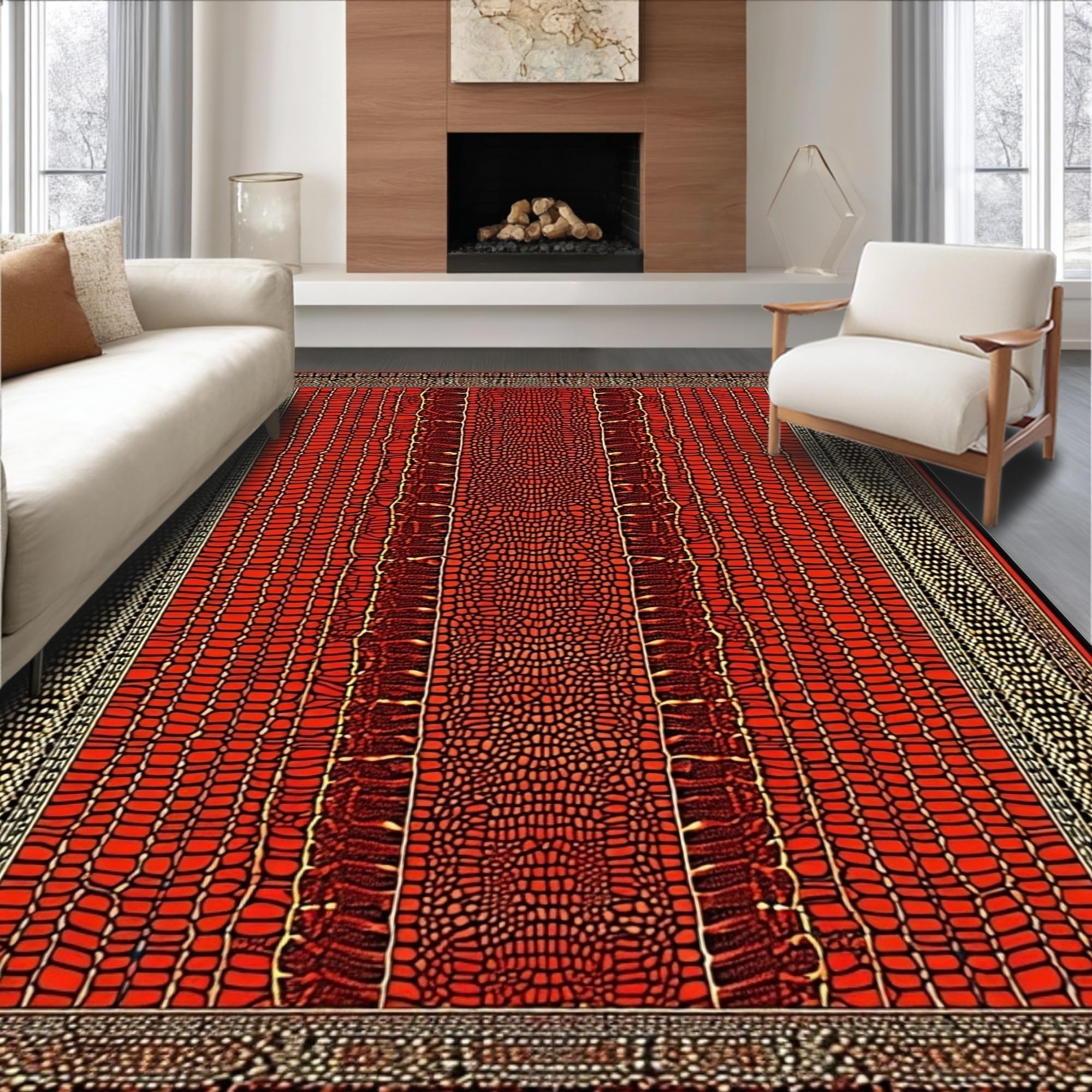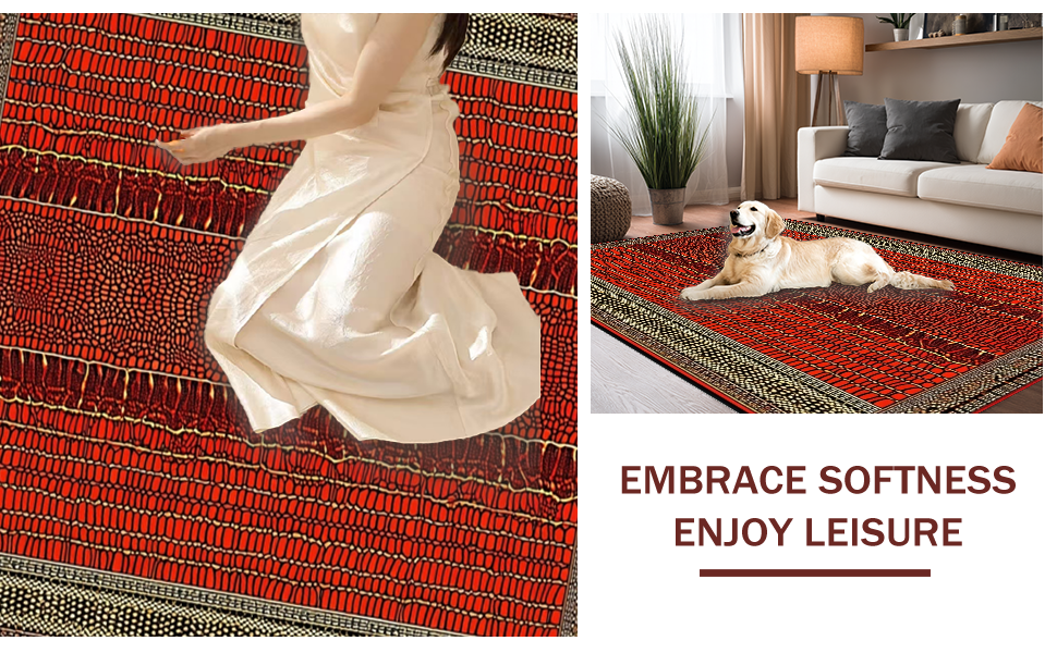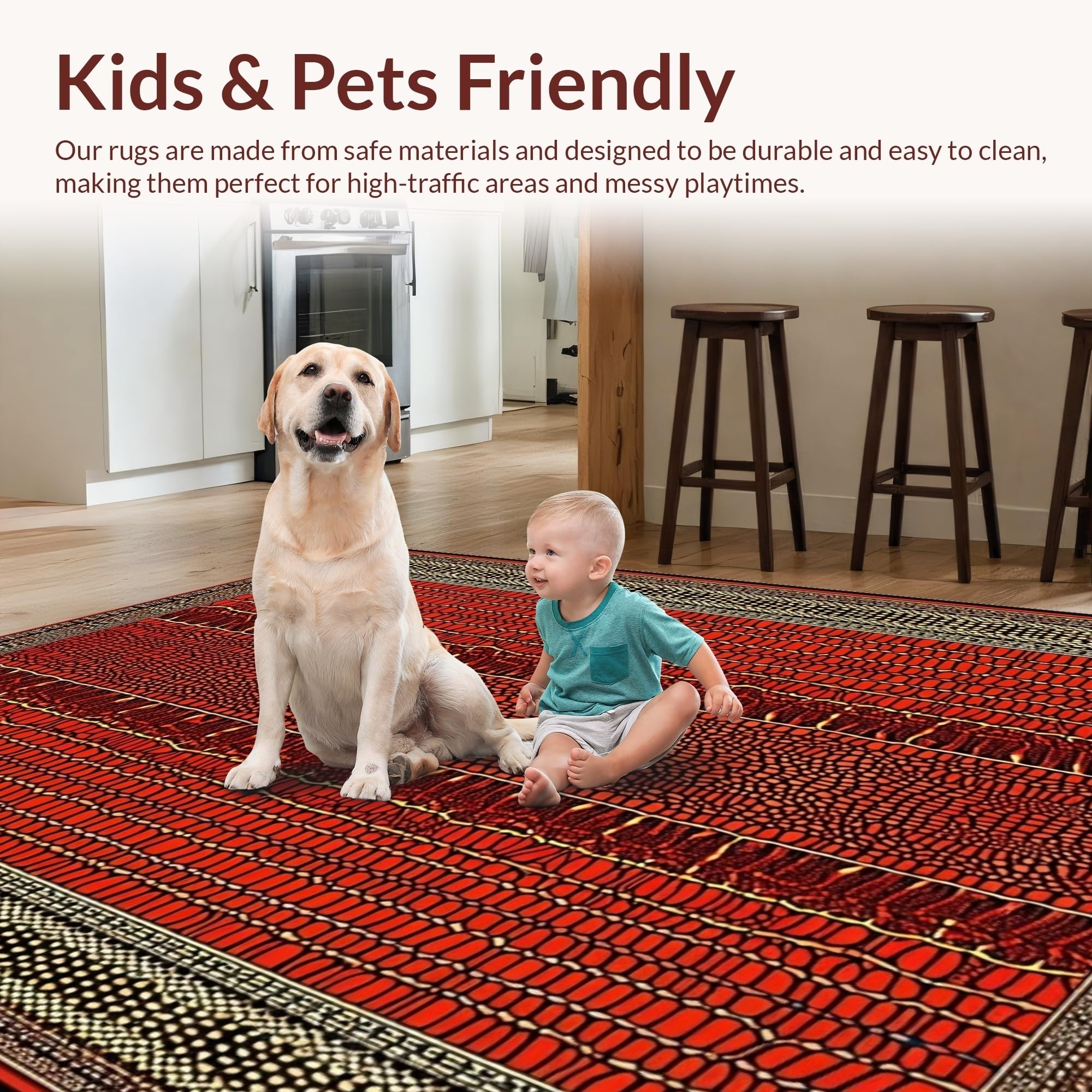Ultra Soft Area Rug, Non Slip, Stain Resistant, Washable Area Rugs for Living Room, Bedroom, Whimsical Animal Print Elegance(Red) Overview: