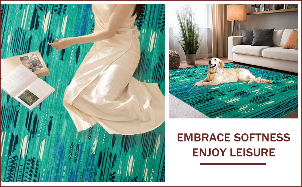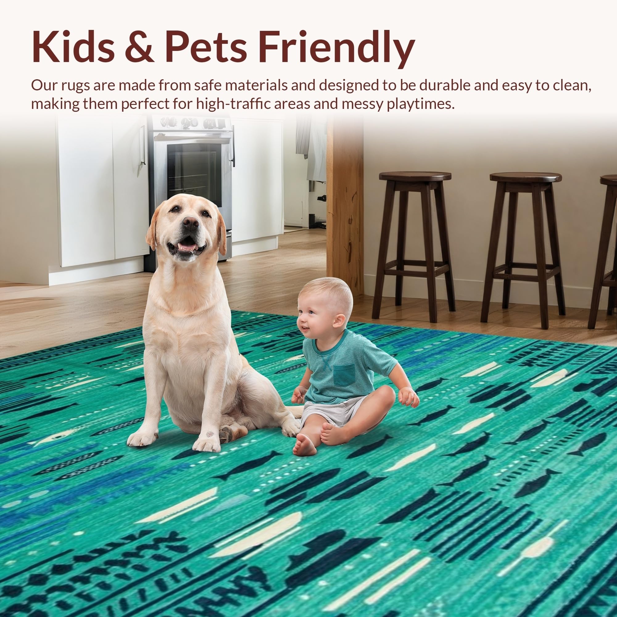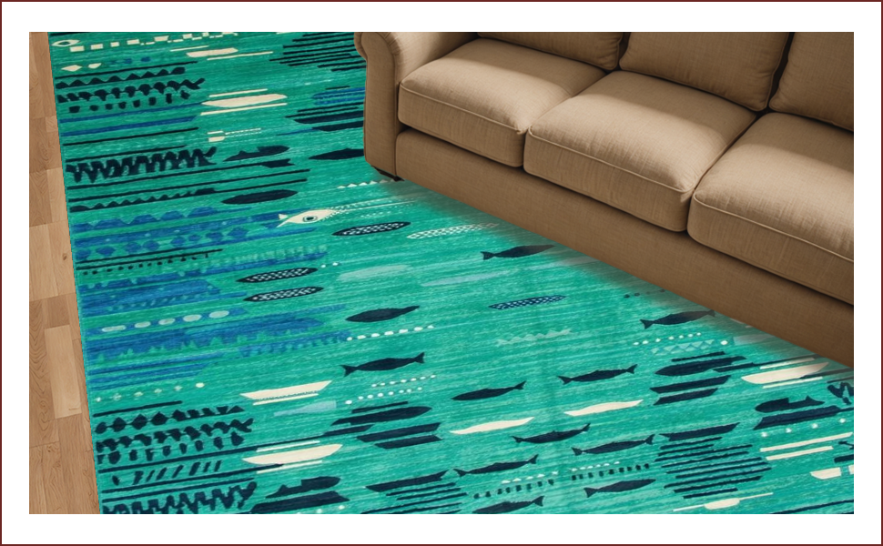 Ultra Soft Area Rug, Non Slip, Stain Resistant, Washable Area Rugs for Living Room, Bedroom, Whimsical Aquatic Humor Motif(Blue) Overview: