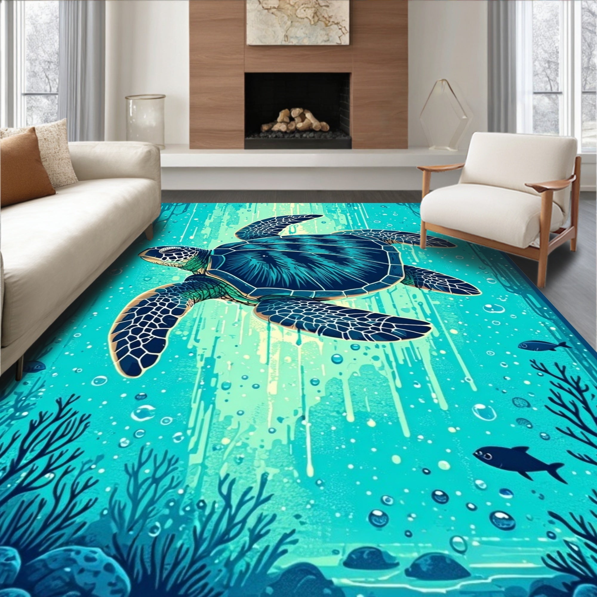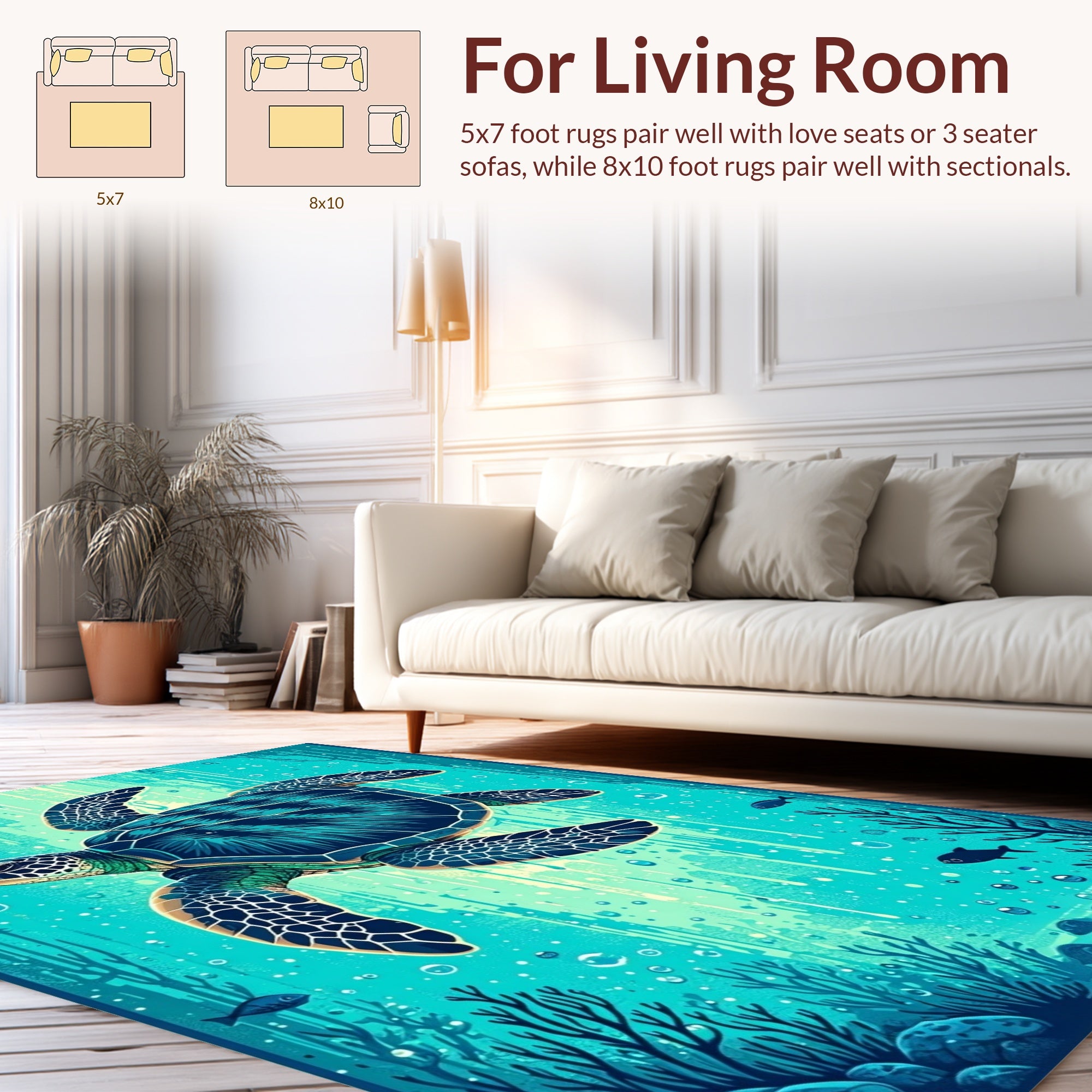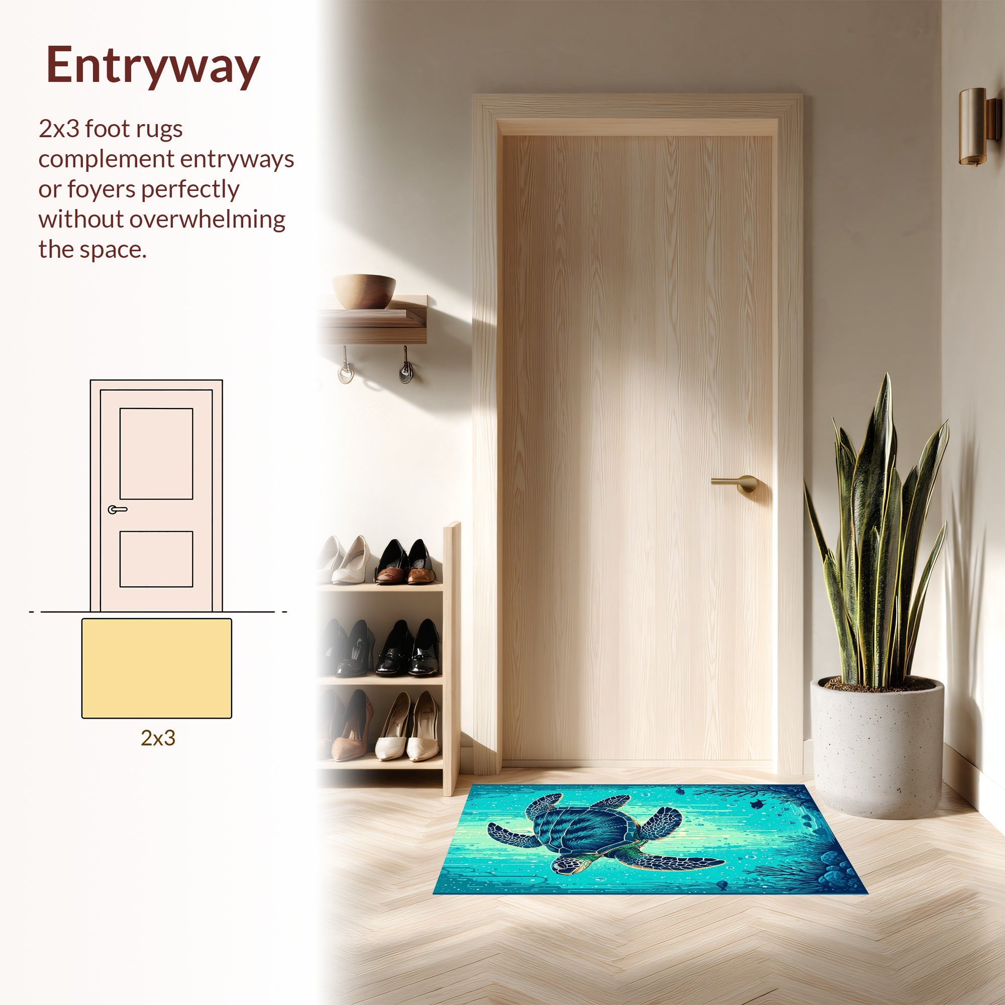 Flatwoven High Traffic Area Rug, Whimsical Nature Theme, Non Slip, Stain Resistant, Washable Area Rugs for Living Room, Bedroom (Blue) Overview: