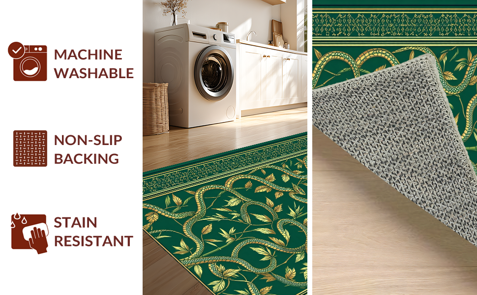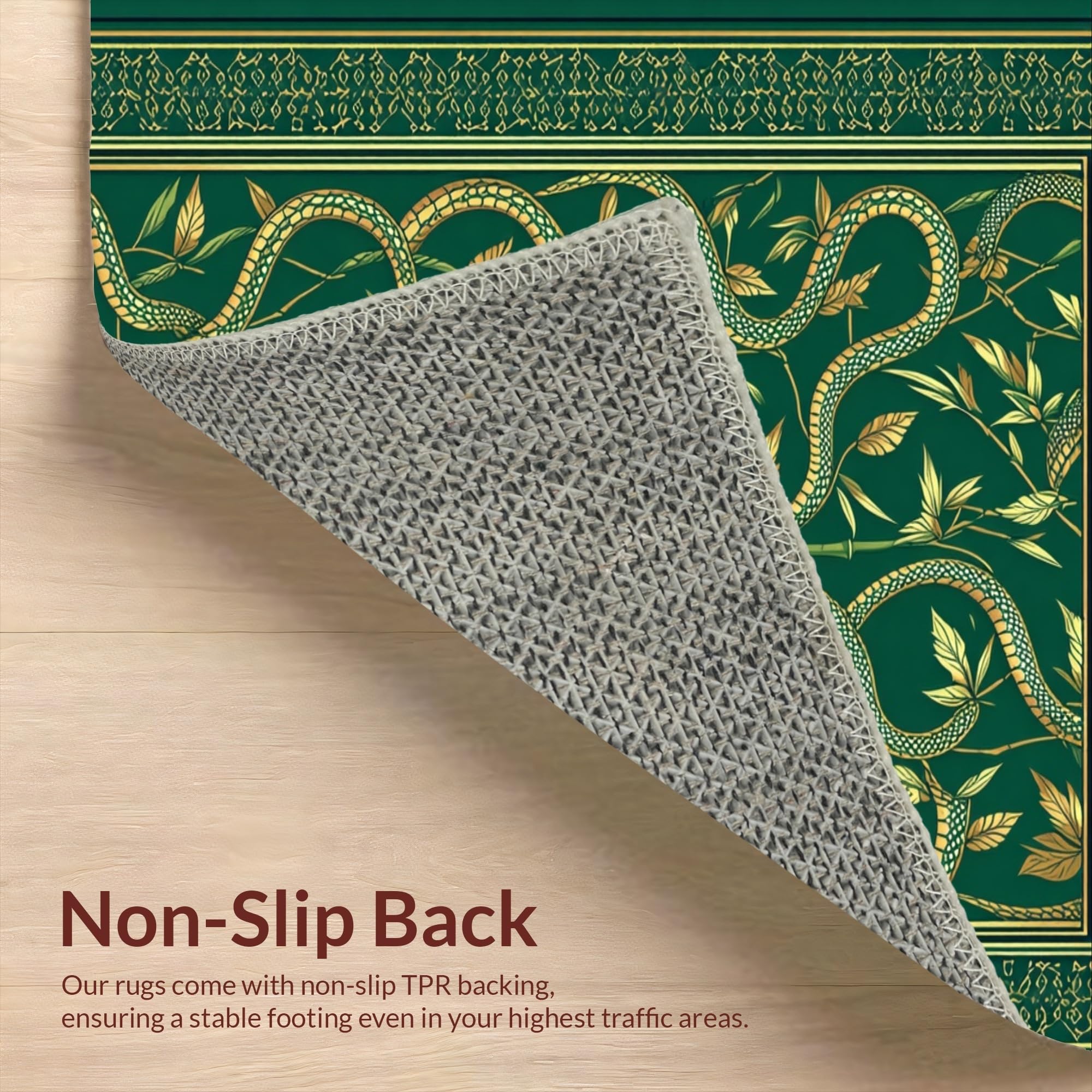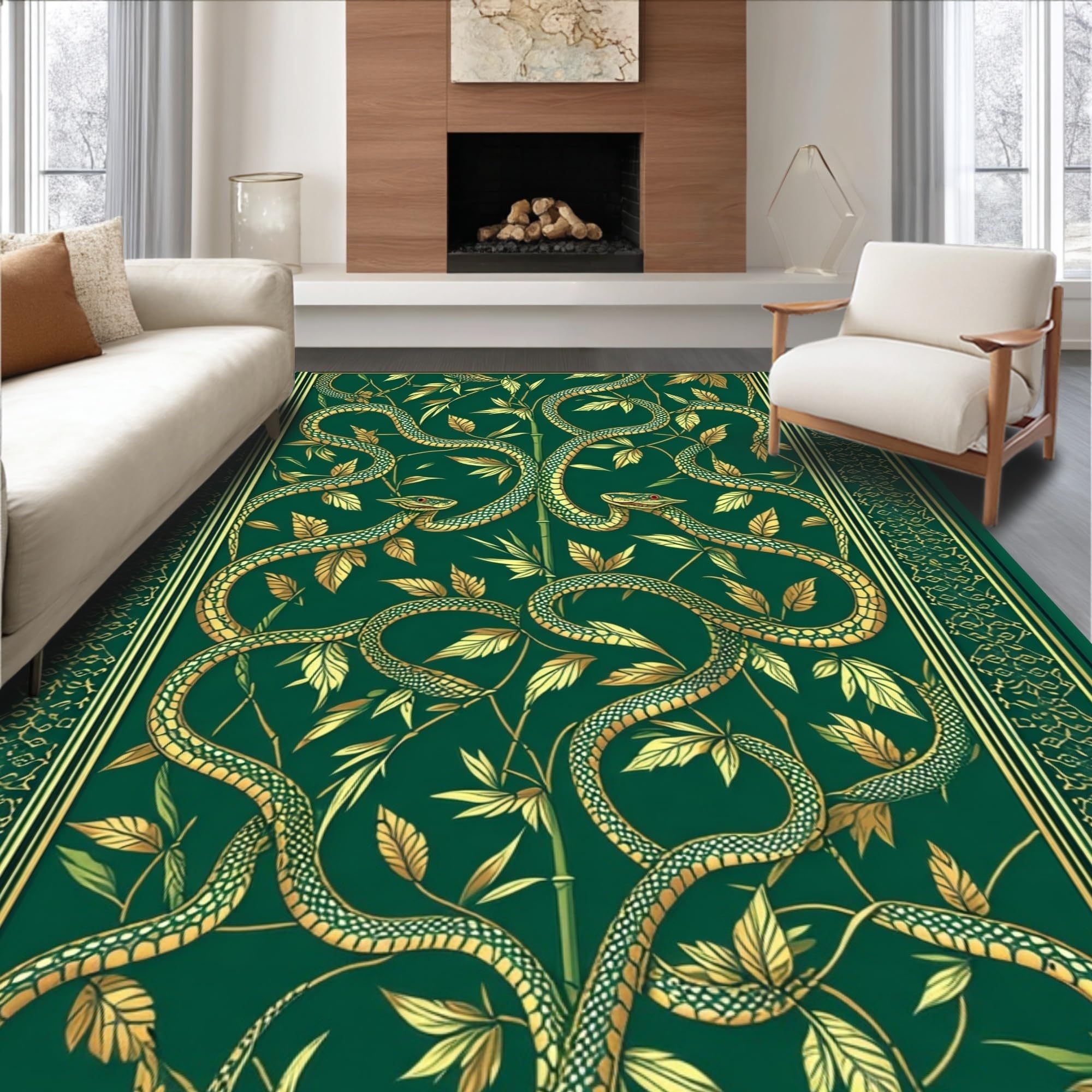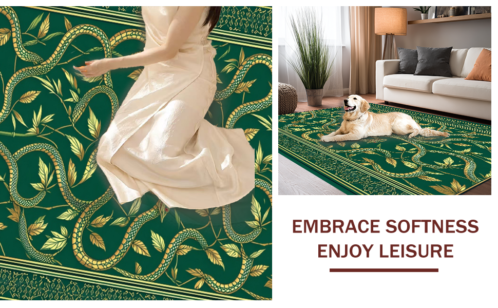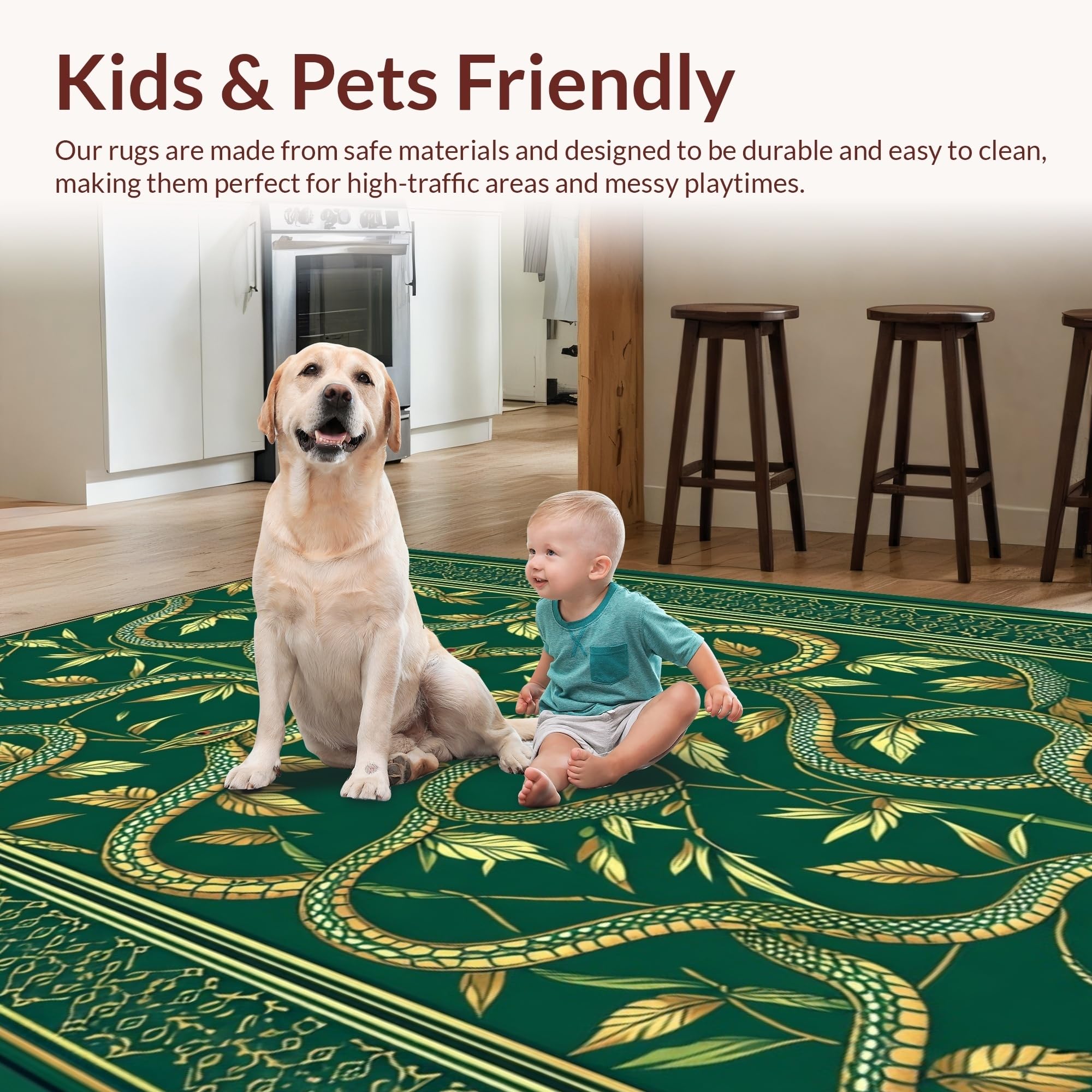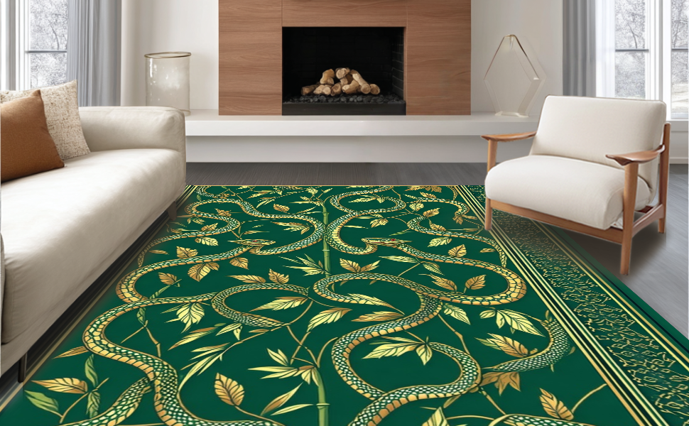 Ultra Soft Area Rug, Non Slip, Stain Resistant, Washable Area Rugs for Living Room, Bedroom, Whimsical Avian and Serpent Design(Green) Overview: