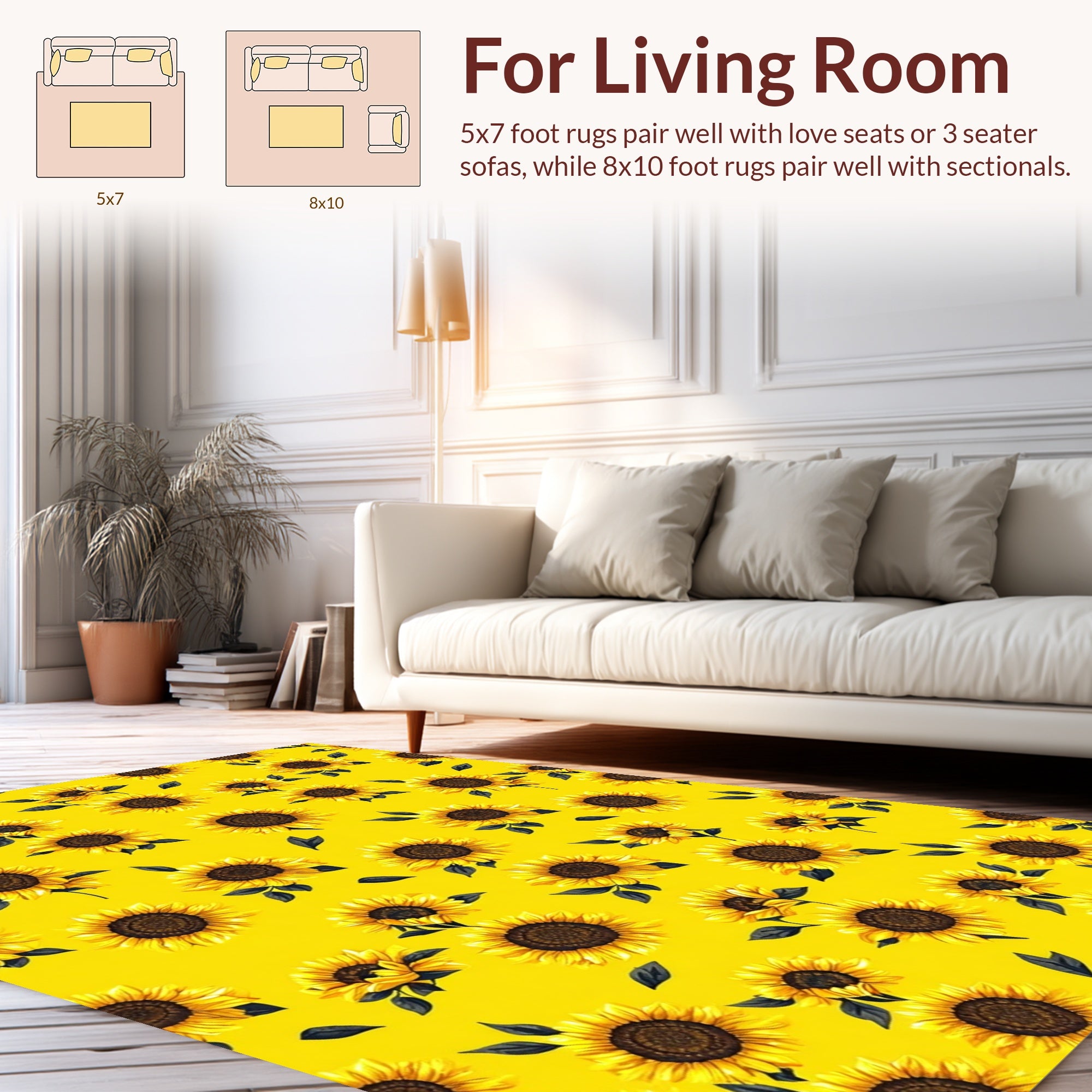 Flatwoven High Traffic Area Rug, Whimsical Blooming Petal Arrangement, Non Slip, Stain Resistant, Washable Area Rugs for Living Room, Bedroom (Yellow) Overview:
