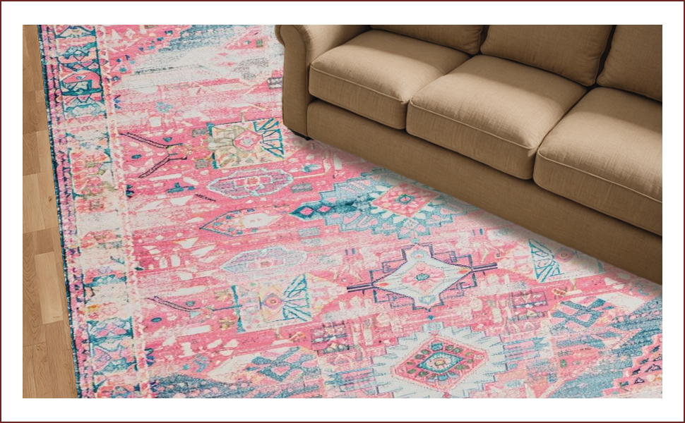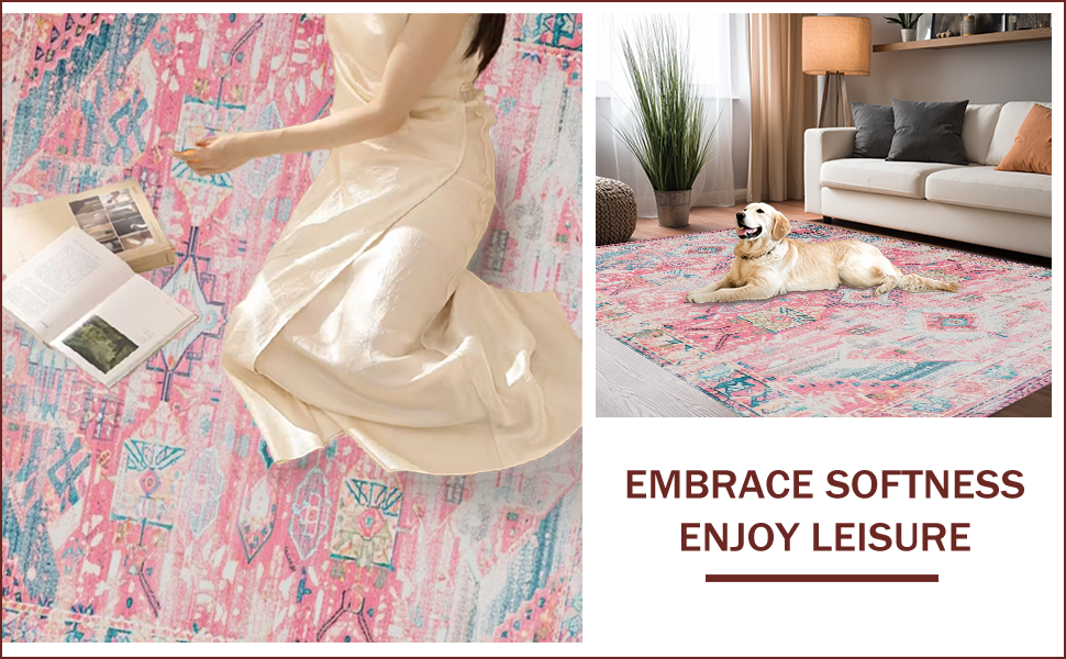 Ultra Soft Area Rug, Non Slip, Stain Resistant, Washable Area Rugs for Living Room, Bedroom, Whimsical Blush Floral Harmony(Pink) Overview: