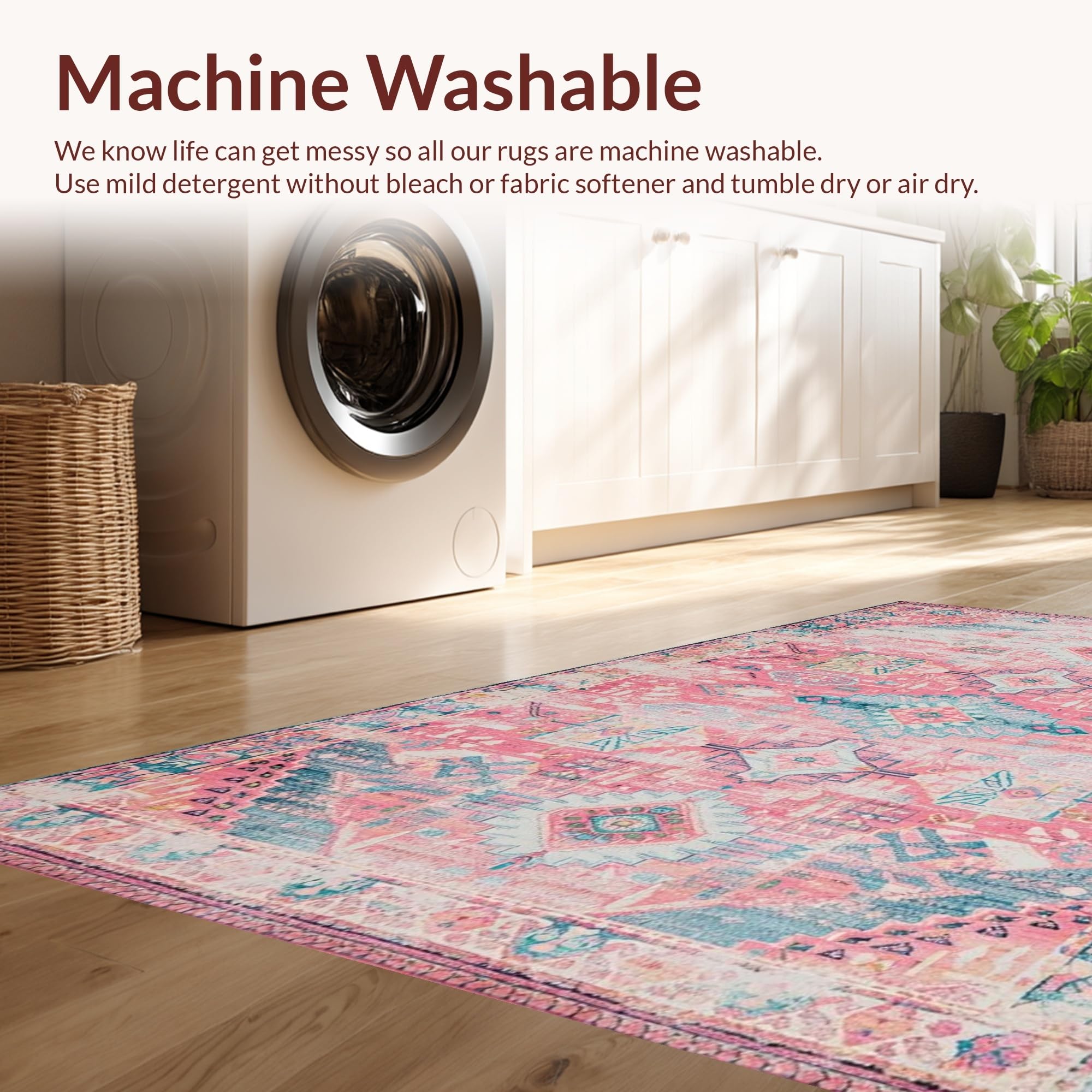 - Machine Washable: Our rugs can be easily thrown in the wash machine.