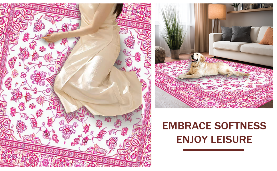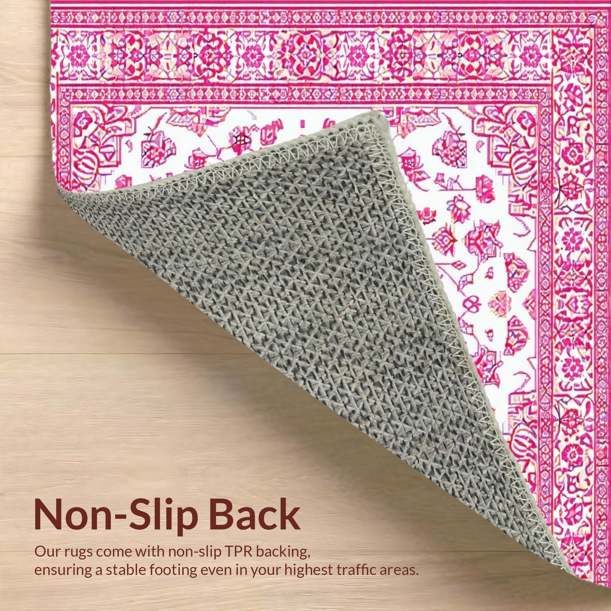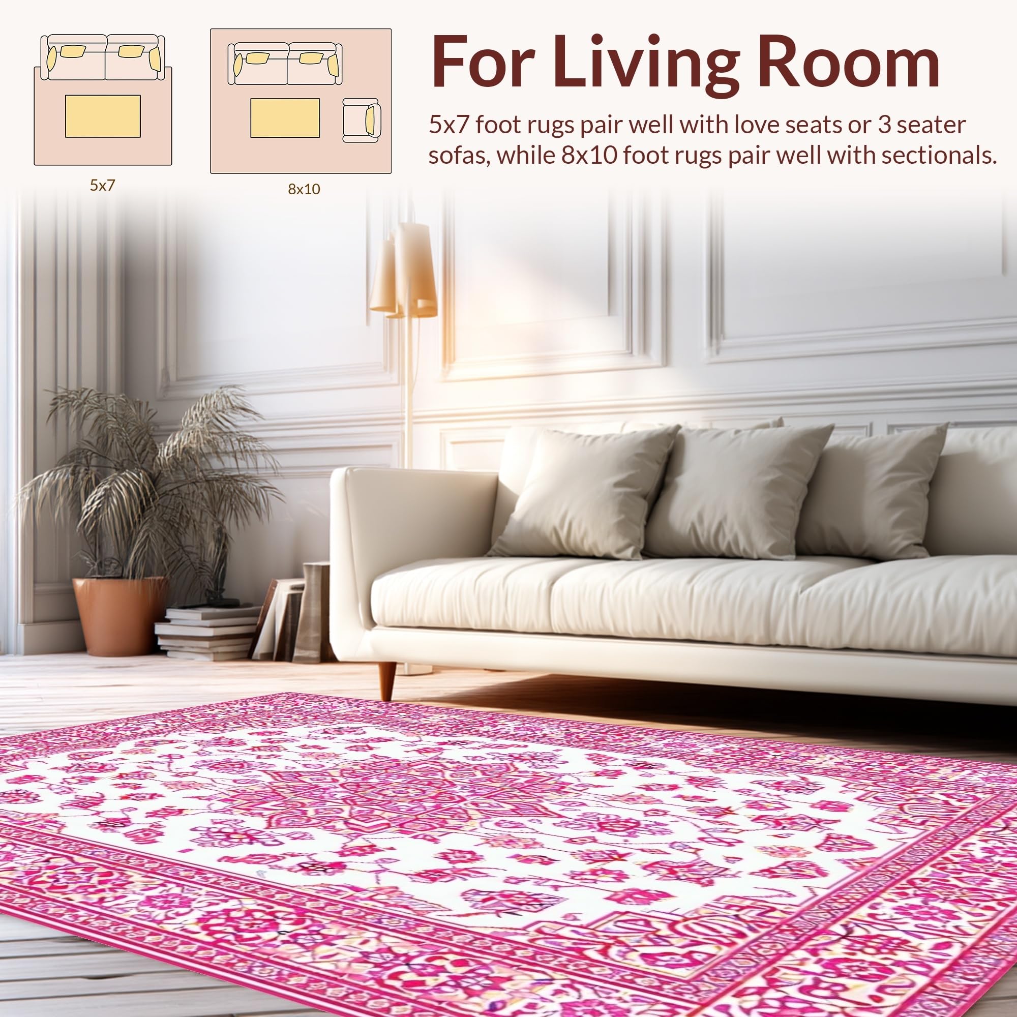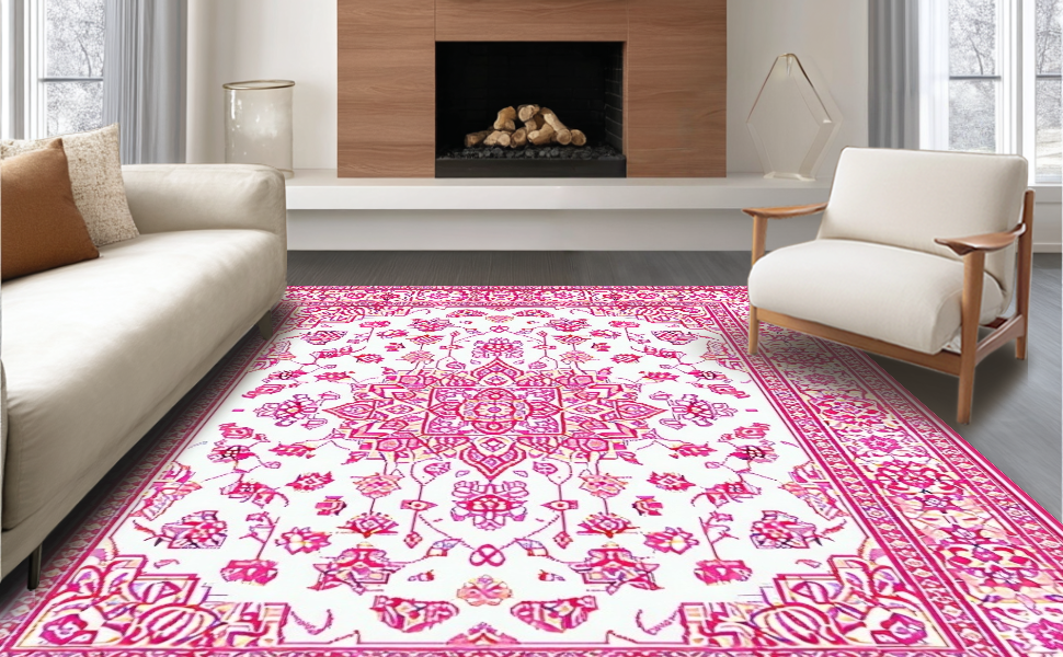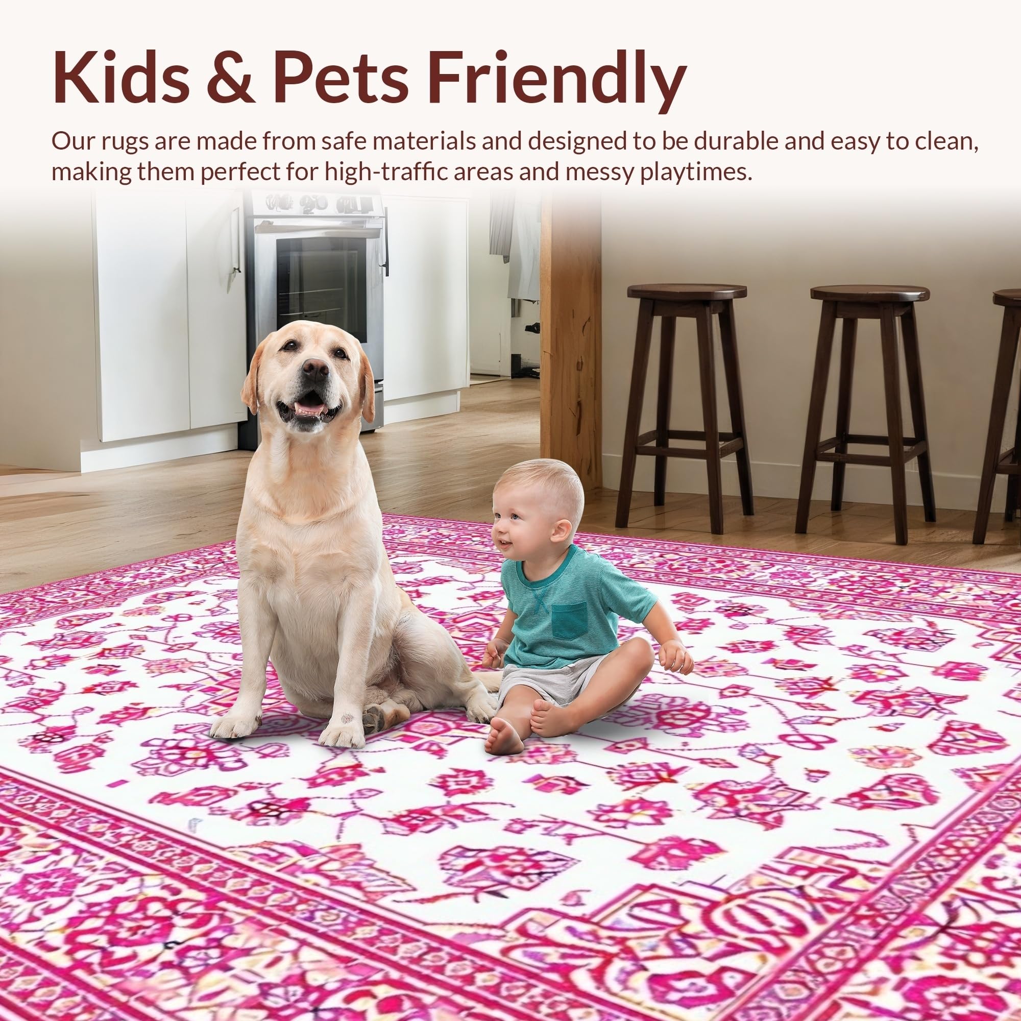 Ultra Soft Area Rug, Non Slip, Stain Resistant, Washable Area Rugs for Living Room, Bedroom, Whimsical Blush Tiled Arrangement(White) Overview: