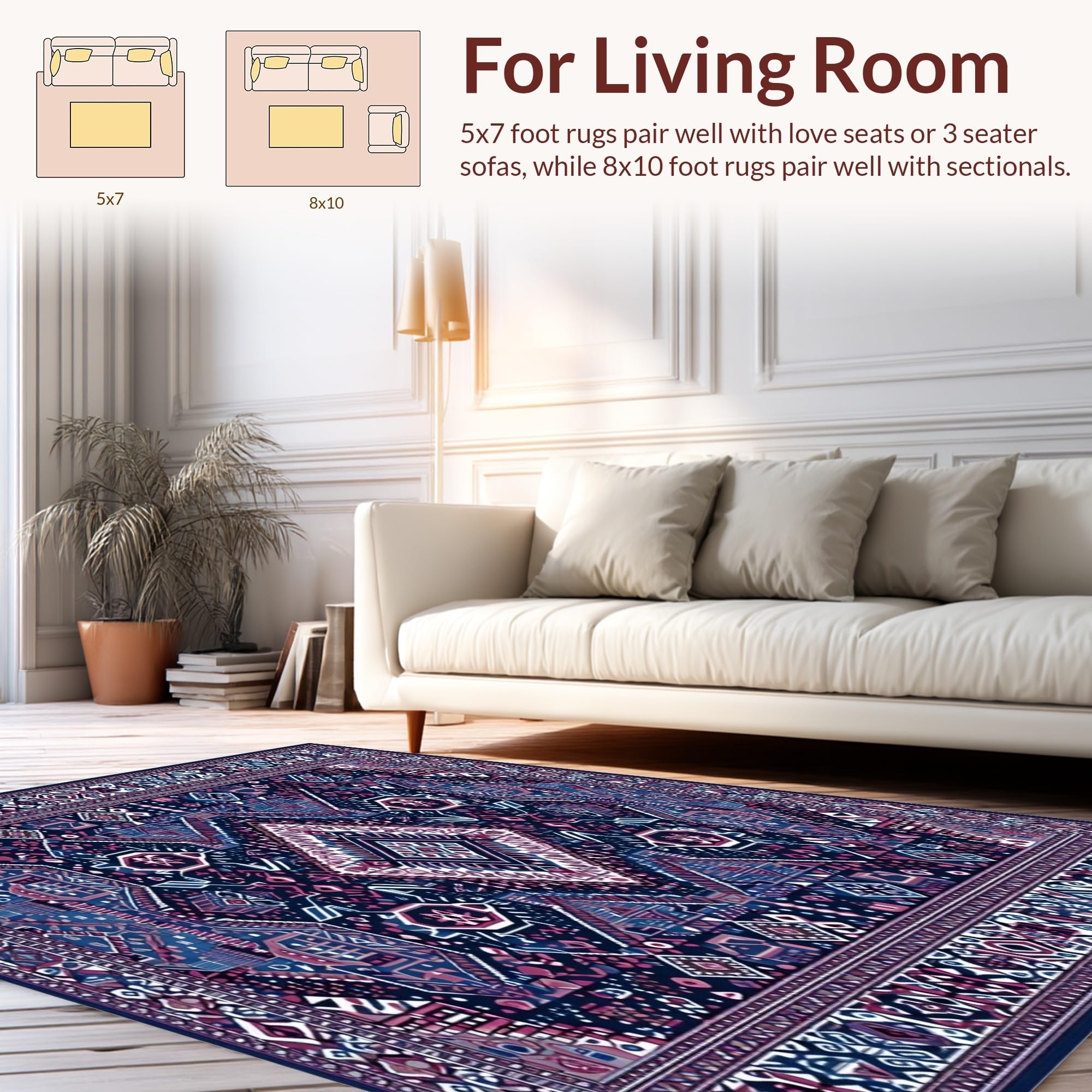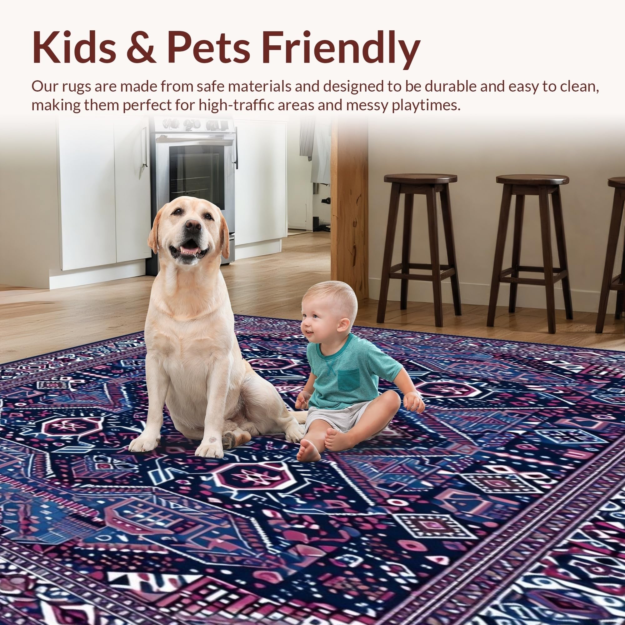 Ultra Soft Area Rug, Non Slip, Stain Resistant, Washable Area Rugs for Living Room, Bedroom, Whimsical Boho Chic(Blue) Overview: