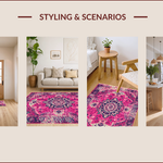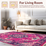 Ultra Soft Area Rug, Non Slip, Stain Resistant, Washable Area Rugs for Living Room, Bedroom, Whimsical Boho Medallion Retreat(Pink) Overview: