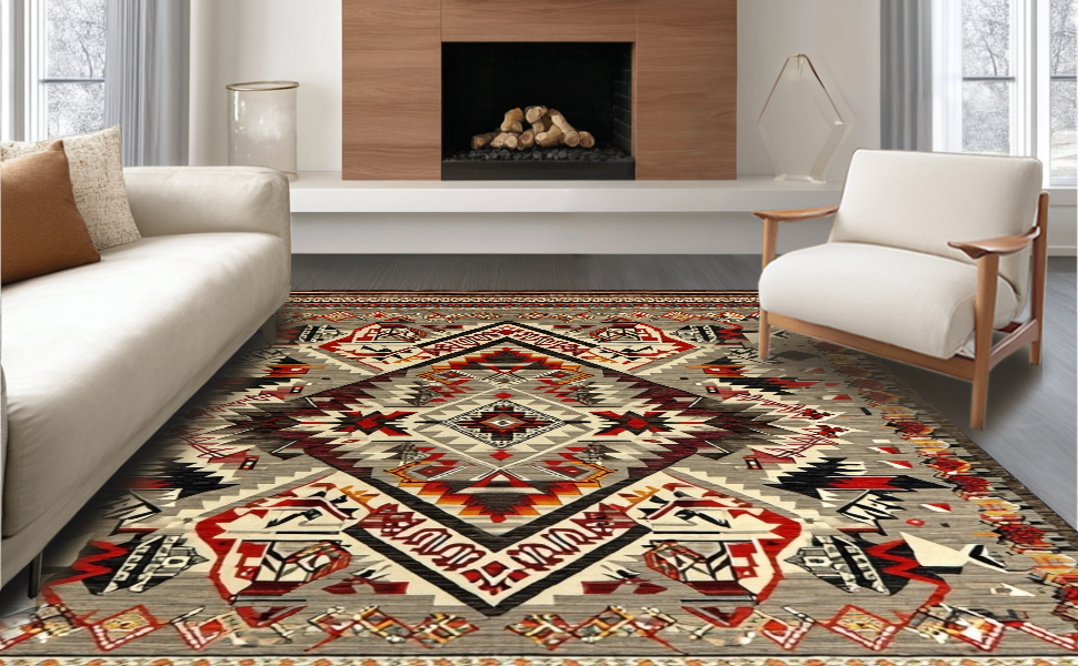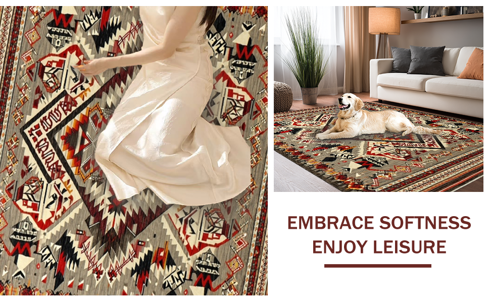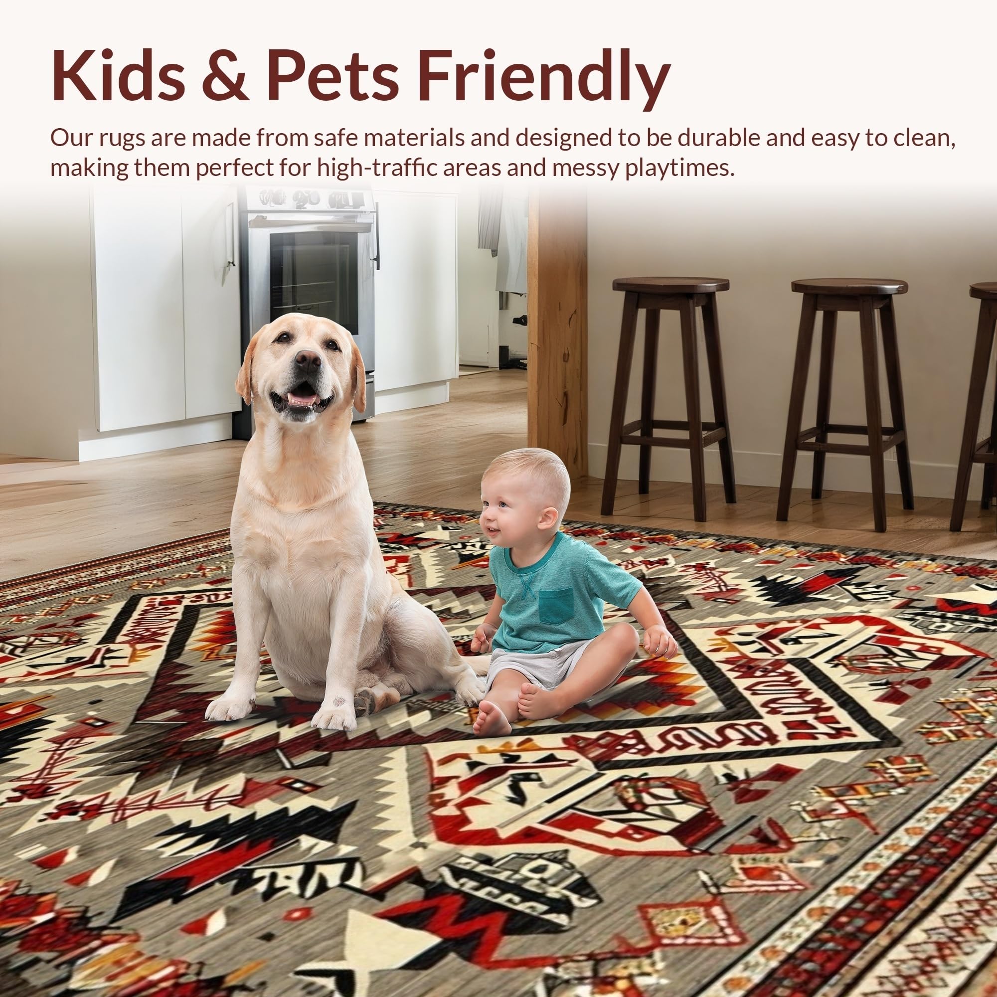 Ultra Soft Area Rug, Non Slip, Stain Resistant, Washable Area Rugs for Living Room, Bedroom, Whimsical Bright Boho Composition(Gray) Overview: