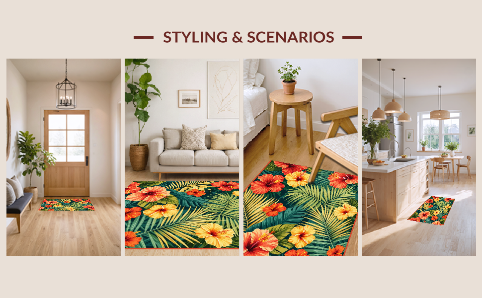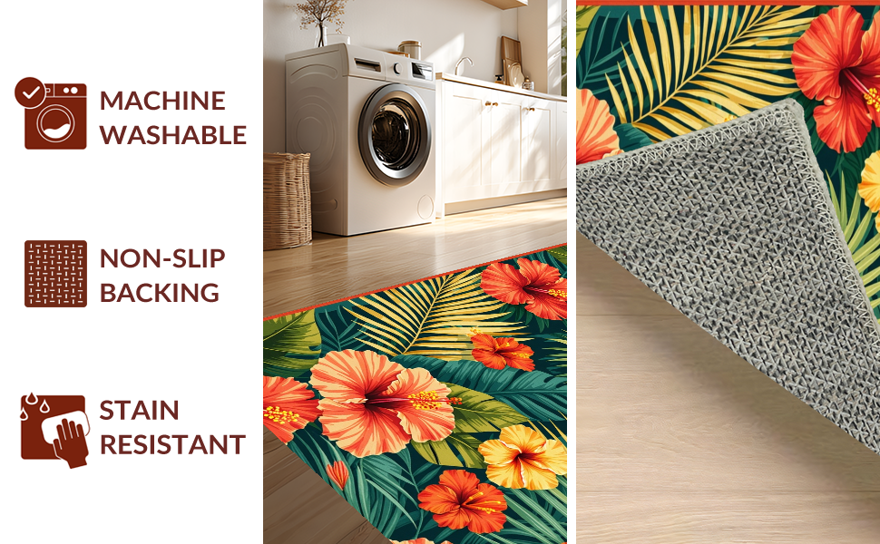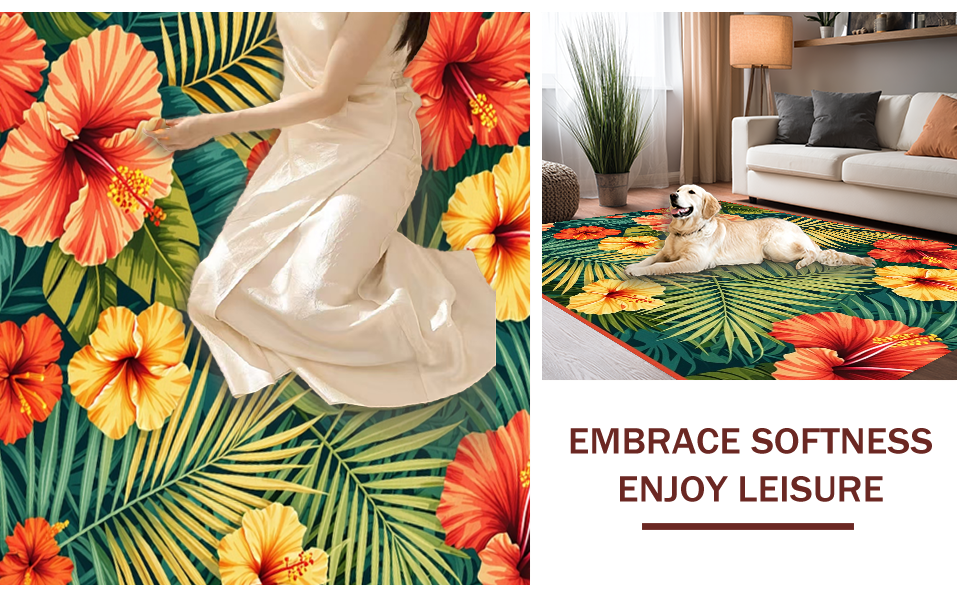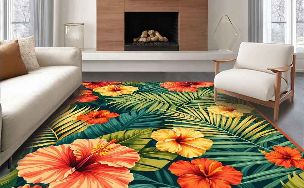 Ultra Soft Area Rug, Non Slip, Stain Resistant, Washable Area Rugs for Living Room, Bedroom, Whimsical Bright Botanical Patterns(Red) Overview: