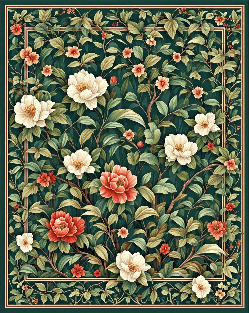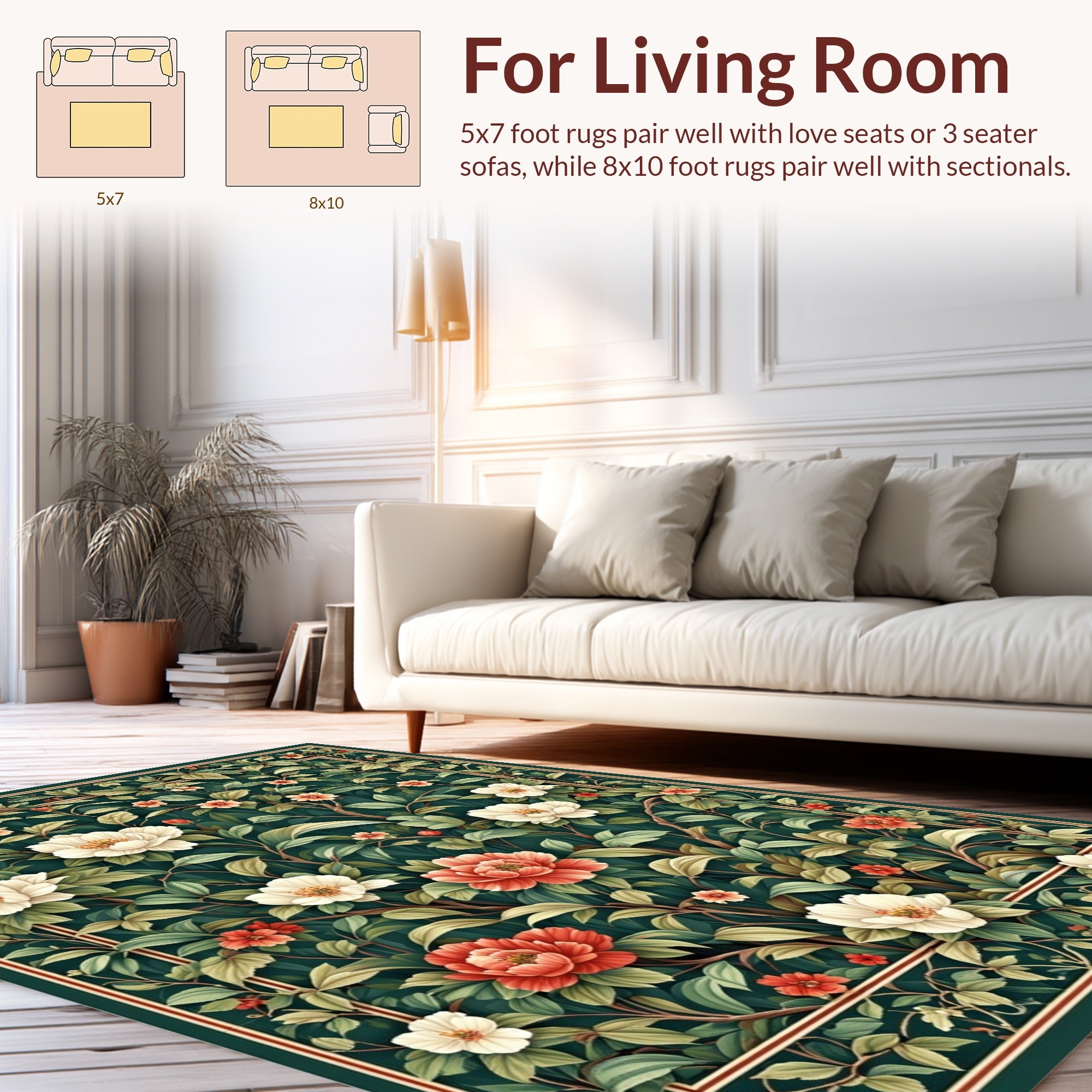Flatwoven High Traffic Area Rug, Whimsical Bright Floral Arrangement, Non Slip, Stain Resistant, Washable Area Rugs for Living Room, Bedroom (Green) Overview: