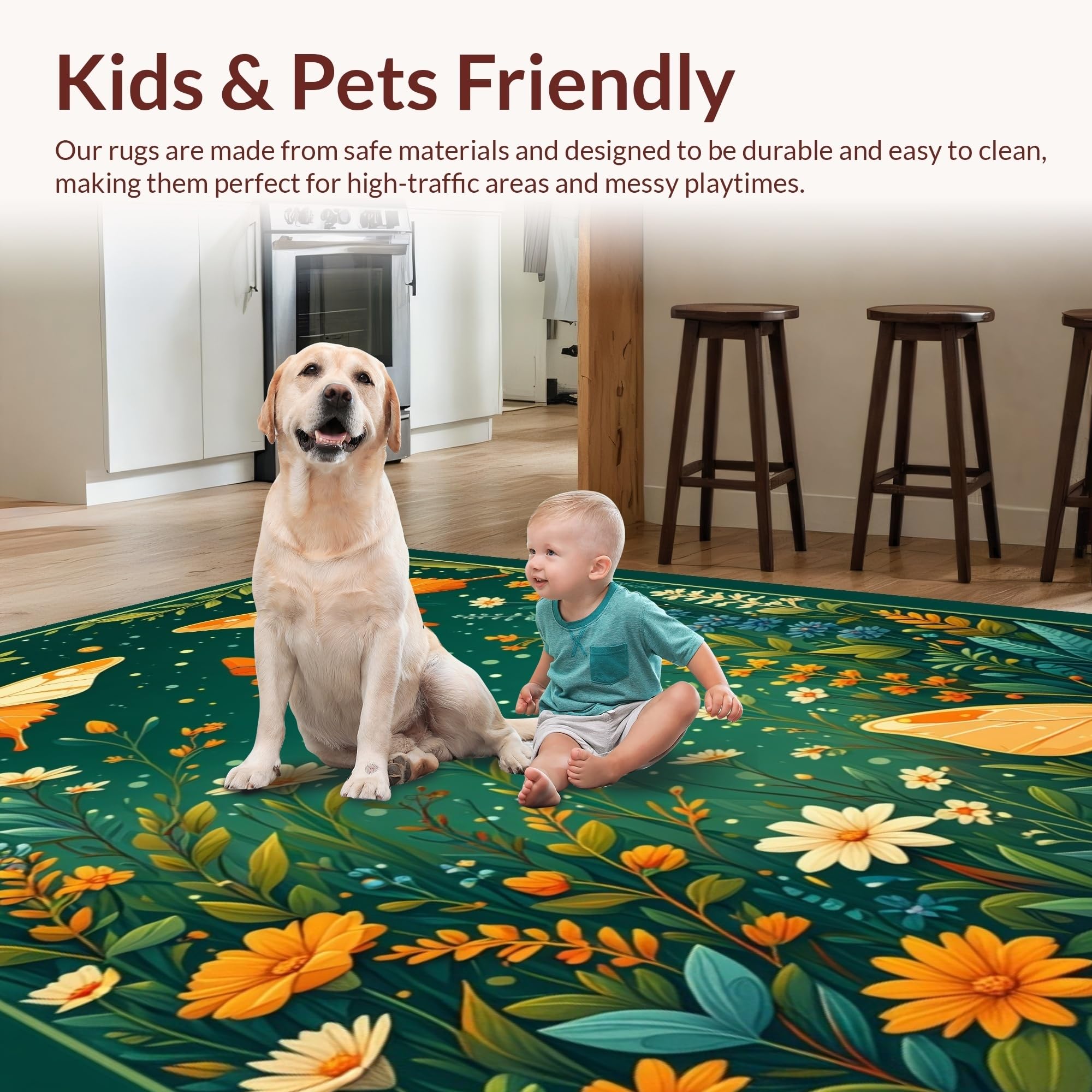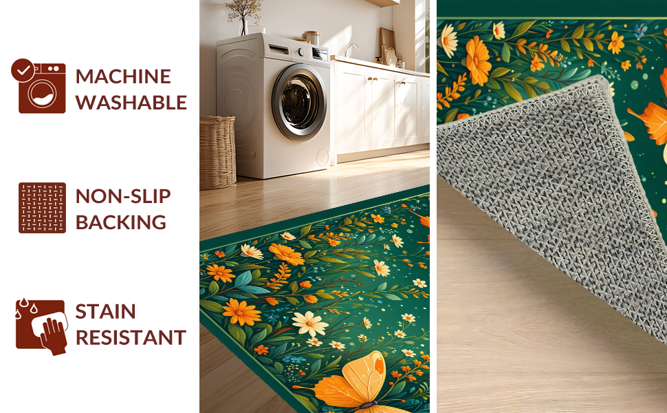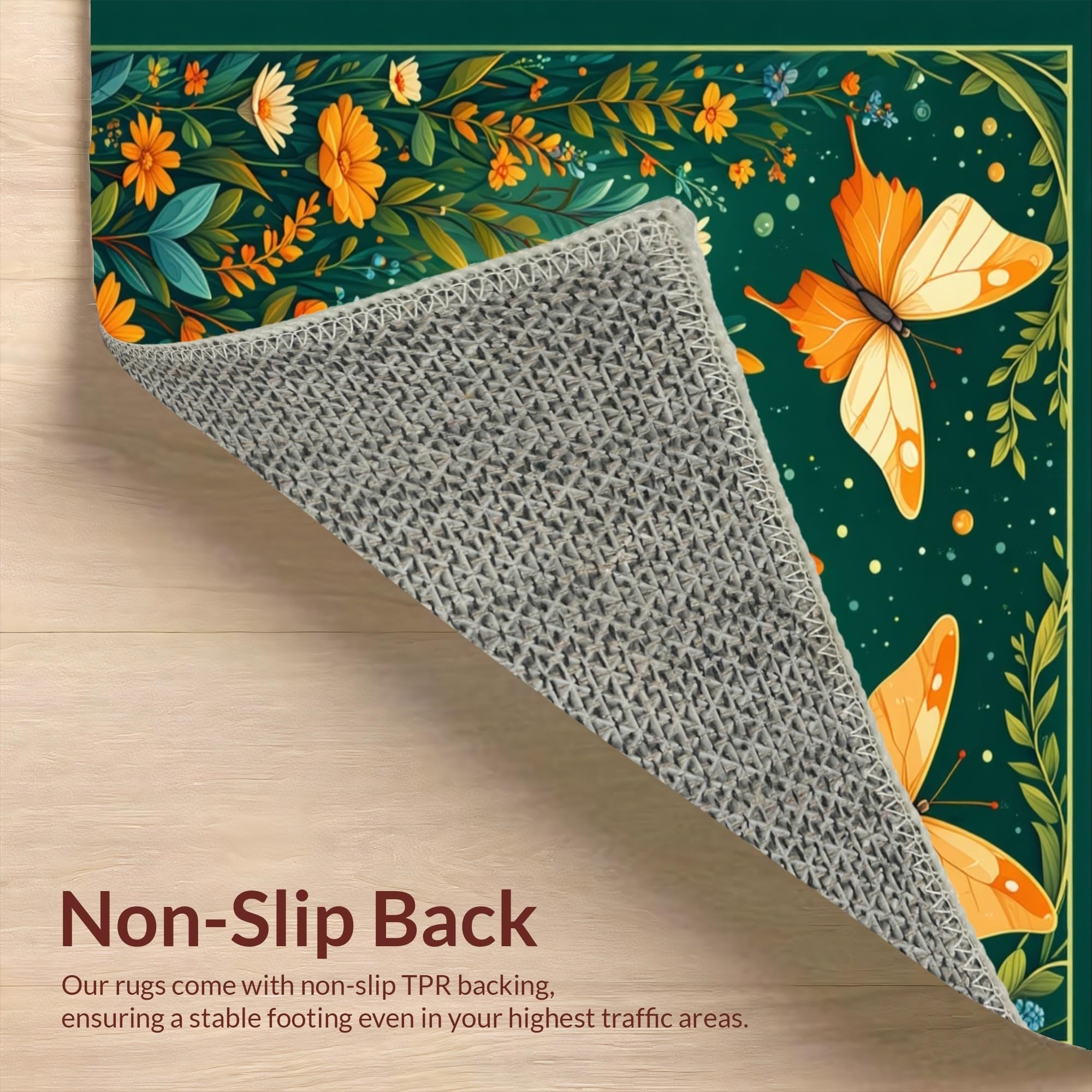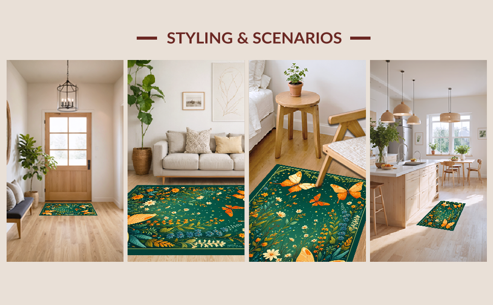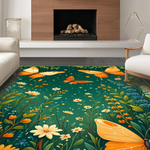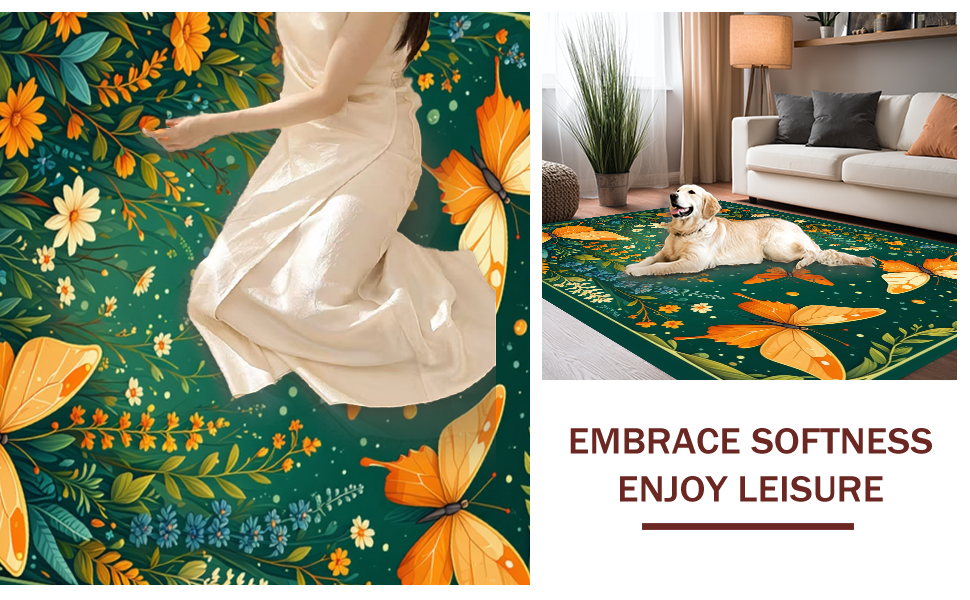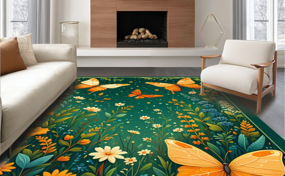 Ultra Soft Area Rug, Non Slip, Stain Resistant, Washable Area Rugs for Living Room, Bedroom, Whimsical Butterfly Garden Delight(Green) Overview: