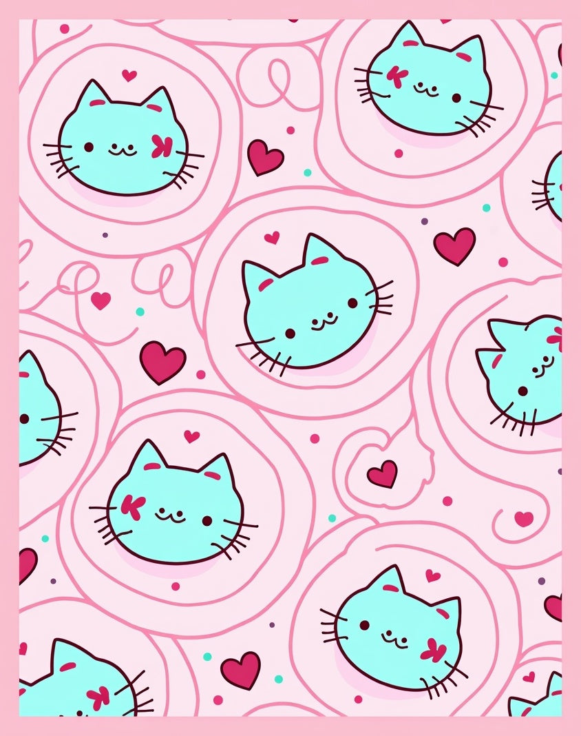 Whimsical Cartoon Feline Parade with Playful Paws Motif(Pink)