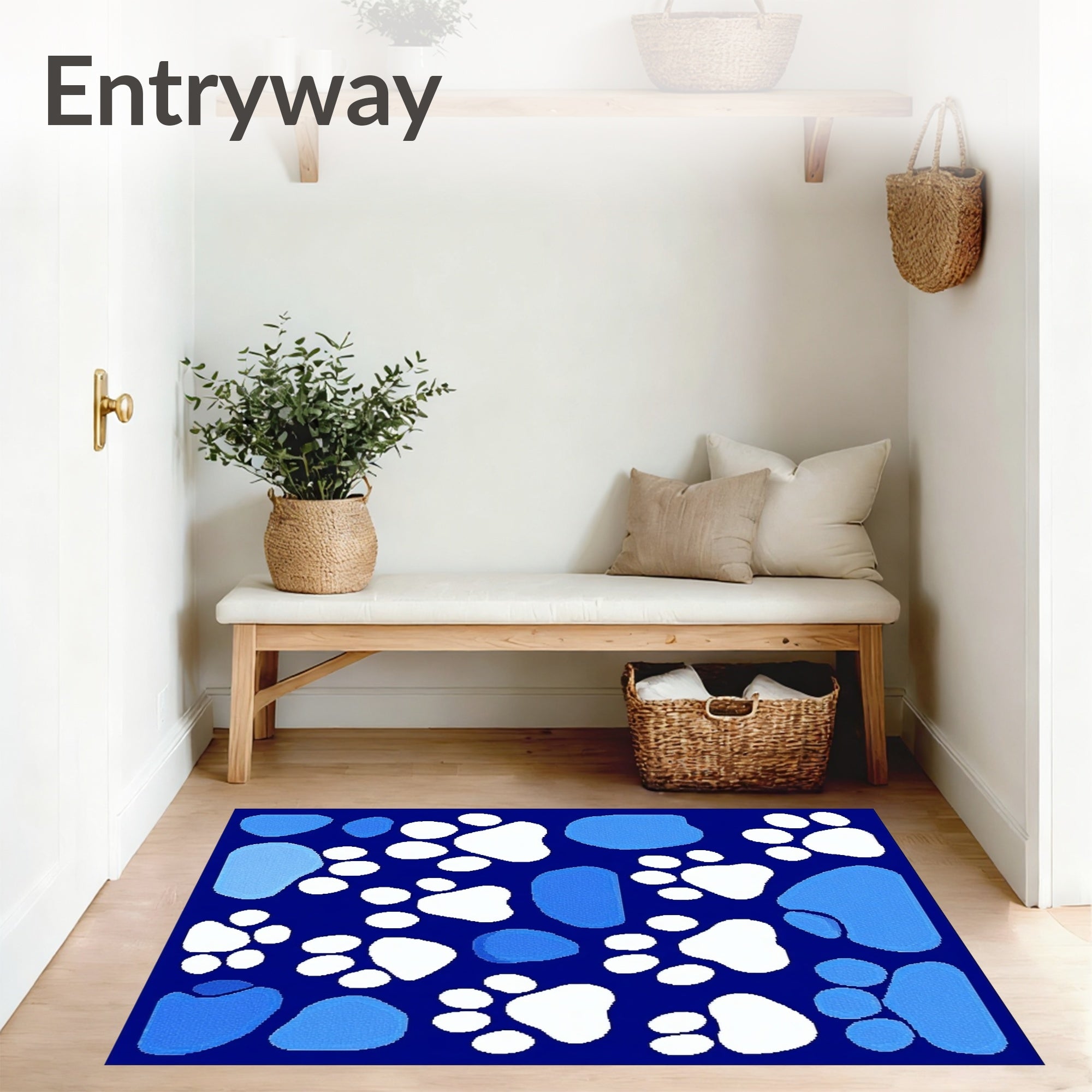 Flatwoven High Traffic Area Rug, Whimsical Cat Paw Print, Non Slip, Stain Resistant, Washable Area Rugs for Living Room, Bedroom (Blue) Overview: