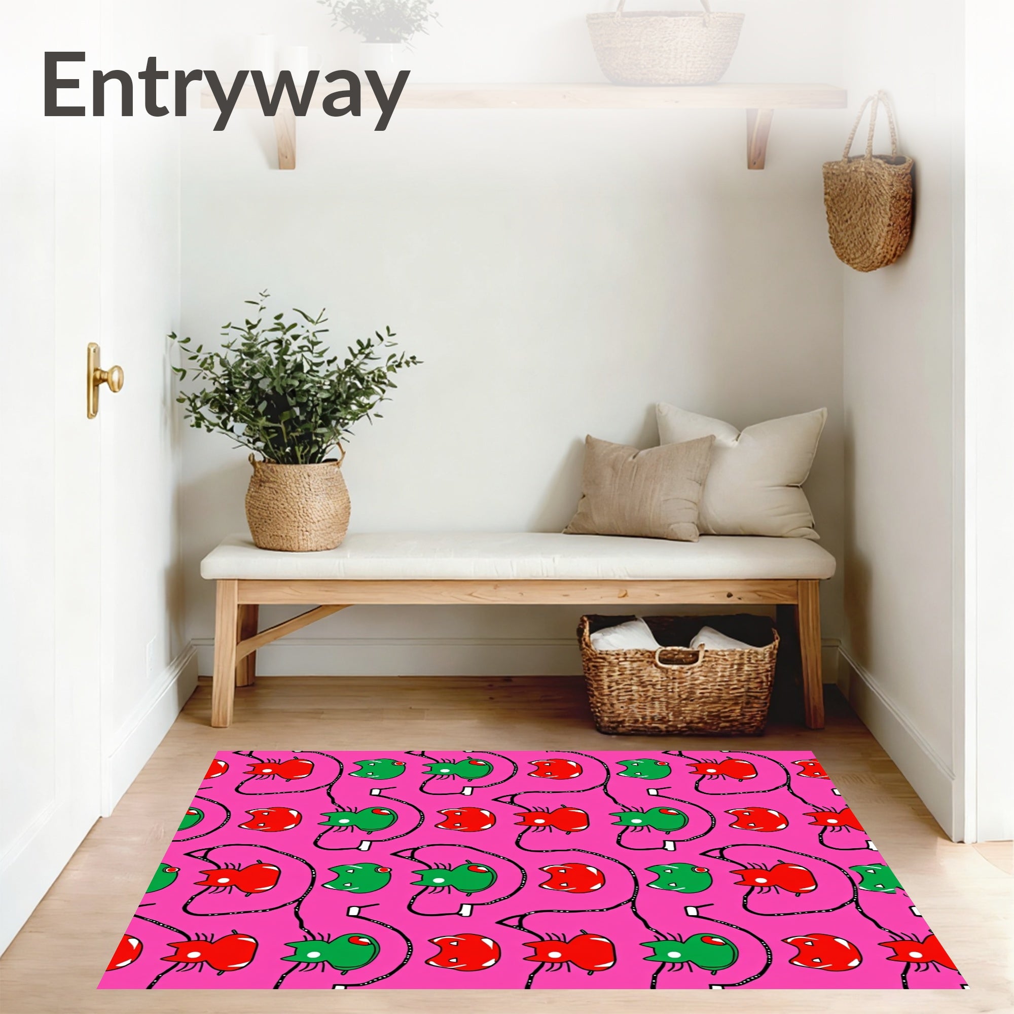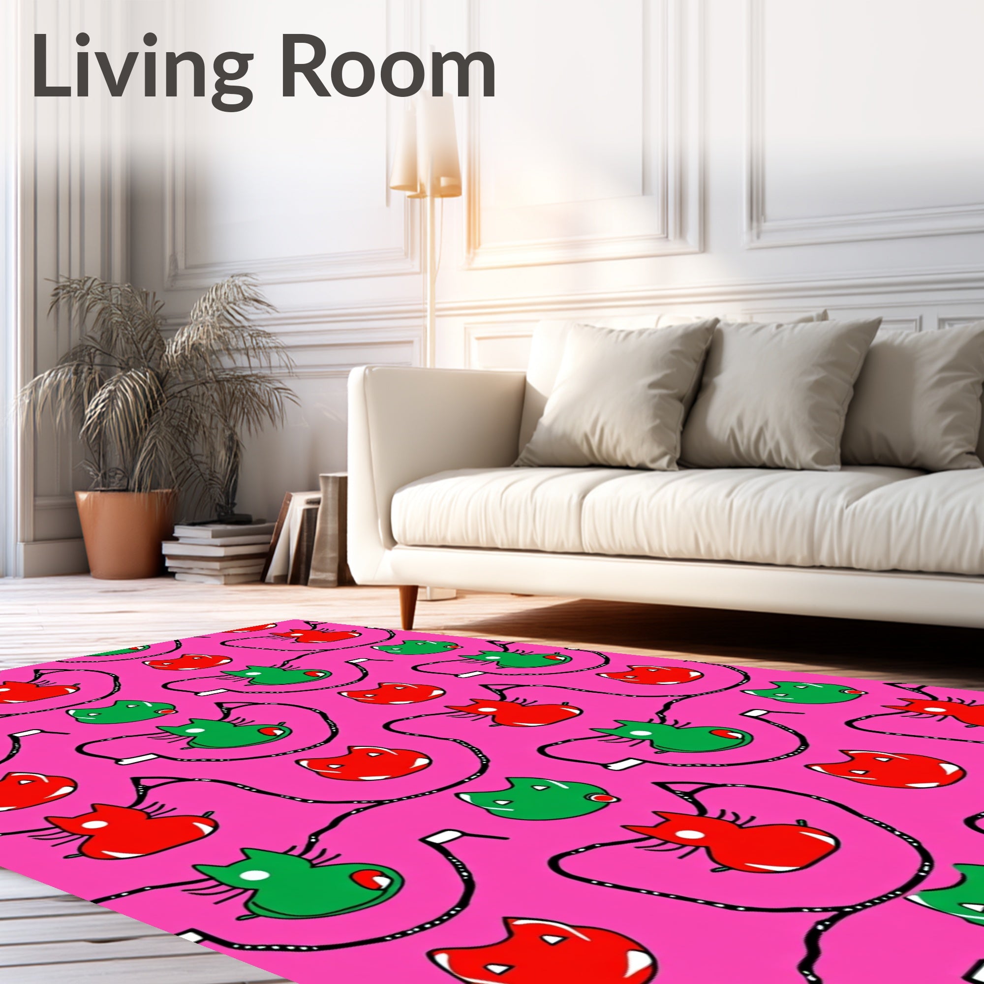 Ultra Soft Area Rug, Non Slip, Stain Resistant, Washable Area Rugs for Living Room, Bedroom, Whimsical Cat Silhouettes with Festive Twinkling Lights(Pink) Overview:
