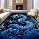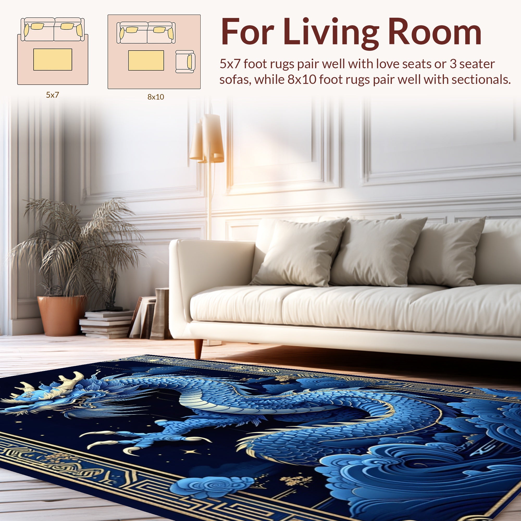 Flatwoven High Traffic Area Rug, Whimsical Celestial Dragon Concept, Non Slip, Stain Resistant, Washable Area Rugs for Living Room, Bedroom (Blue) Overview: