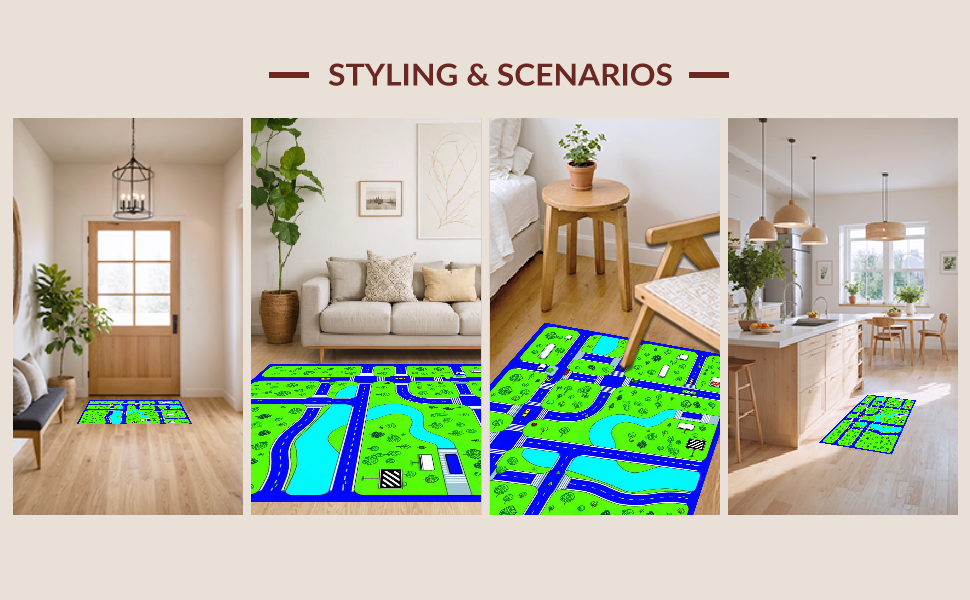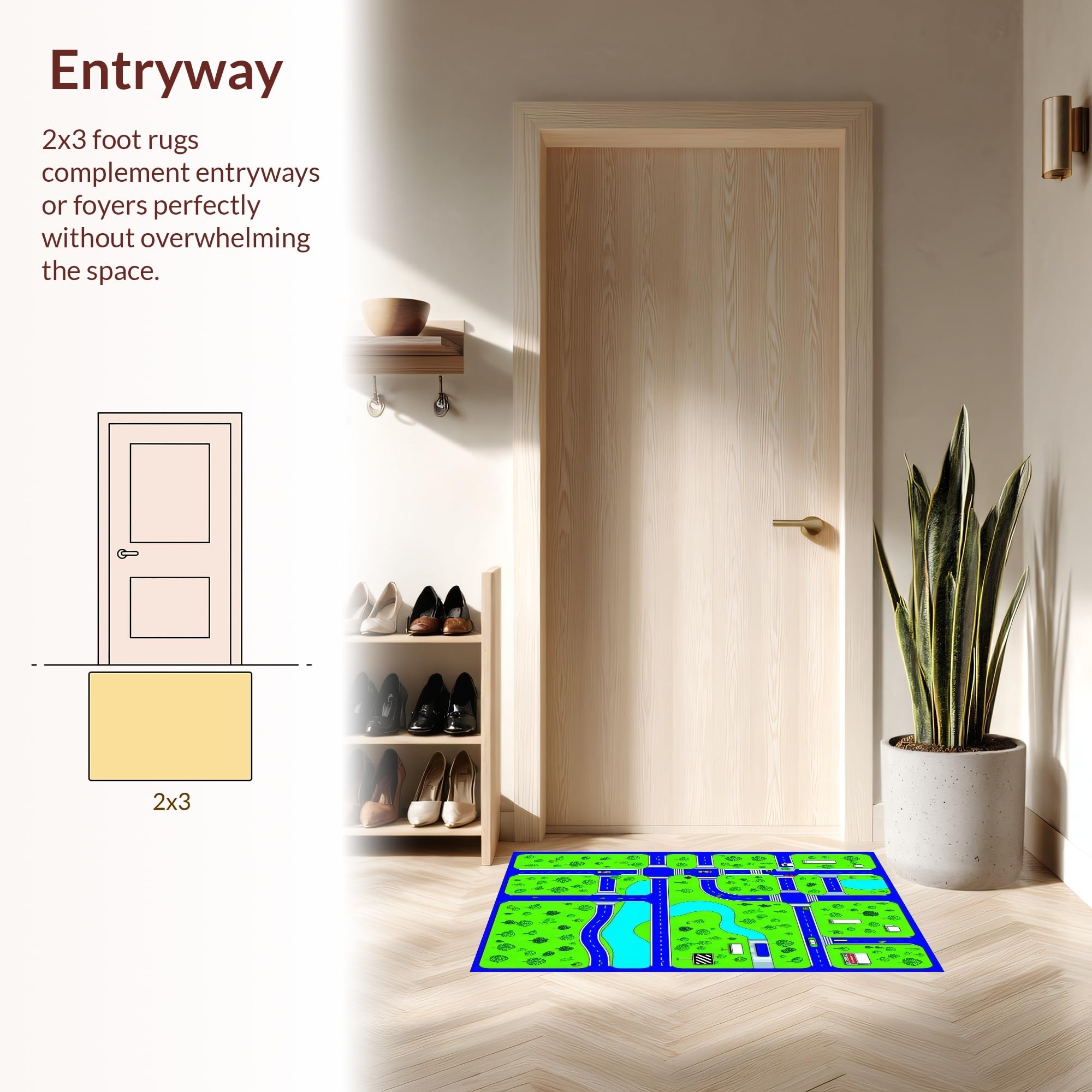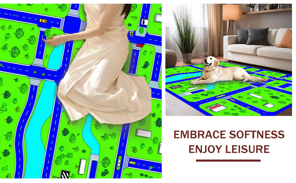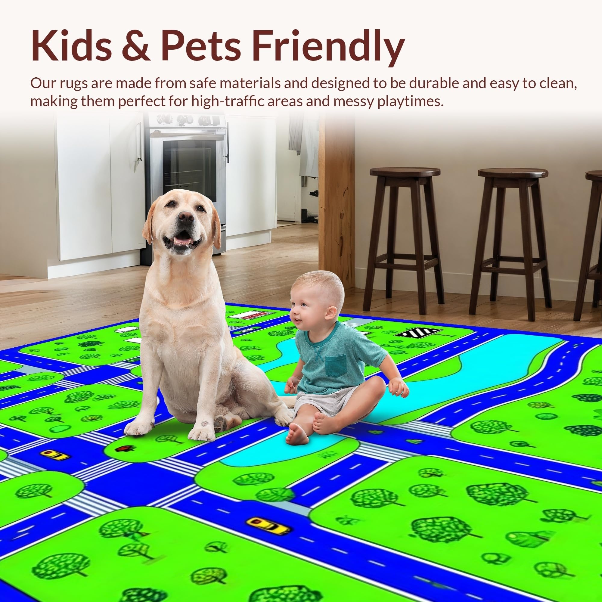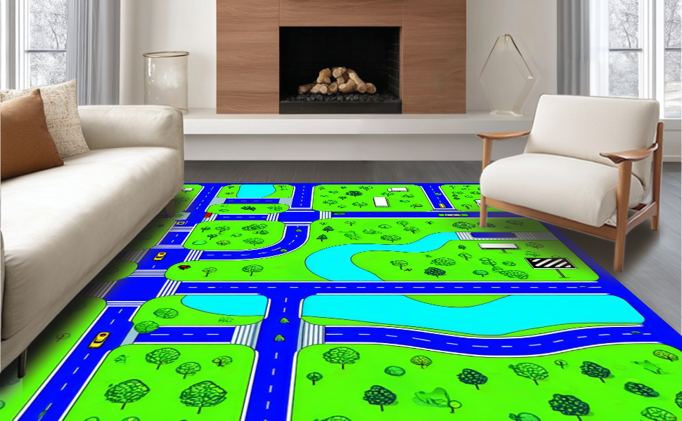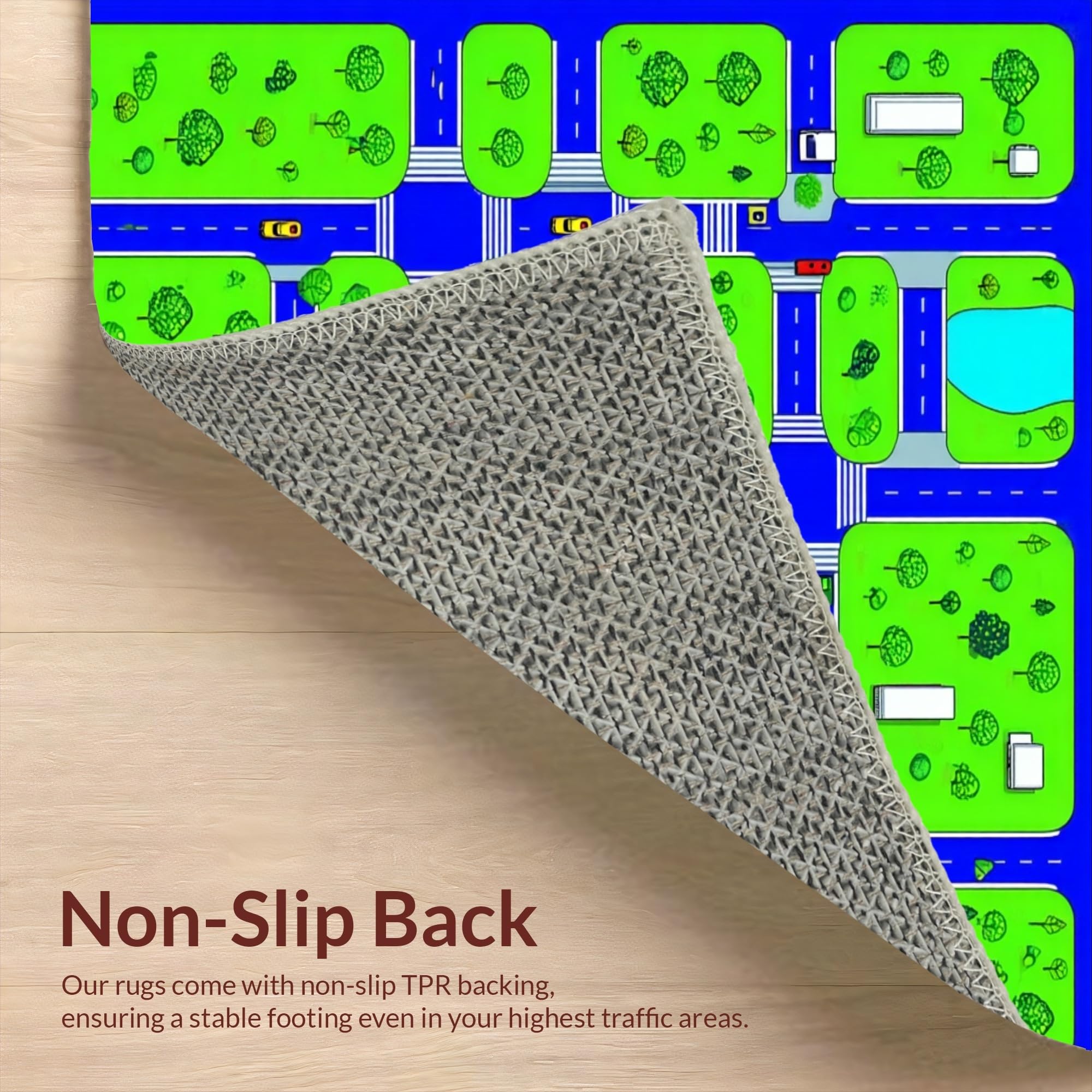 Ultra Soft Area Rug, Non Slip, Stain Resistant, Washable Area Rugs for Living Room, Bedroom, Whimsical Cityscape Exploration Canvas(Blue) Overview: