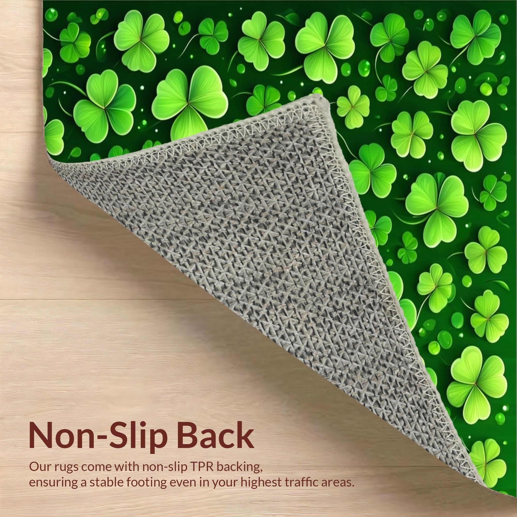 Ultra Soft Area Rug, Non Slip, Stain Resistant, Washable Area Rugs for Living Room, Bedroom, Whimsical Clover Patterned Decor(Green) Overview: