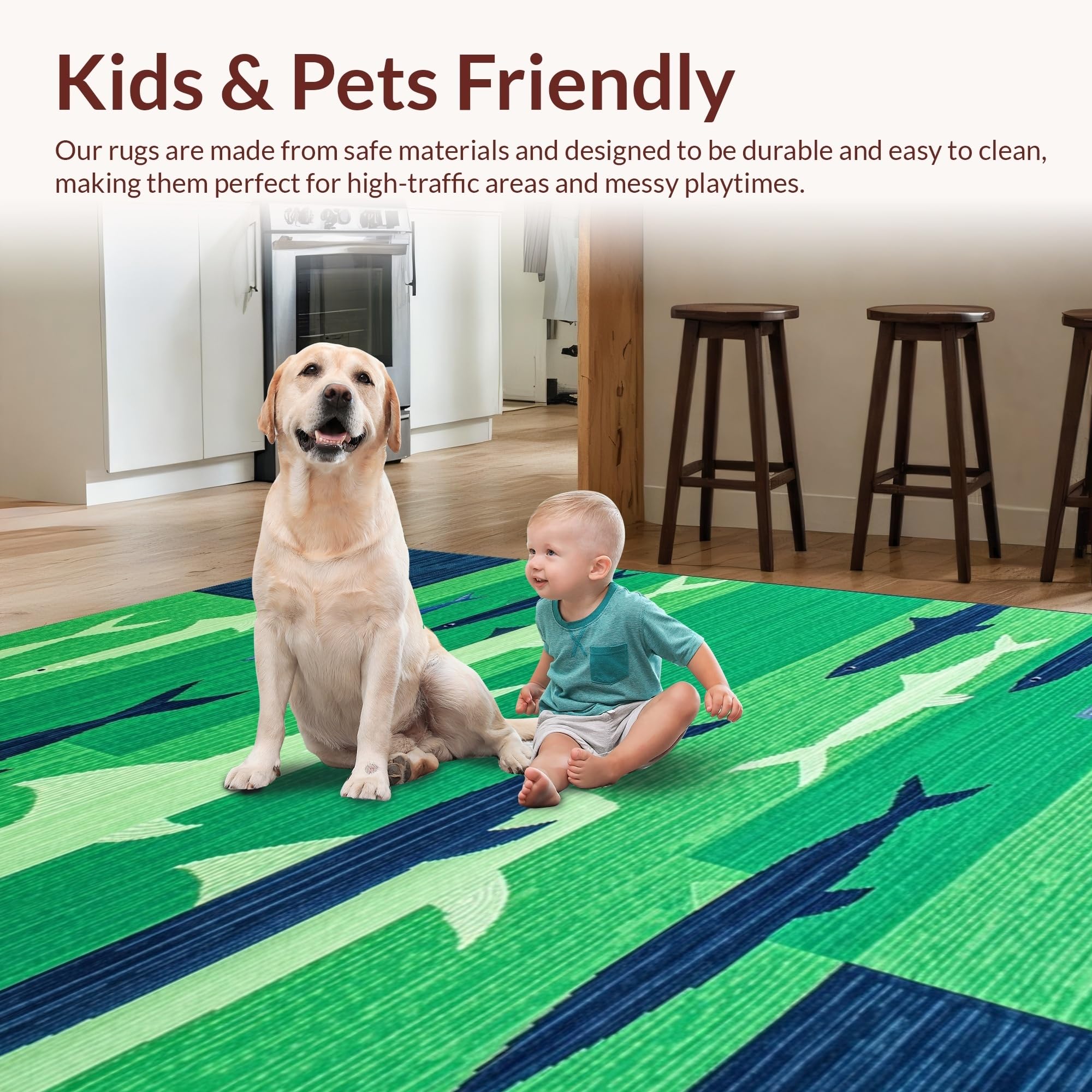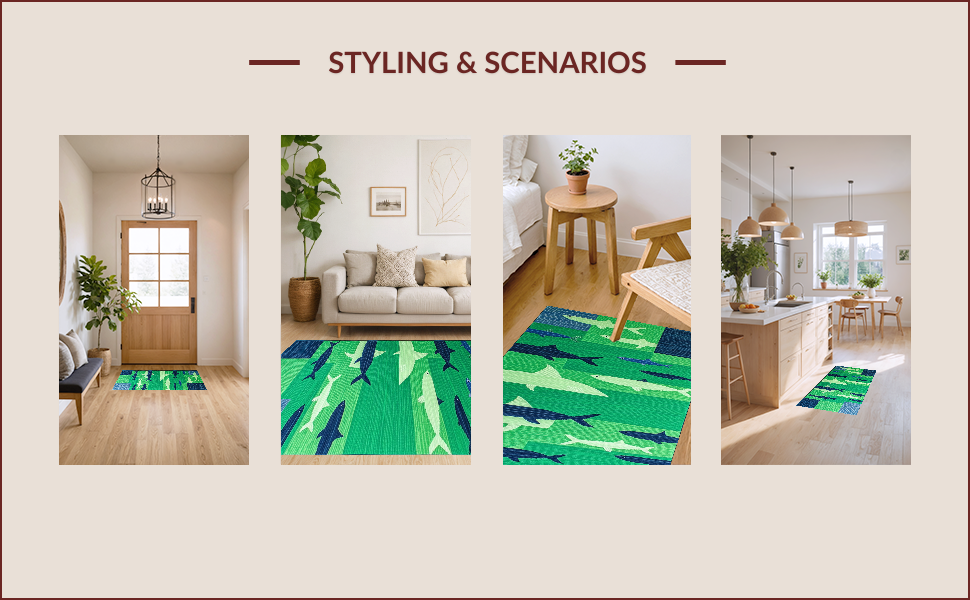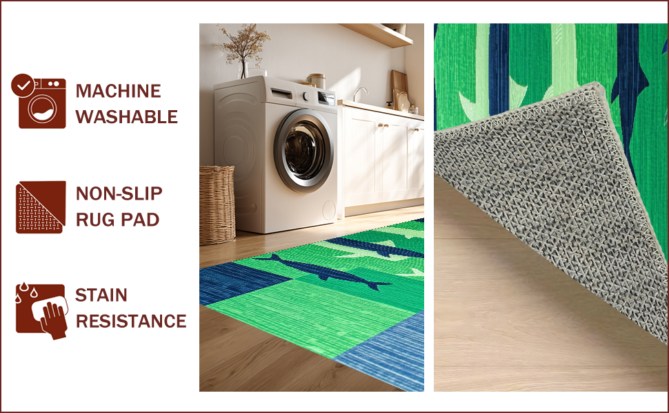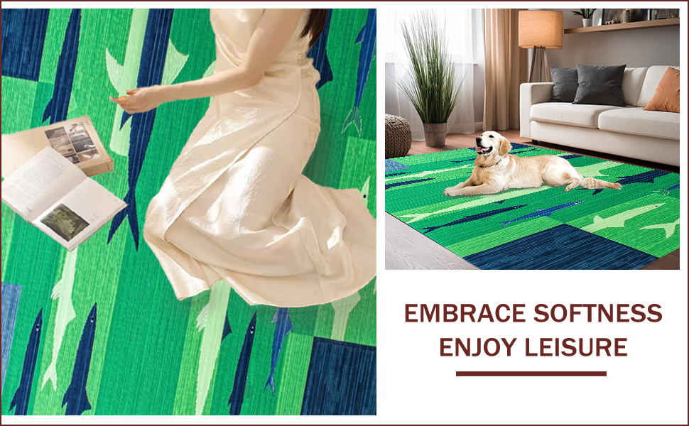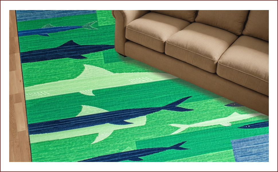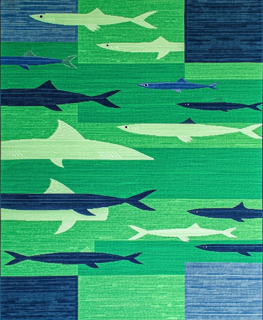 Ultra Soft Area Rug, Non Slip, Stain Resistant, Washable Area Rugs for Living Room, Bedroom, Whimsical Coastal Fishing Motif(Green) Overview: