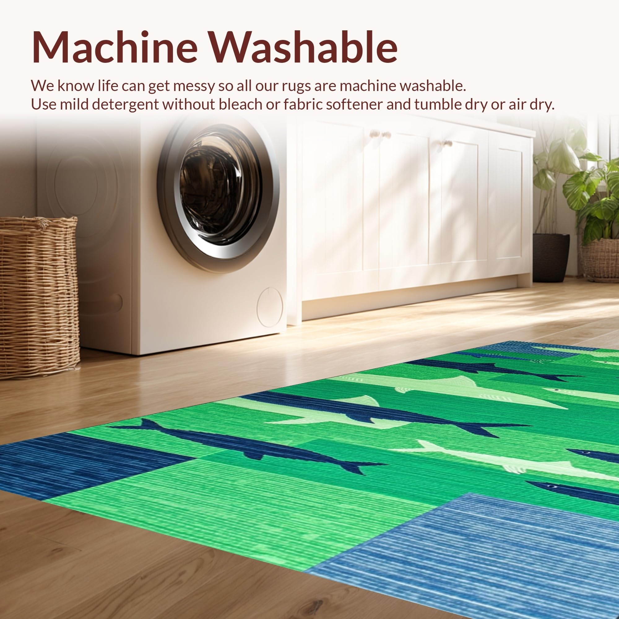 - Machine Washable: Our rugs can be easily thrown in the wash machine.