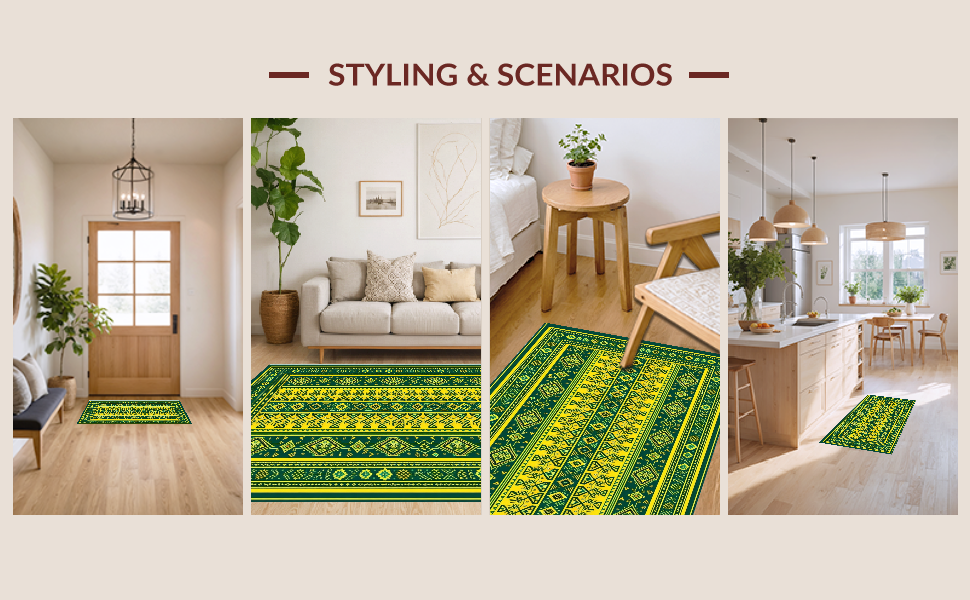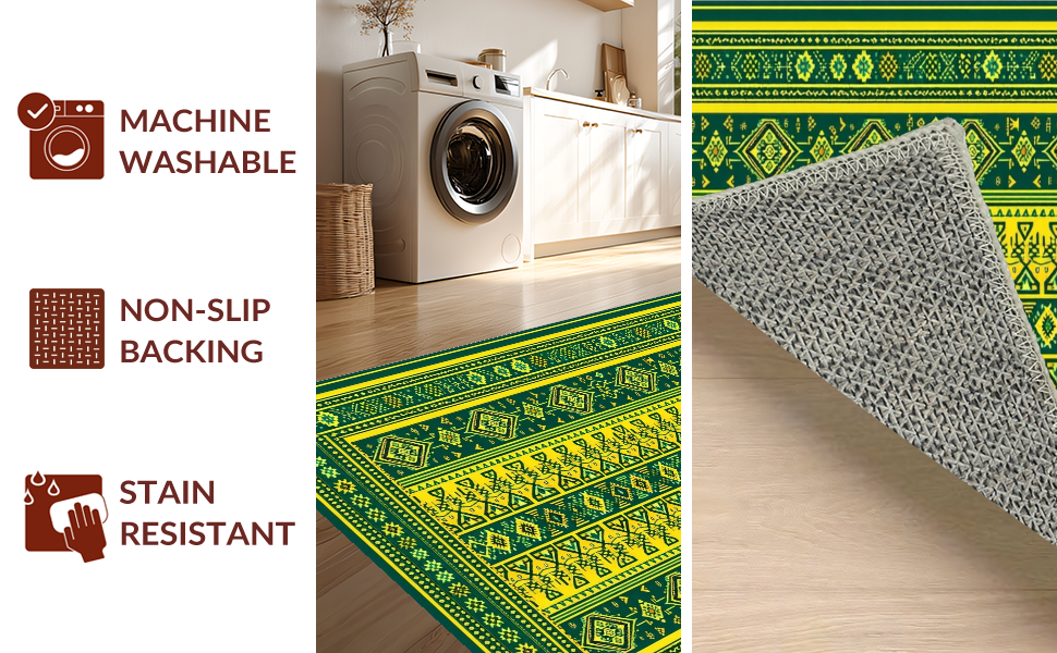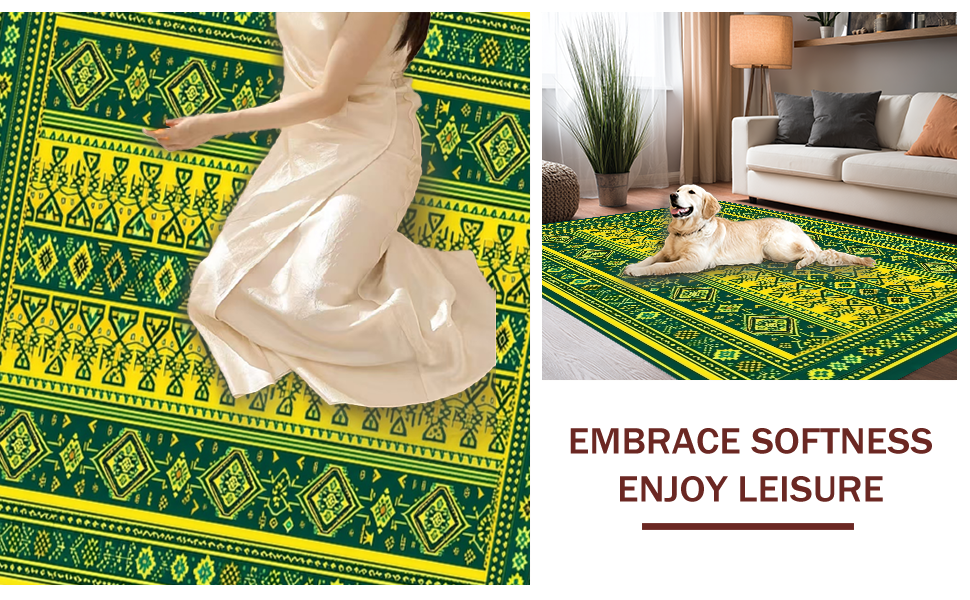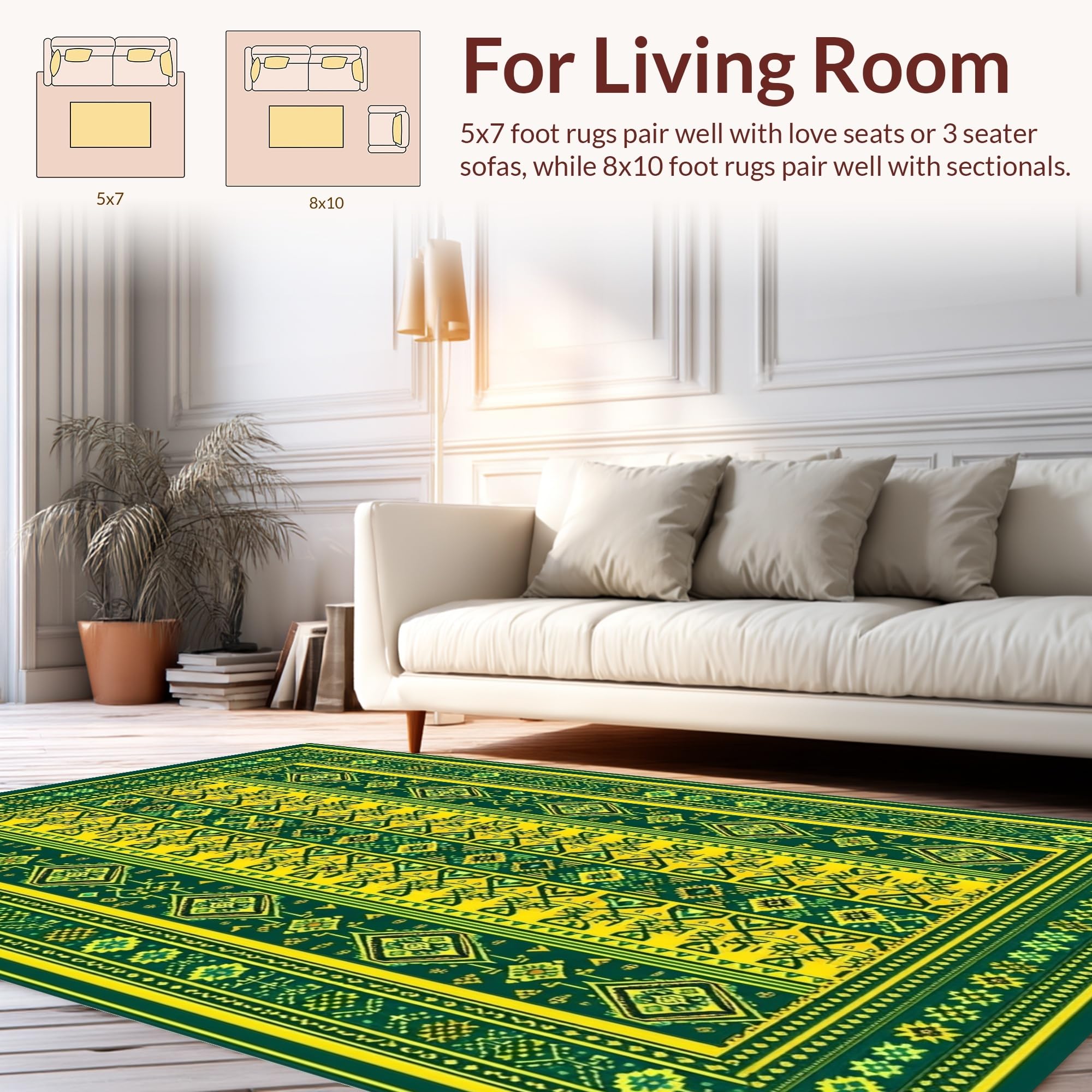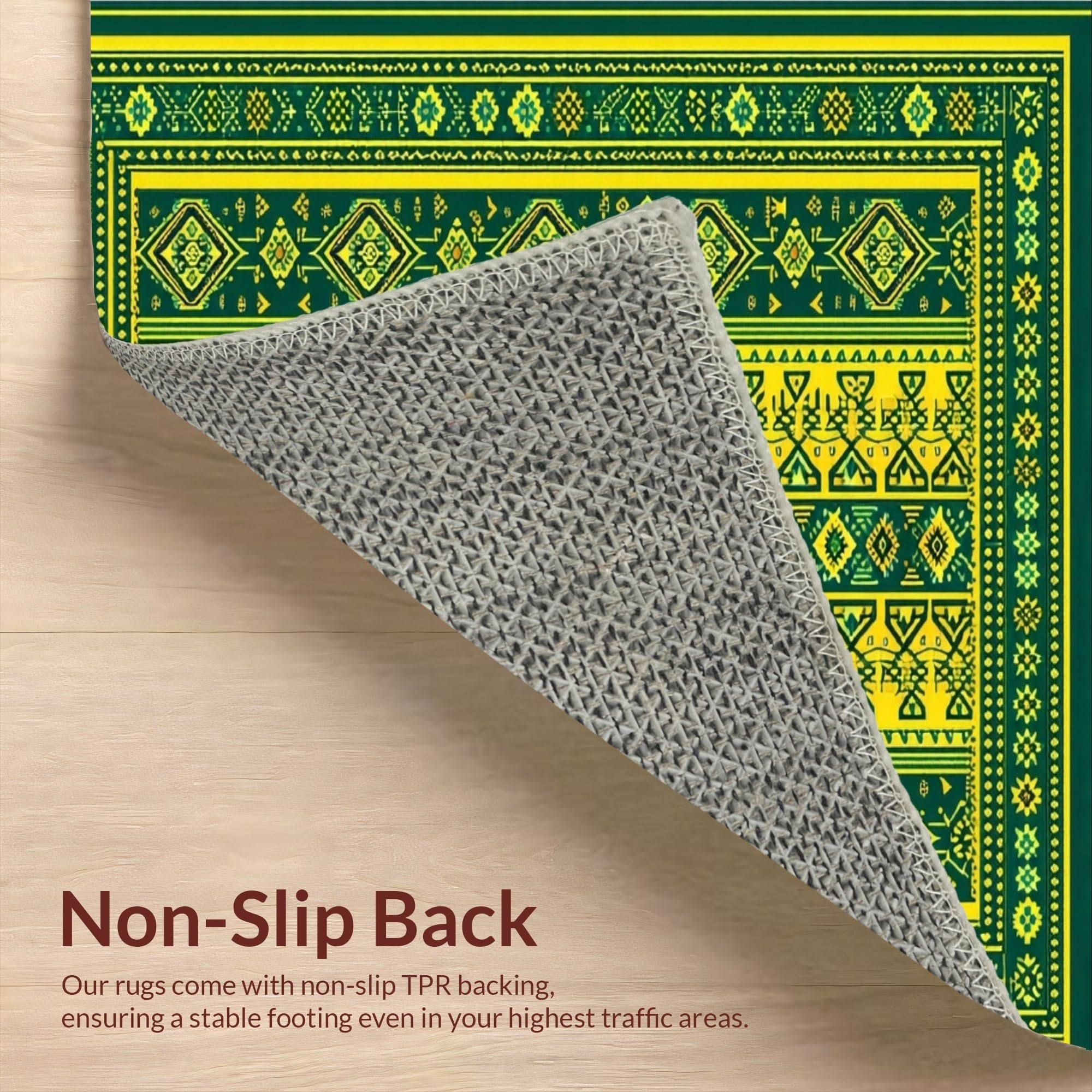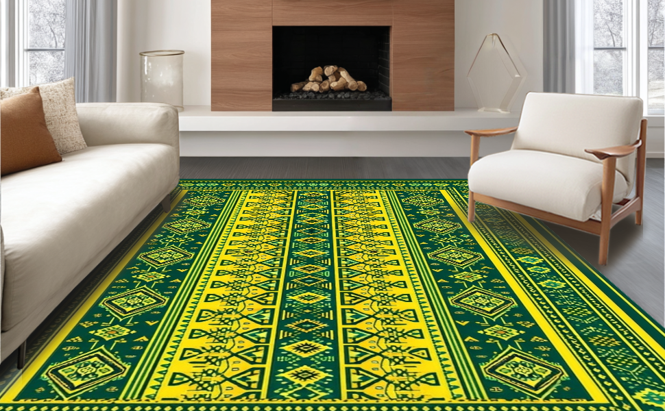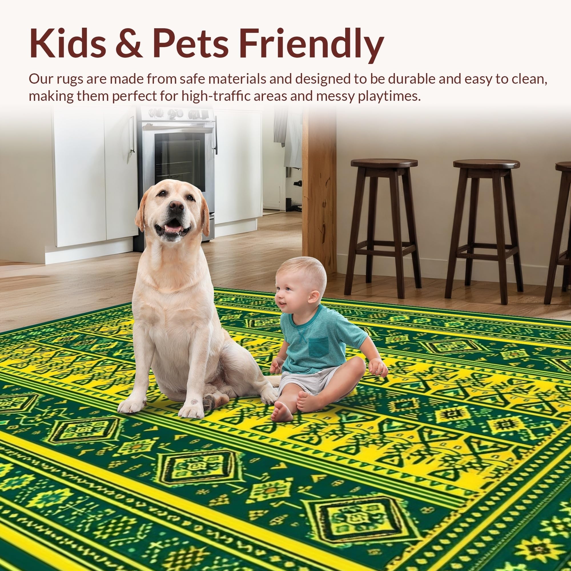 Ultra Soft Area Rug, Non Slip, Stain Resistant, Washable Area Rugs for Living Room, Bedroom, Whimsical Colorful Damask Print(Green) Overview:
