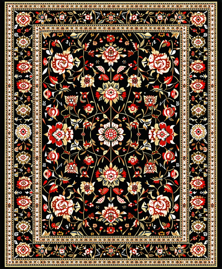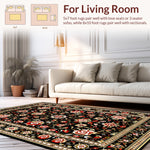 Flatwoven High Traffic Area Rug, Whimsical Colorful Floral Accents, Non Slip, Stain Resistant, Washable Area Rugs for Living Room, Bedroom (Black) Overview: