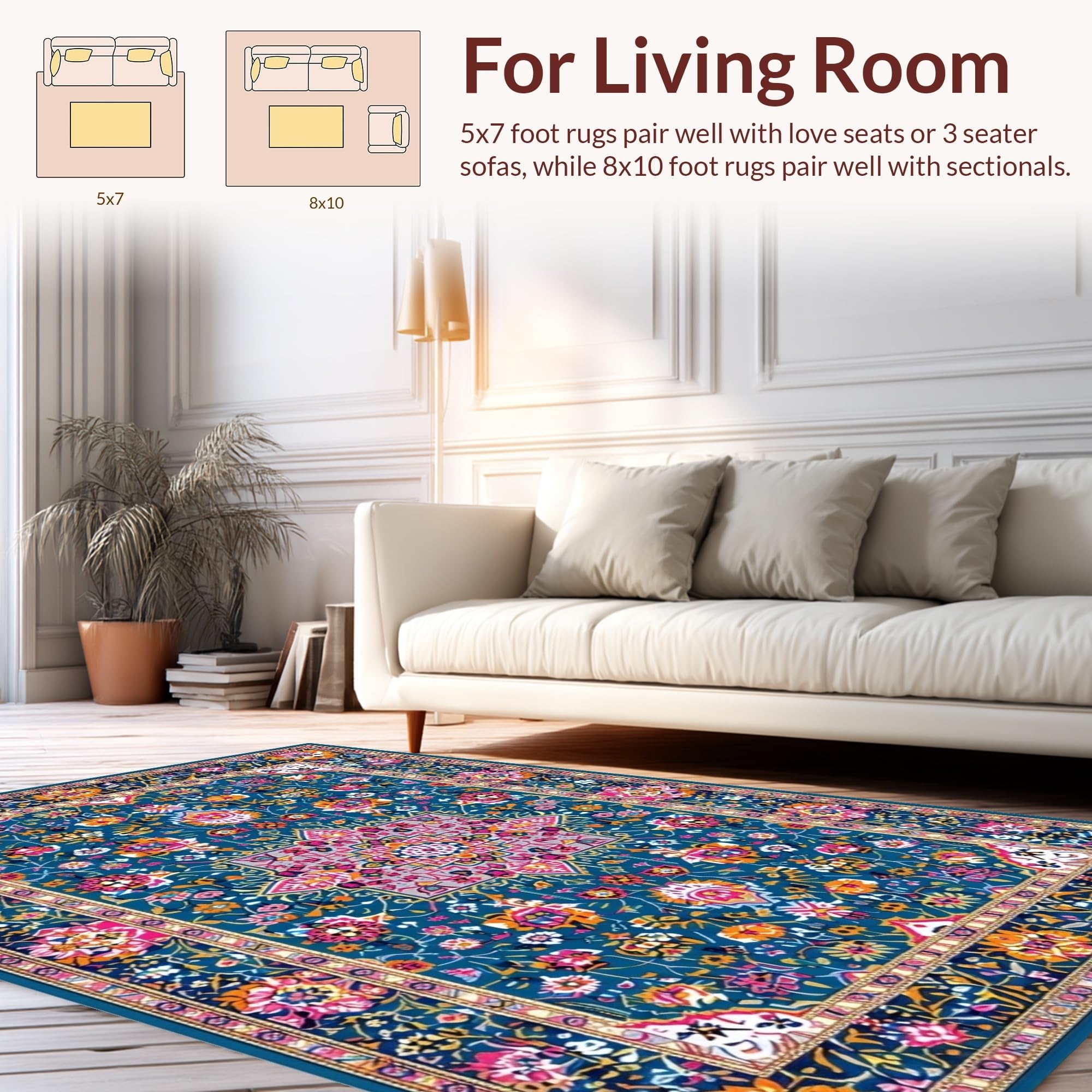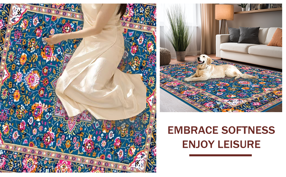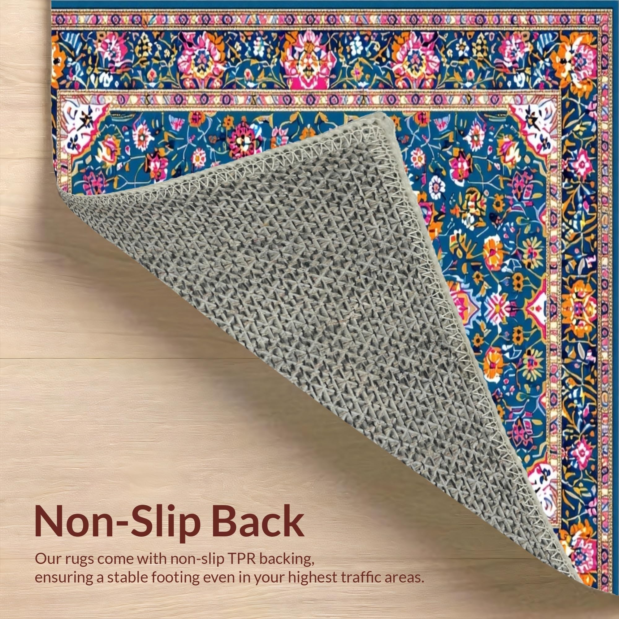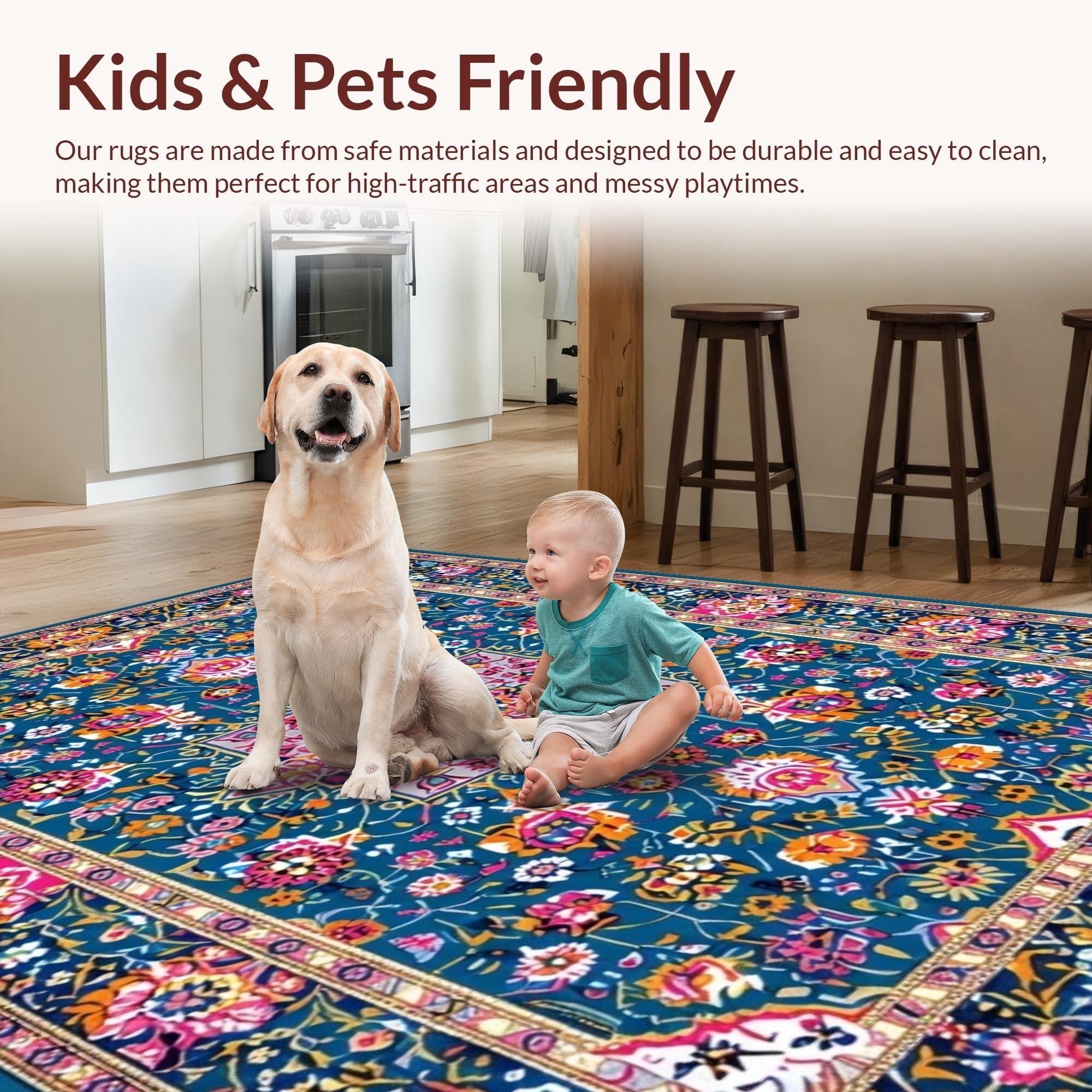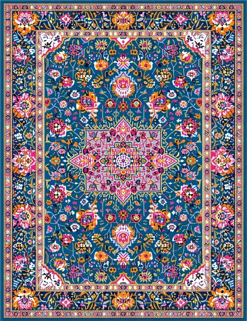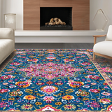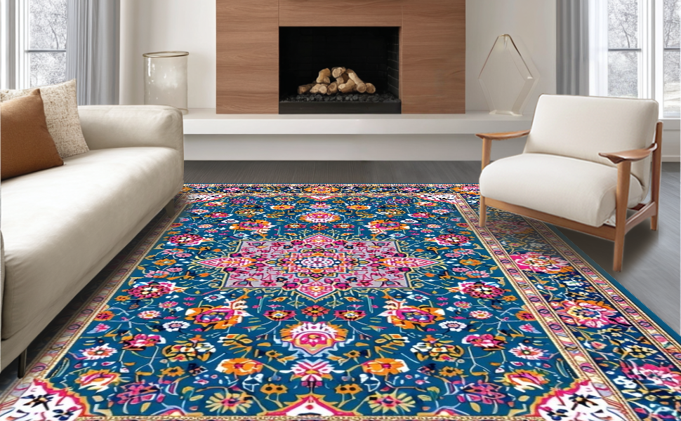 Ultra Soft Area Rug, Non Slip, Stain Resistant, Washable Area Rugs for Living Room, Bedroom, Whimsical Colorful Ogee Pattern(Blue) Overview: