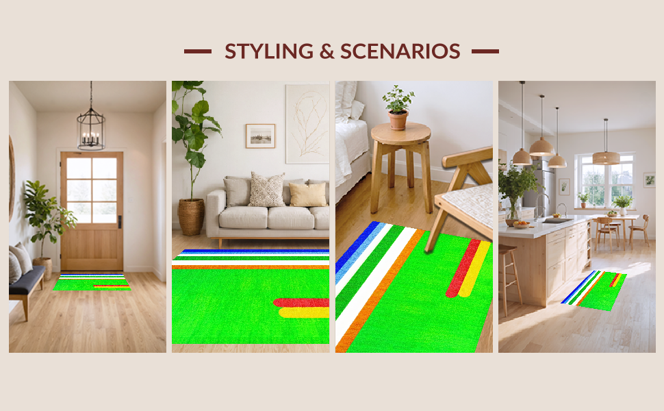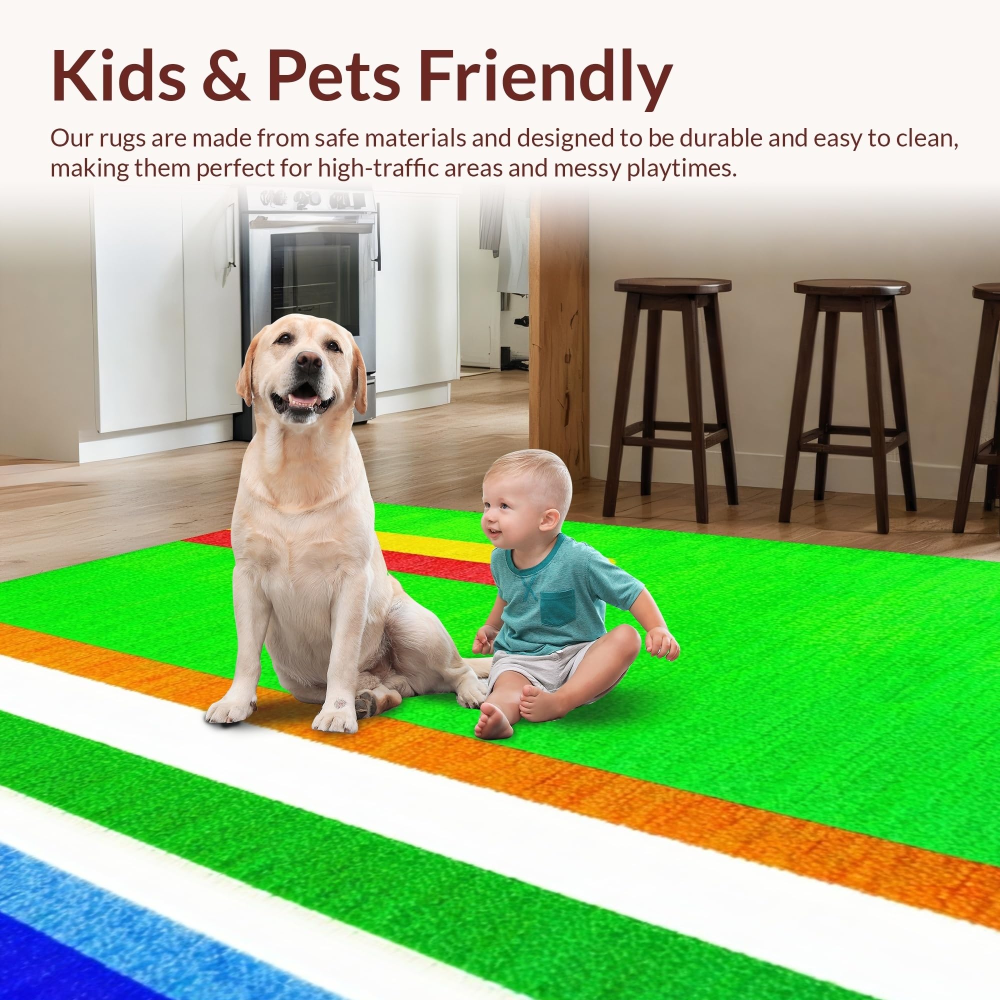 Ultra Soft Area Rug, Non Slip, Stain Resistant, Washable Area Rugs for Living Room, Bedroom, Whimsical Colorful Playful Design(Green) Overview:
