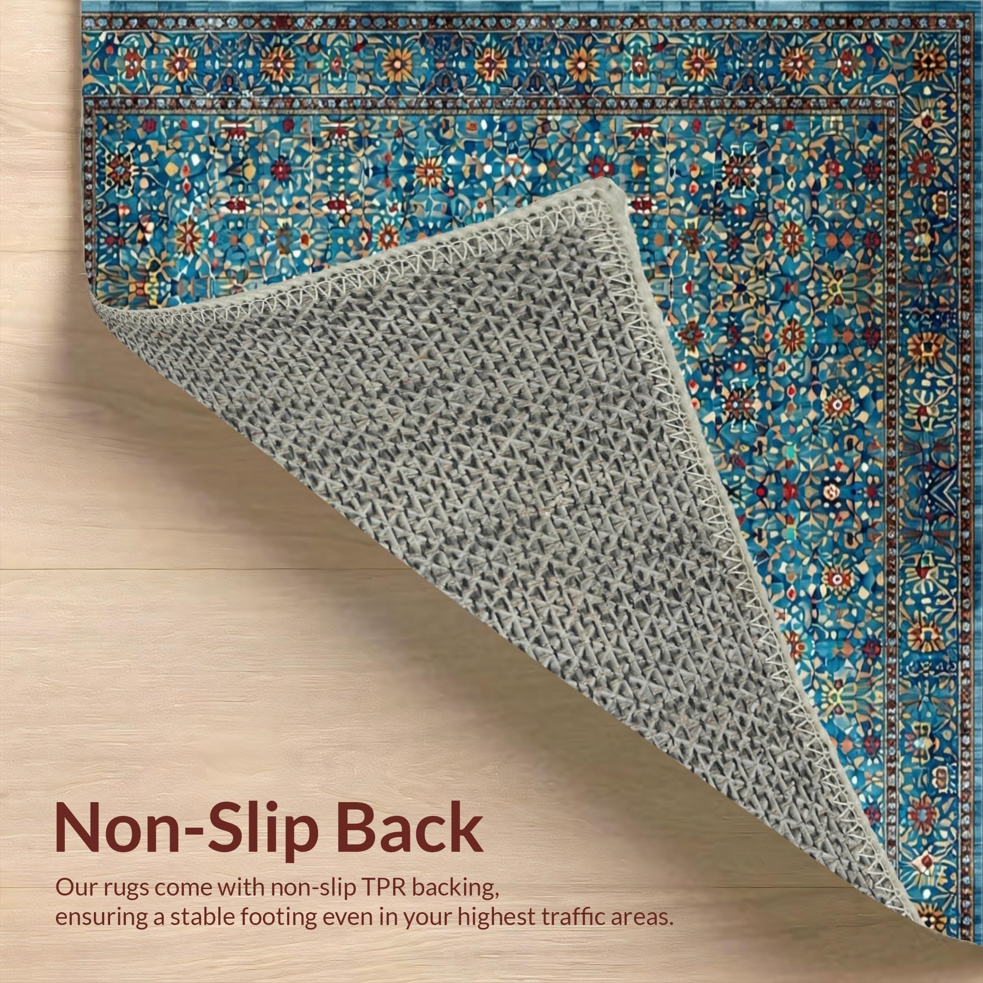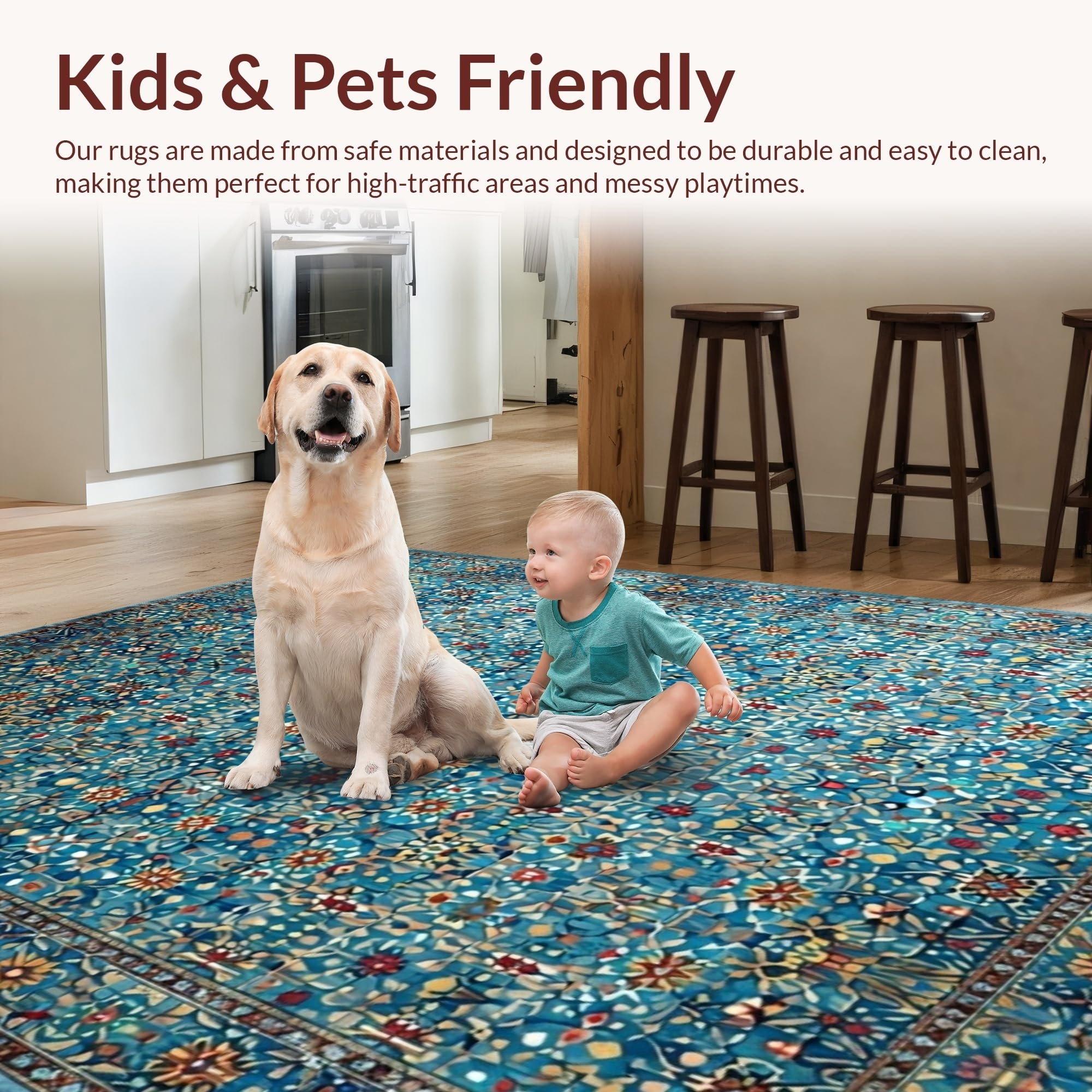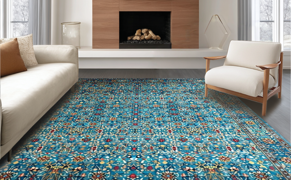 Ultra Soft Area Rug, Non Slip, Stain Resistant, Washable Area Rugs for Living Room, Bedroom, Whimsical Colorful Tiled Patterns(Blue) Overview: