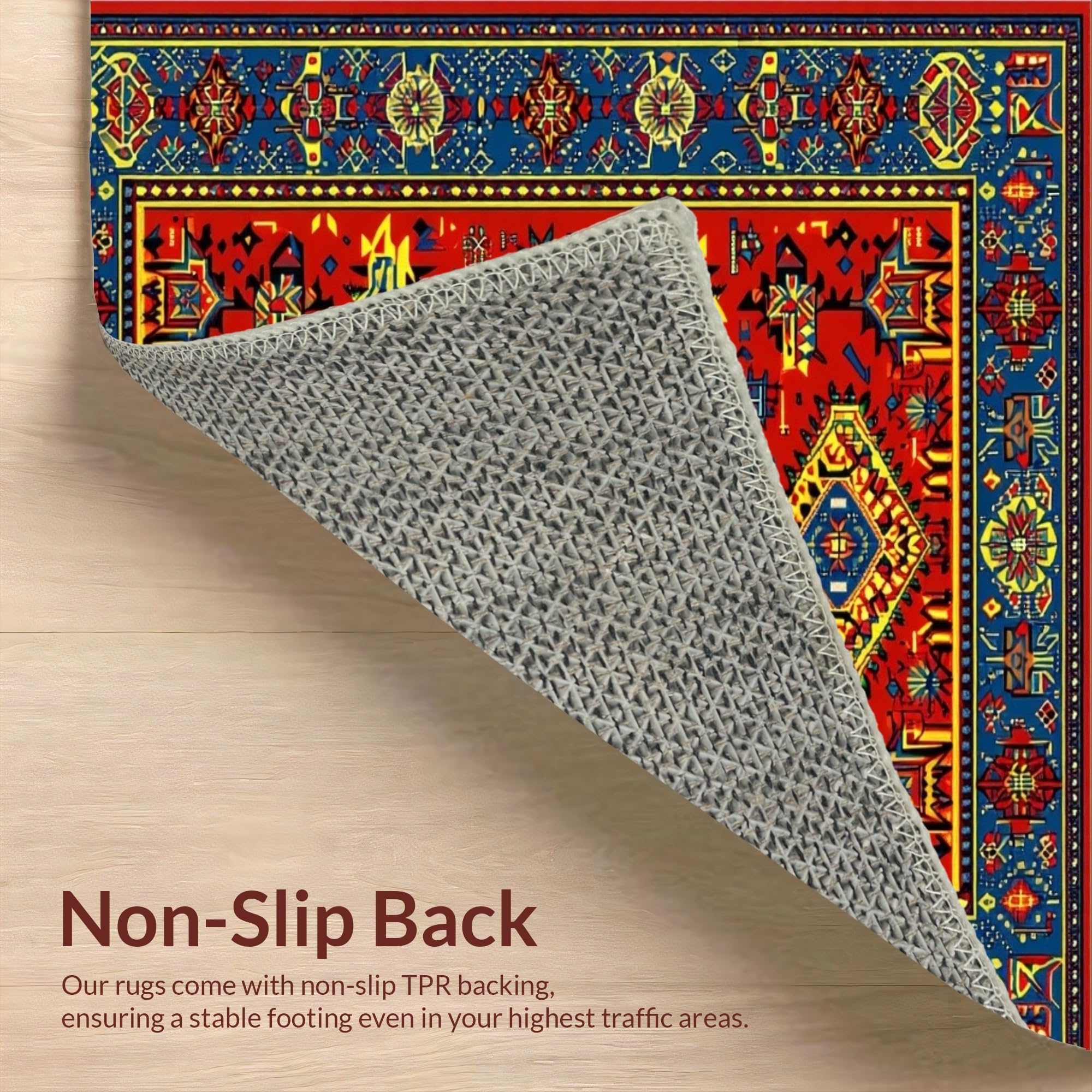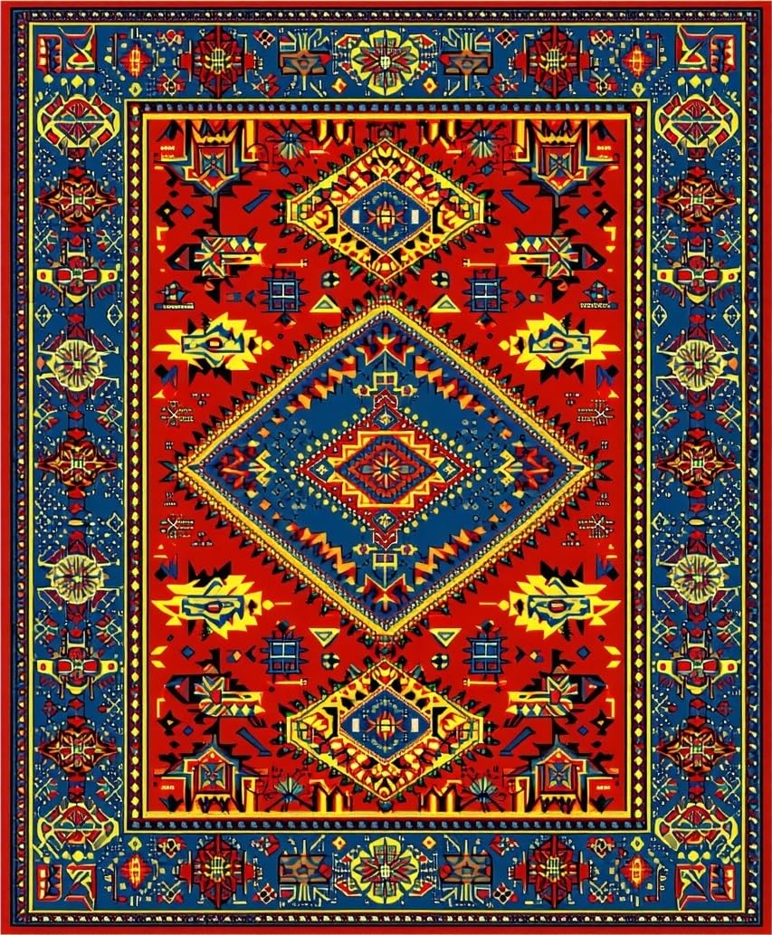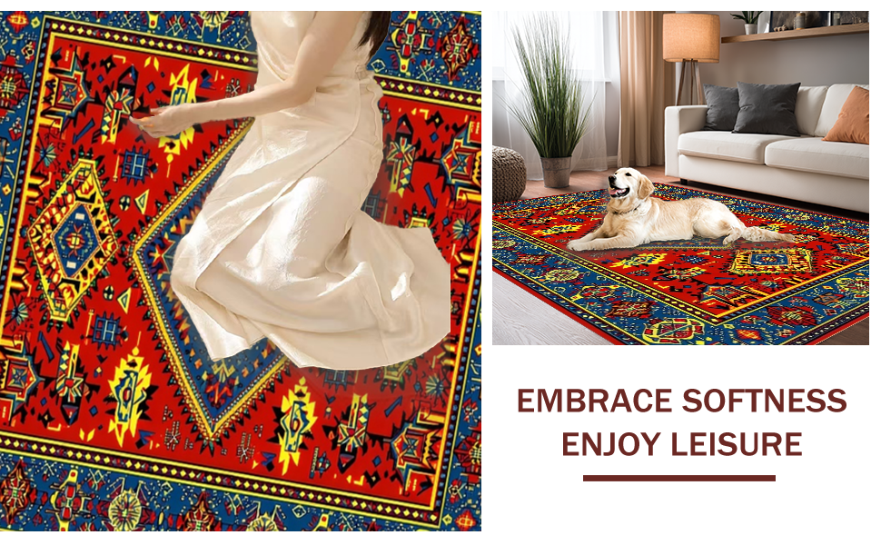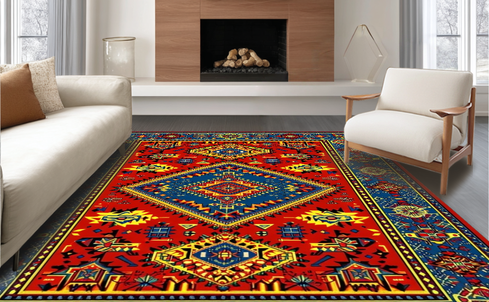 Ultra Soft Area Rug, Non Slip, Stain Resistant, Washable Area Rugs for Living Room, Bedroom, Whimsical Colorful Zigzag Pattern(Red) Overview: