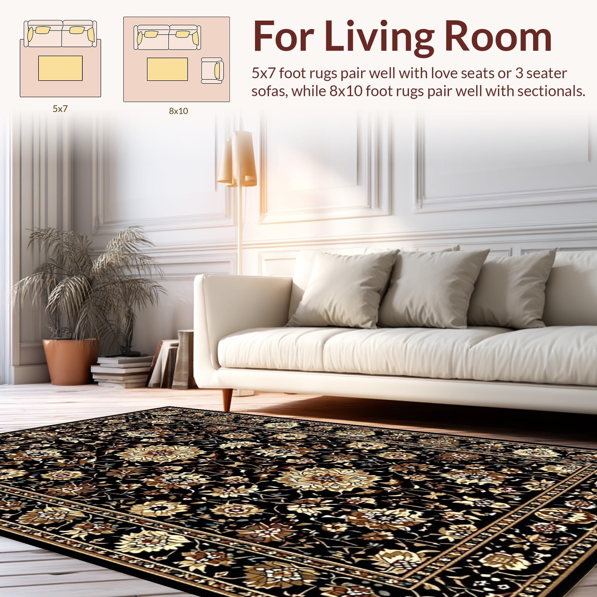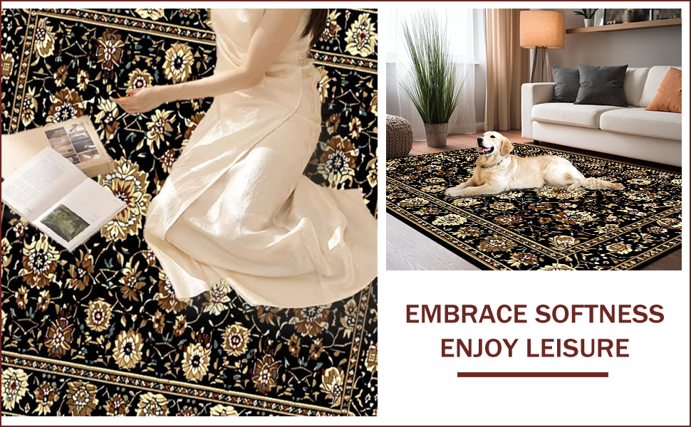 Ultra Soft Area Rug, Non Slip, Stain Resistant, Washable Area Rugs for Living Room, Bedroom, Whimsical Country Cottage Charm(Black) Overview: