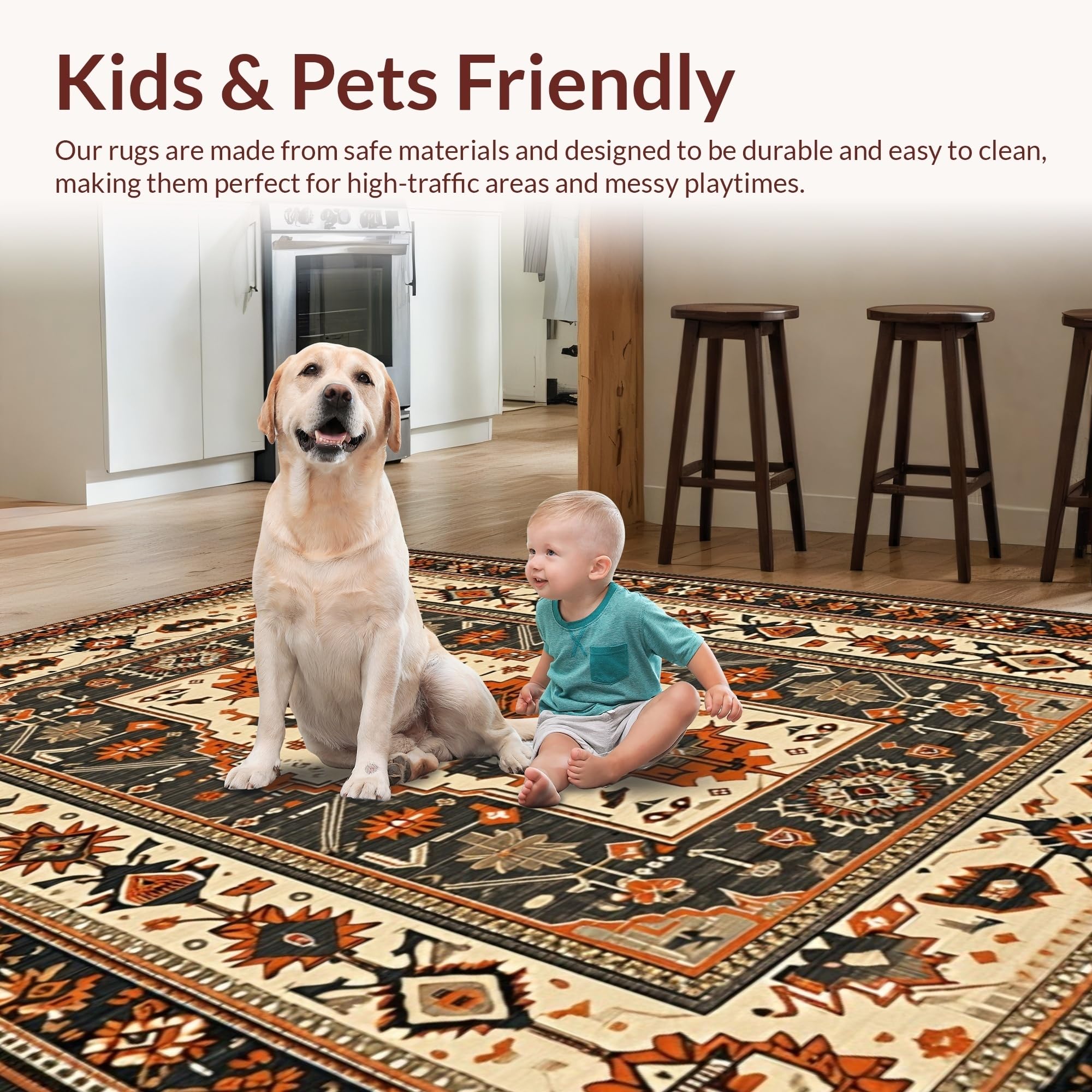 Ultra Soft Area Rug, Non Slip, Stain Resistant, Washable Area Rugs for Living Room, Bedroom, Whimsical Cowboy-Inspired Circular Decor(Beige) Overview: