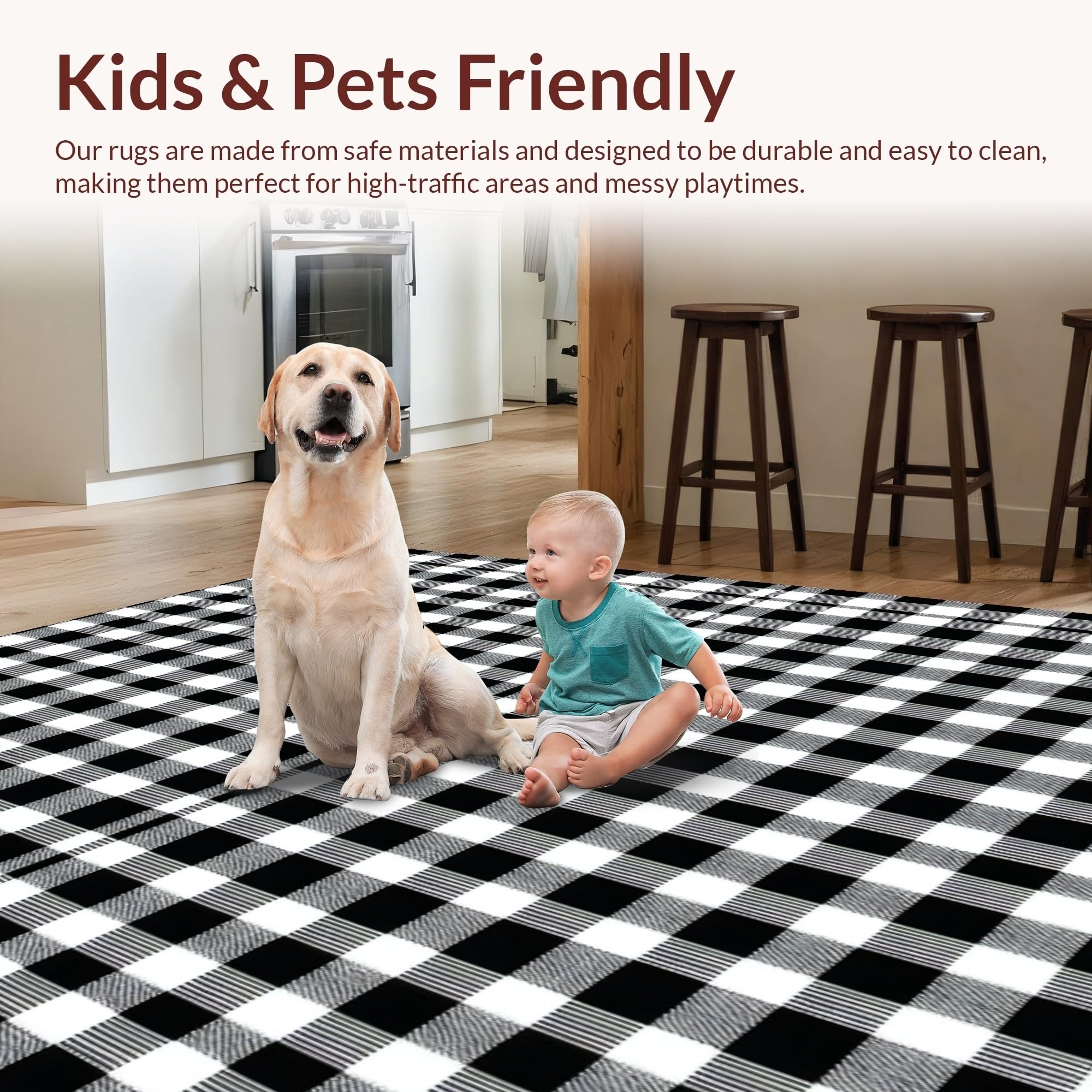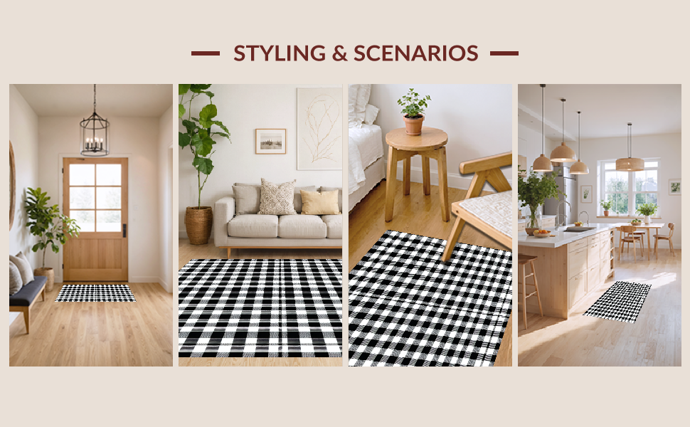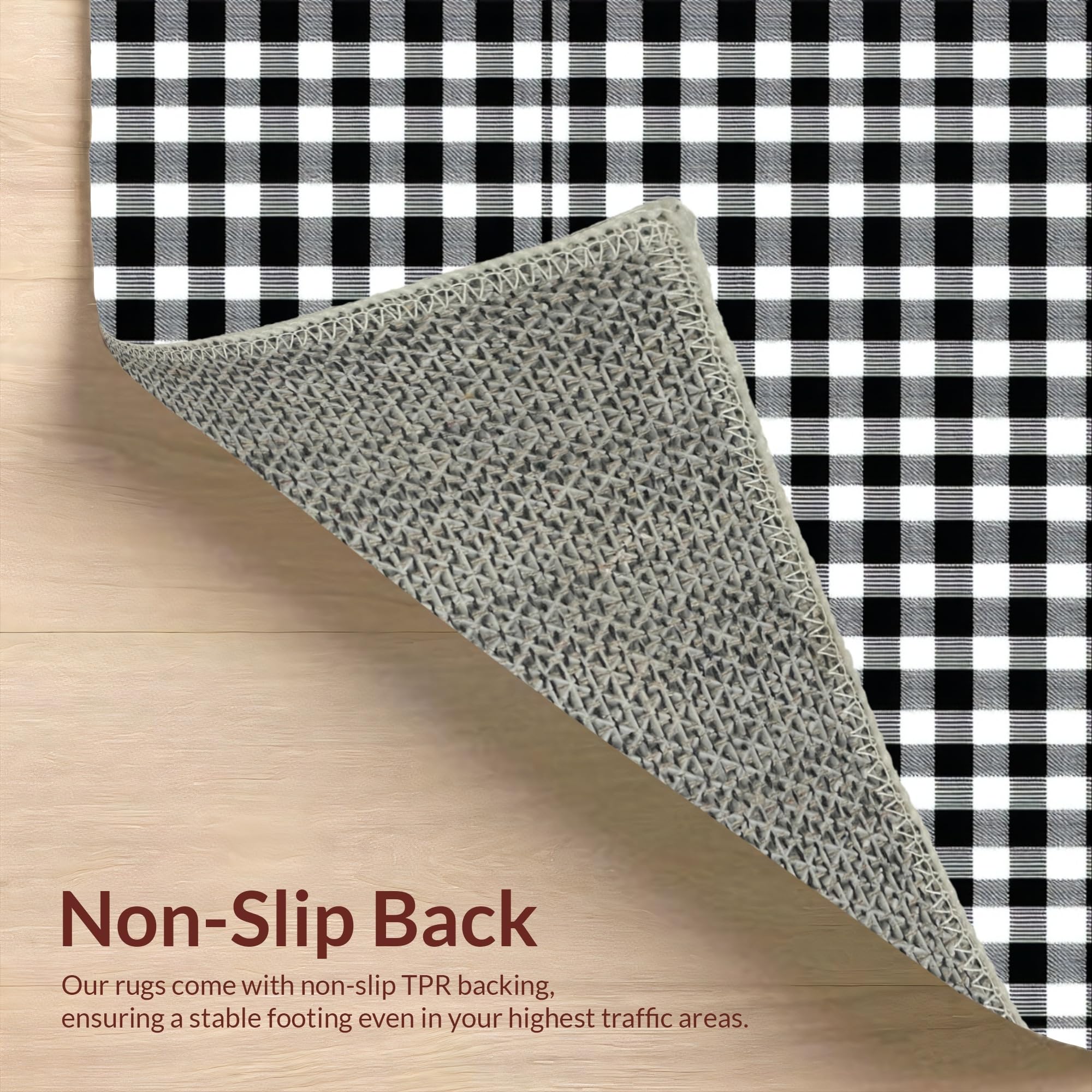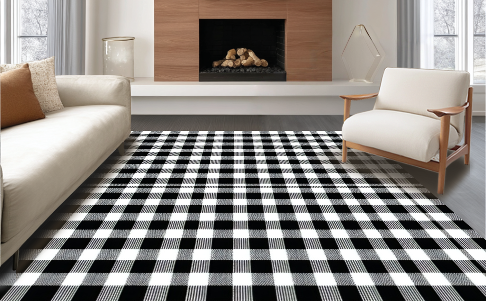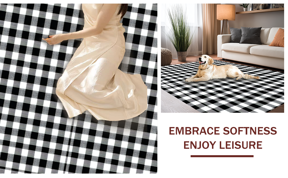 Ultra Soft Area Rug, Non Slip, Stain Resistant, Washable Area Rugs for Living Room, Bedroom, Whimsical Cozy Gingham Appeal(Black) Overview: