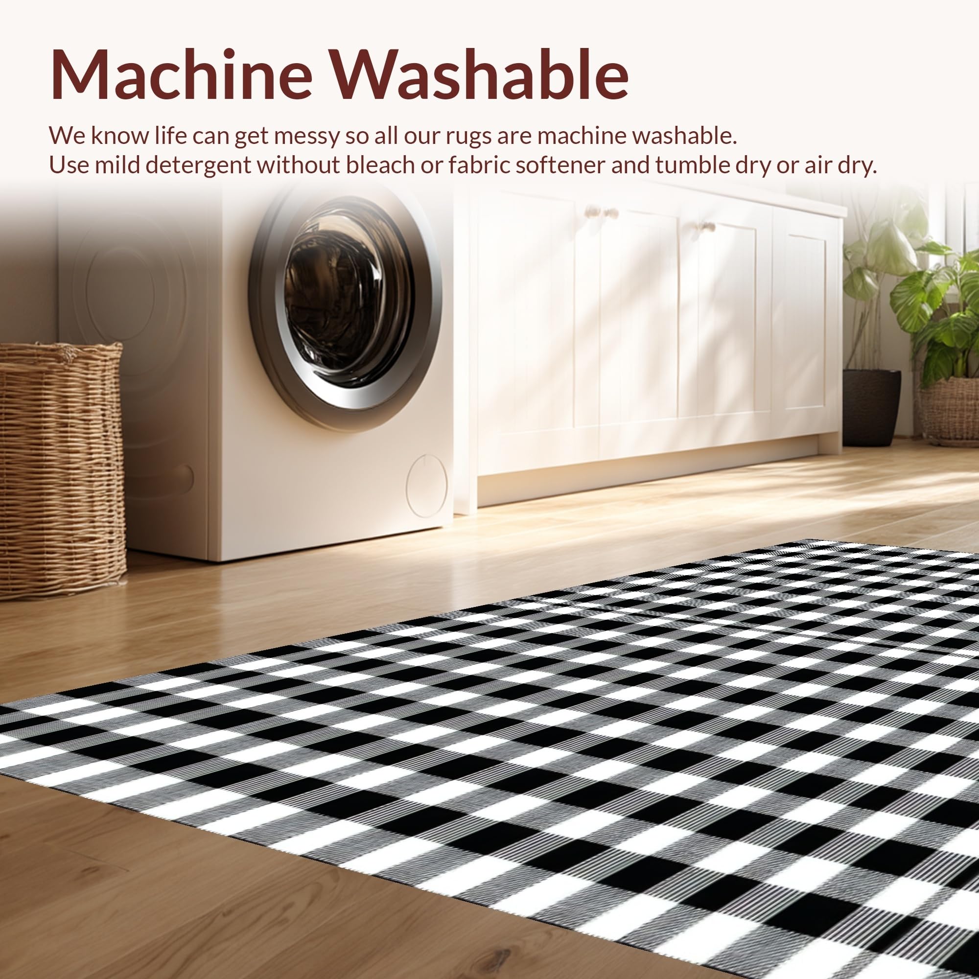 - Machine Washable: Our rugs can be easily thrown in the wash machine.