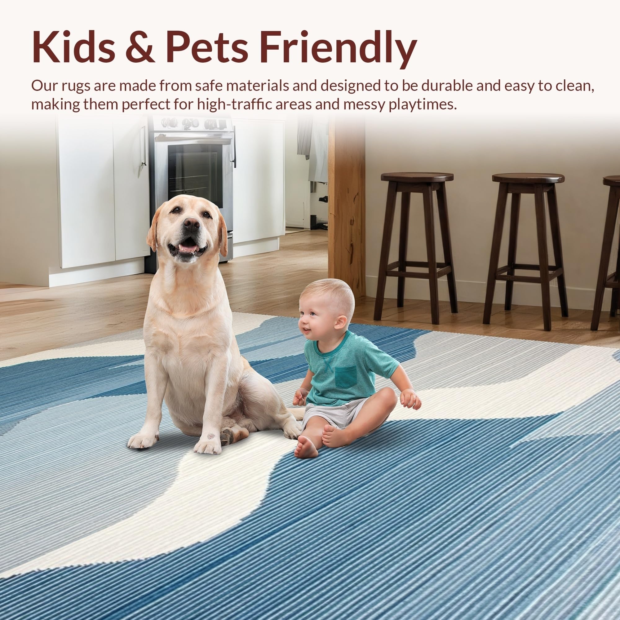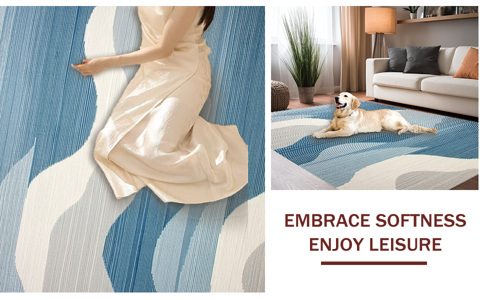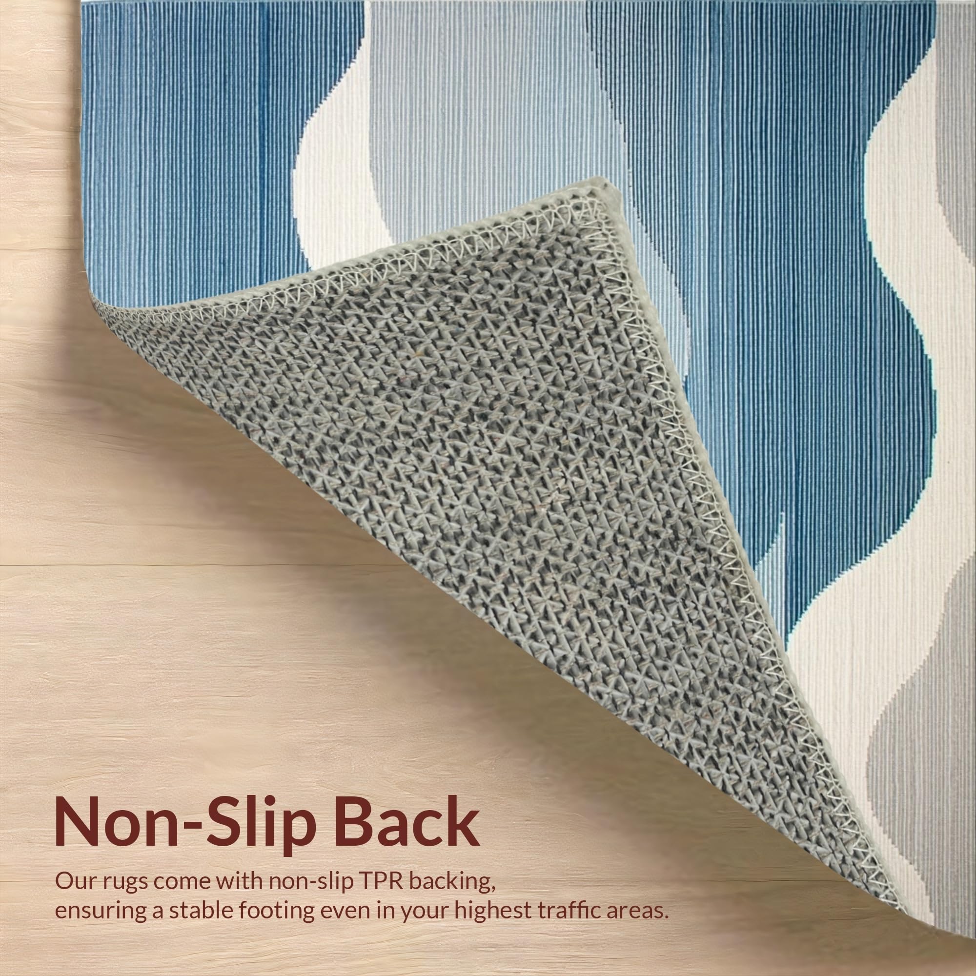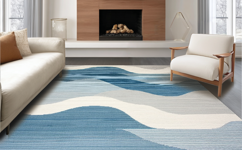 Ultra Soft Area Rug, Non Slip, Stain Resistant, Washable Area Rugs for Living Room, Bedroom, Whimsical Curved Jute Aesthetic(Blue) Overview: