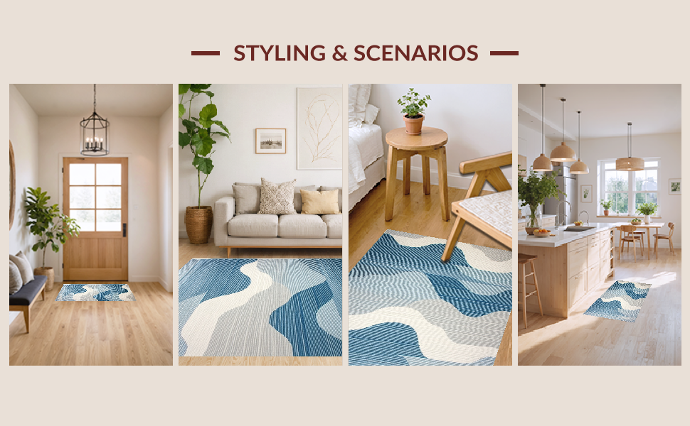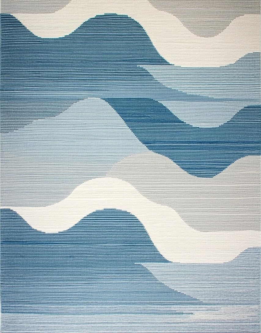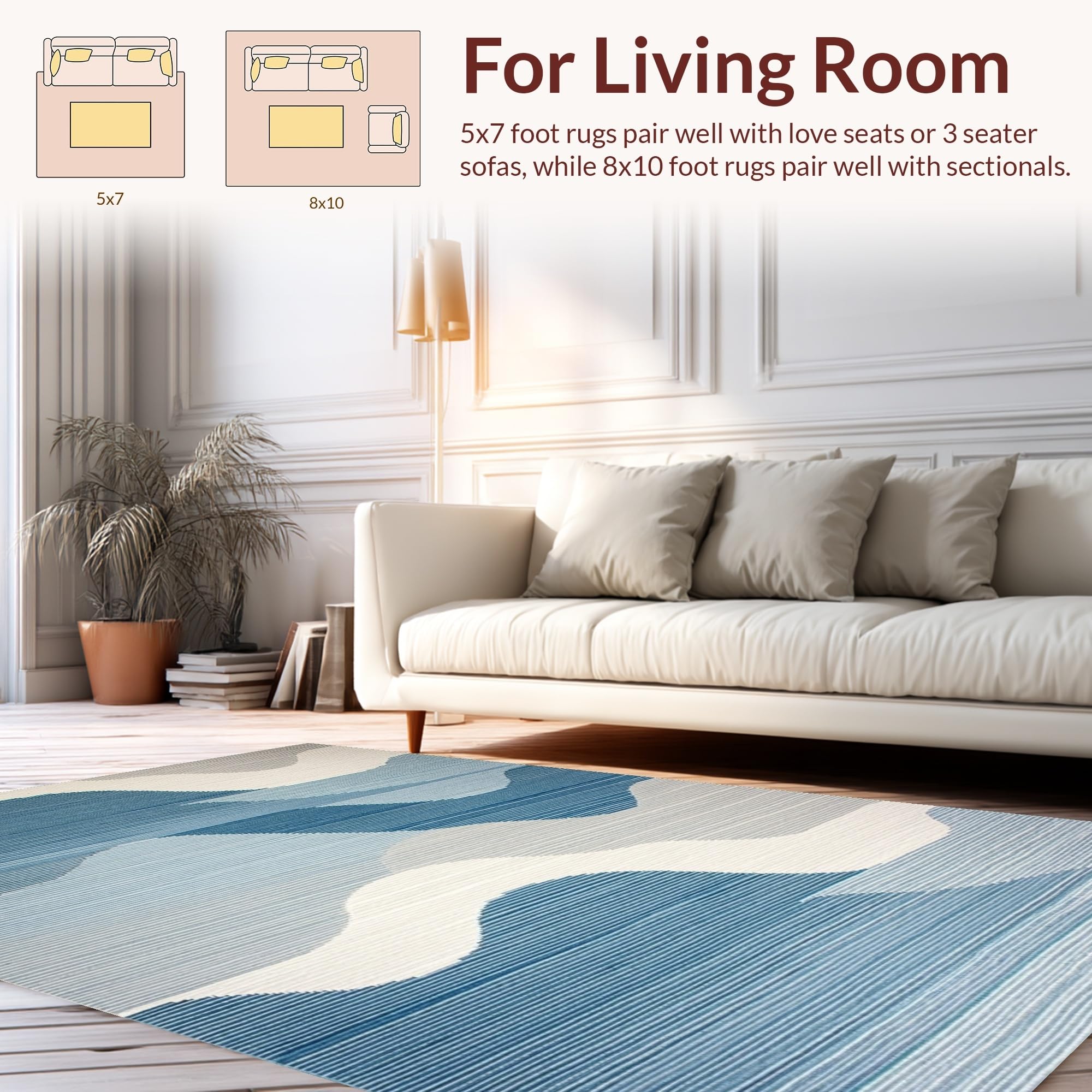 Ultra Soft Area Rug, Non Slip, Stain Resistant, Washable Area Rugs for Living Room, Bedroom, Whimsical Curved Jute Aesthetic(Blue) Overview: