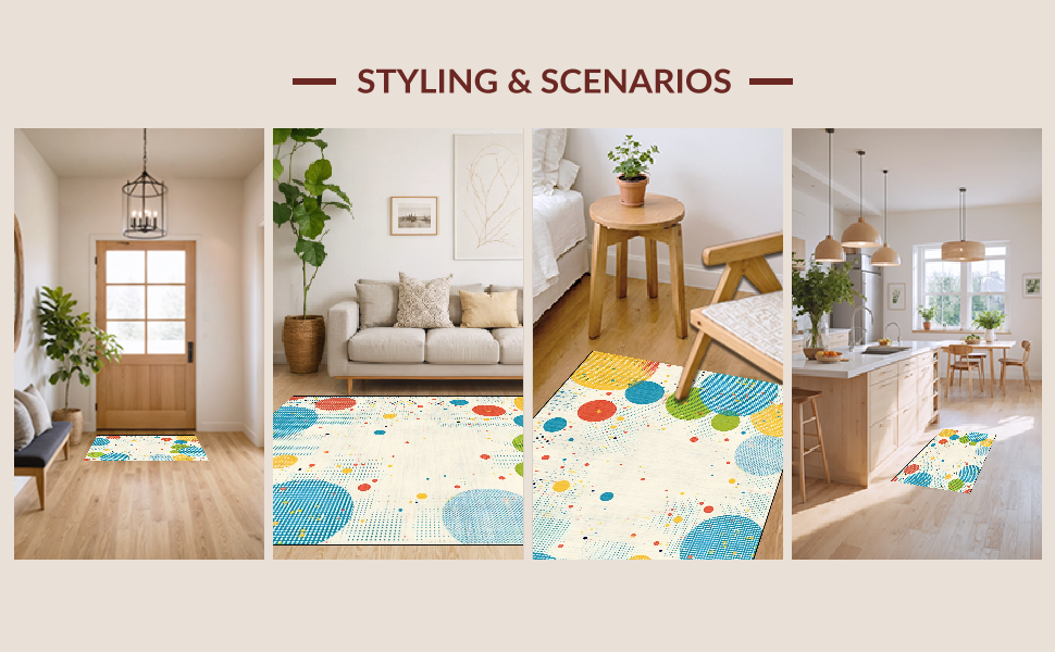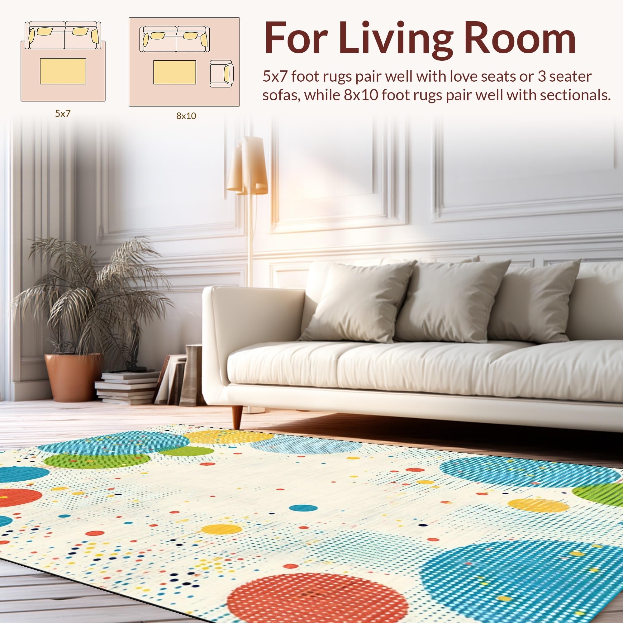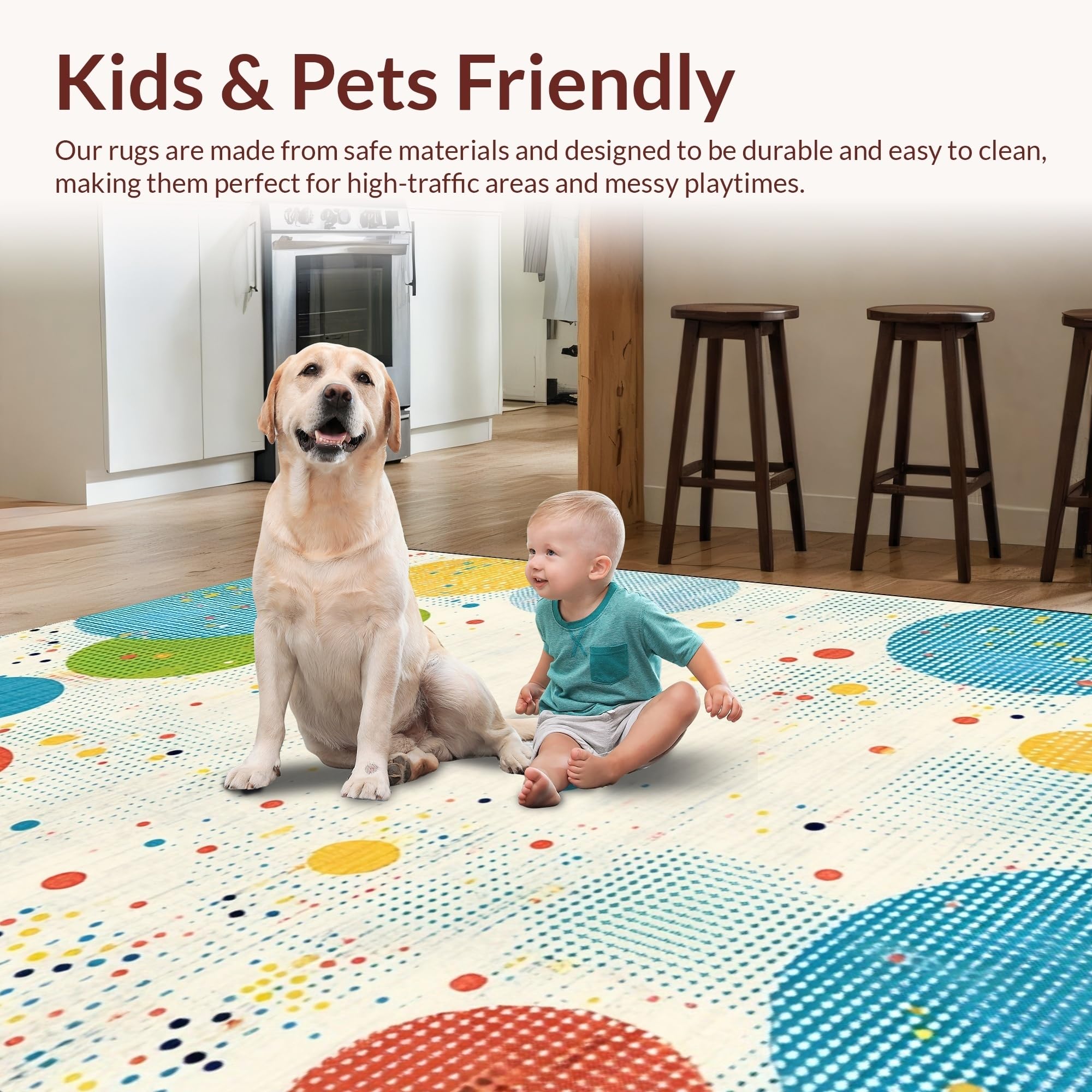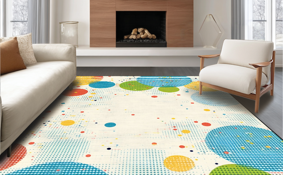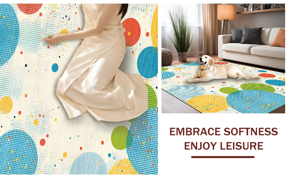 Ultra Soft Area Rug, Non Slip, Stain Resistant, Washable Area Rugs for Living Room, Bedroom, Whimsical Dotted Palette Aesthetic(Blue) Overview: