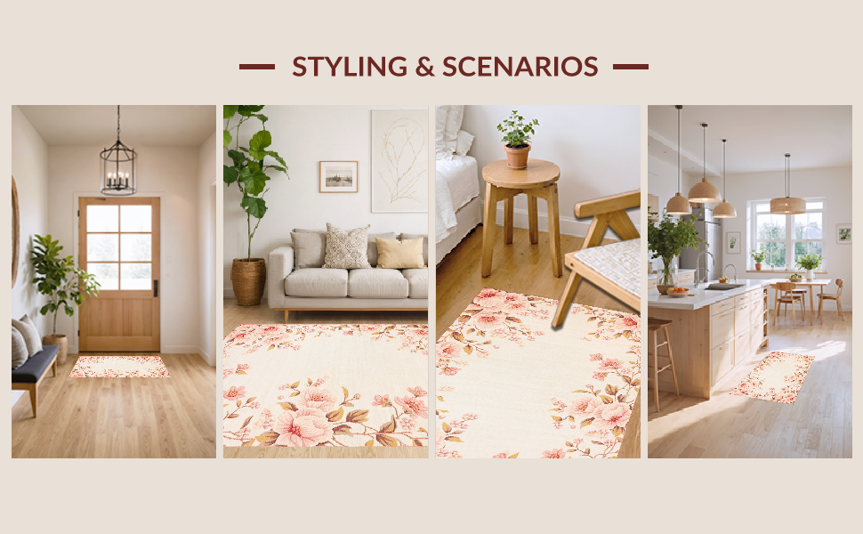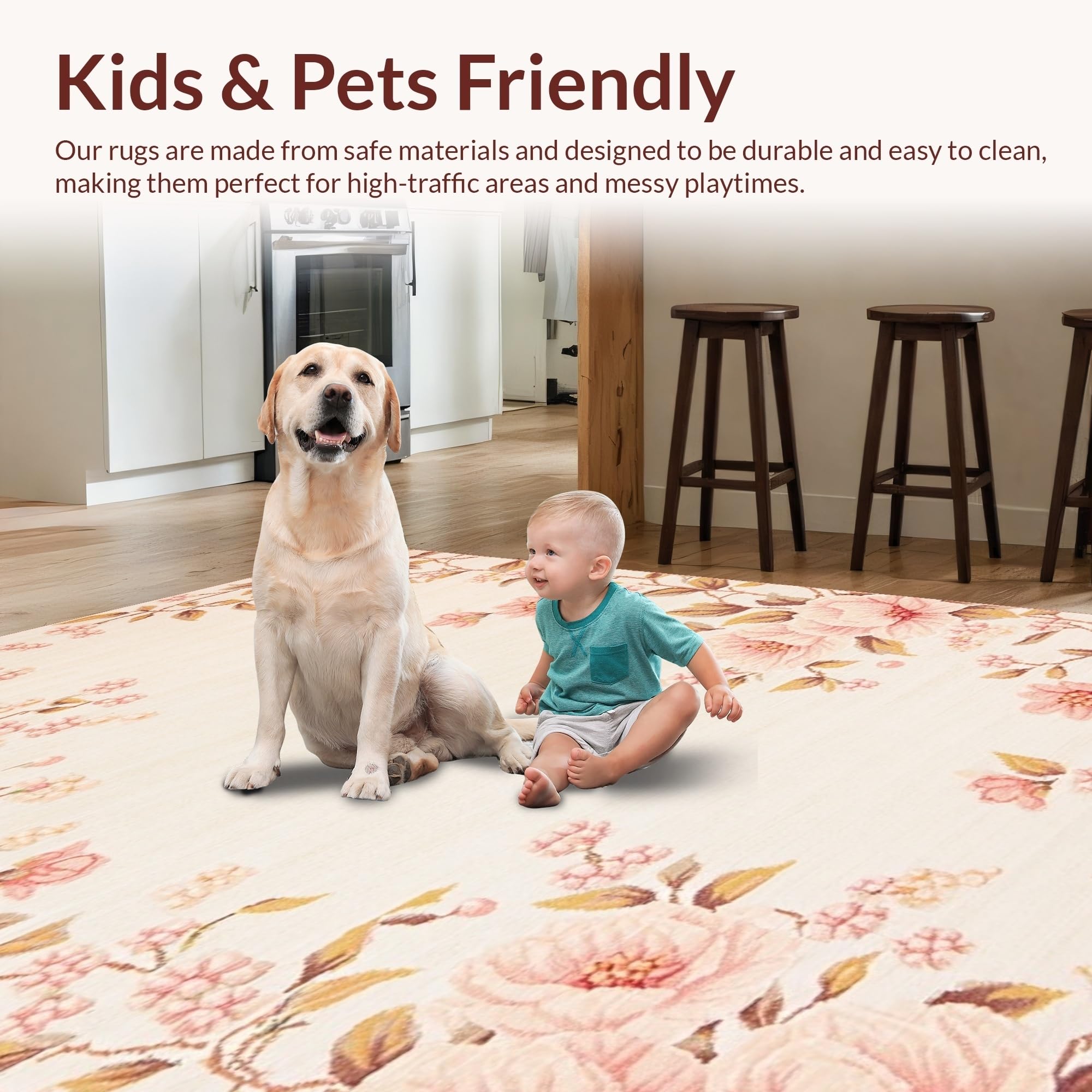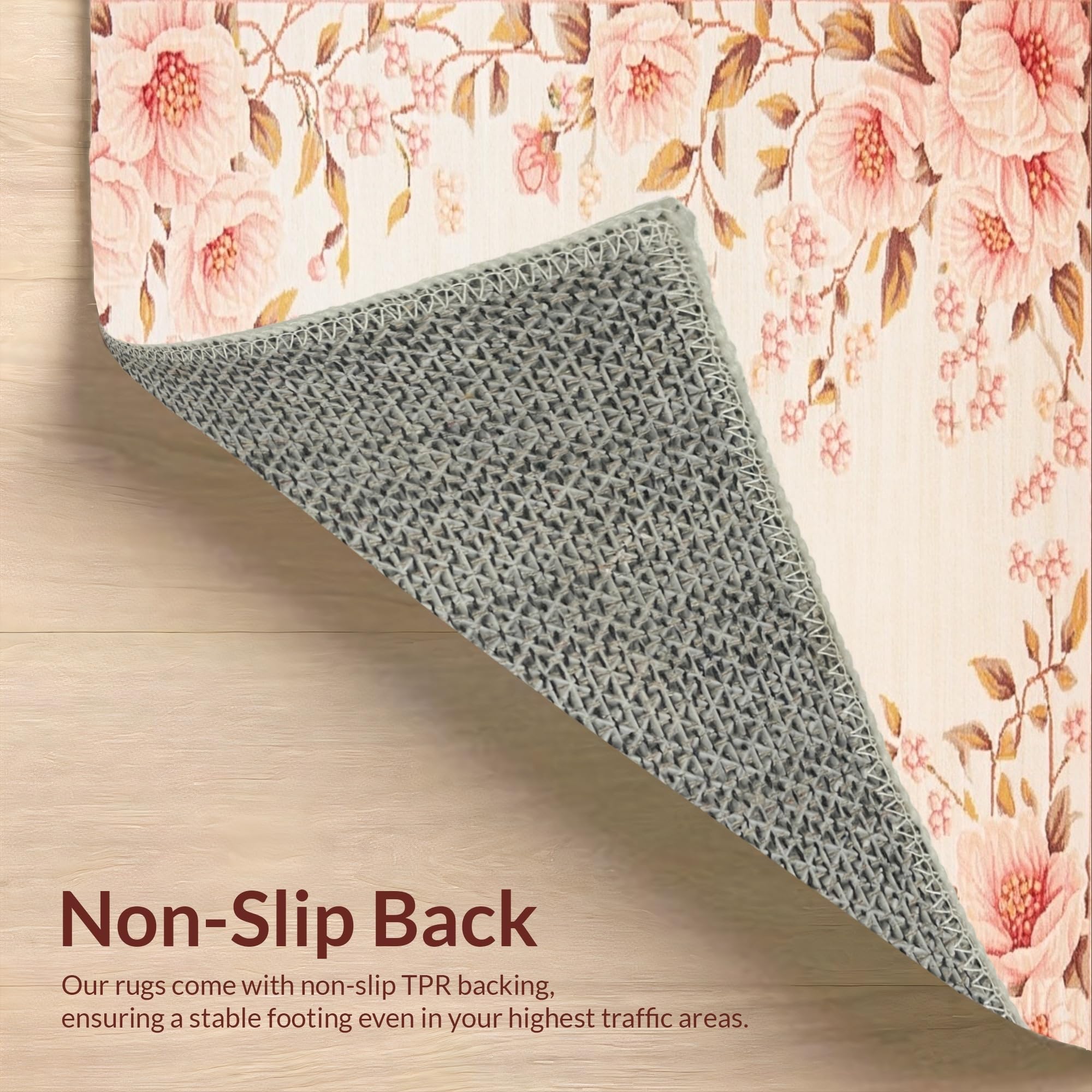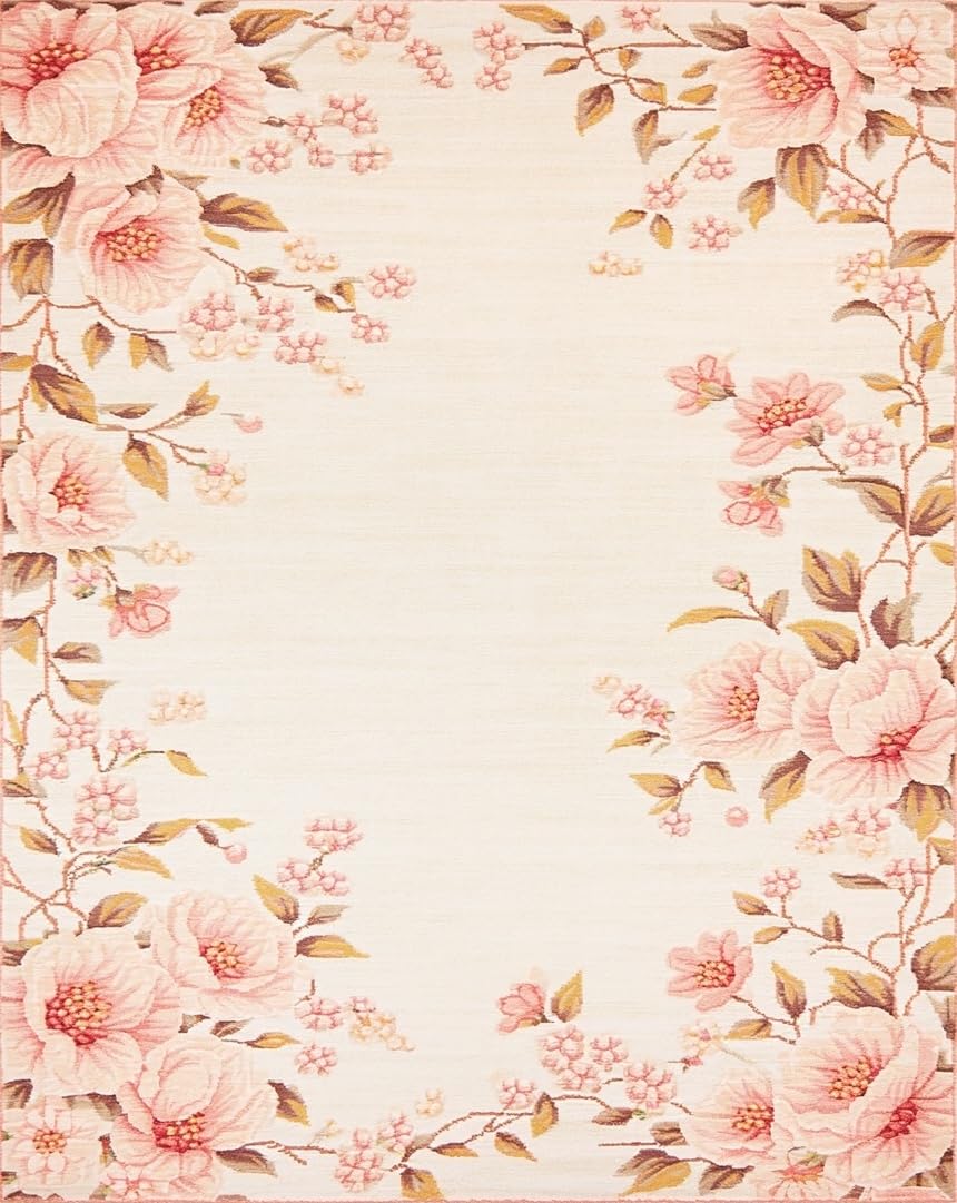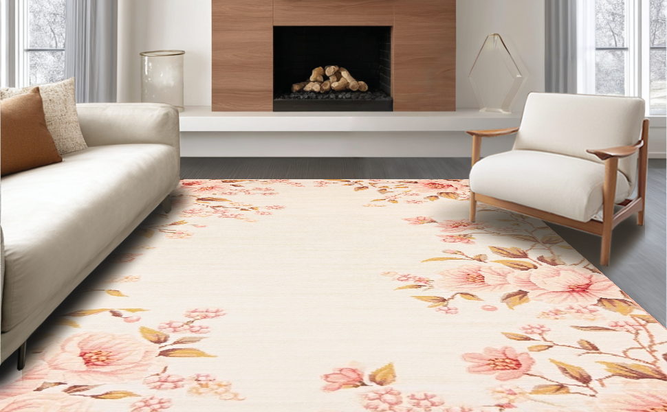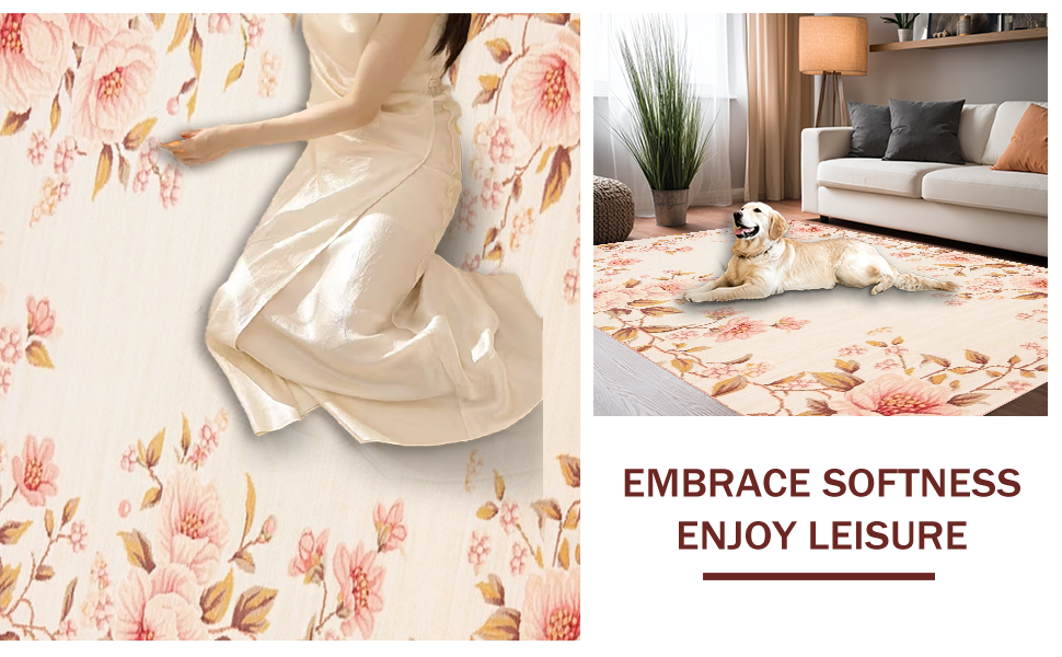 Ultra Soft Area Rug, Non Slip, Stain Resistant, Washable Area Rugs for Living Room, Bedroom, Whimsical Earthy Floral Aesthetic(Pink) Overview: