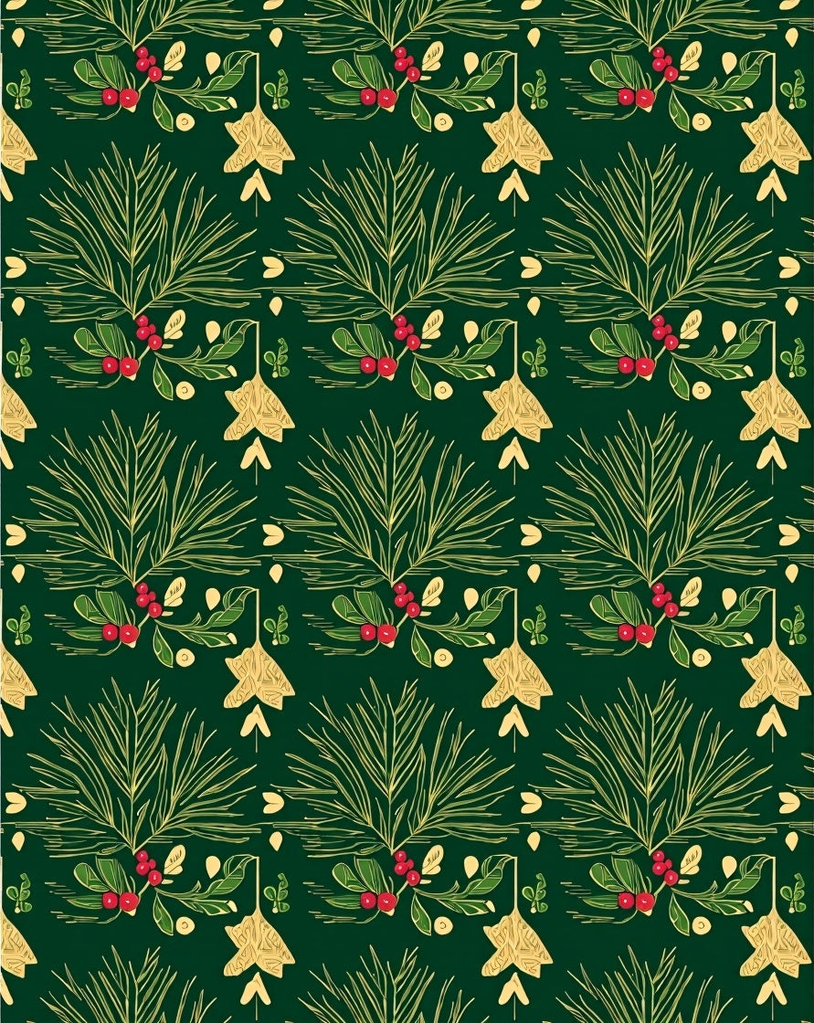 Whimsical Evergreen Interlocking Pine Needle and Holly Design(Green)