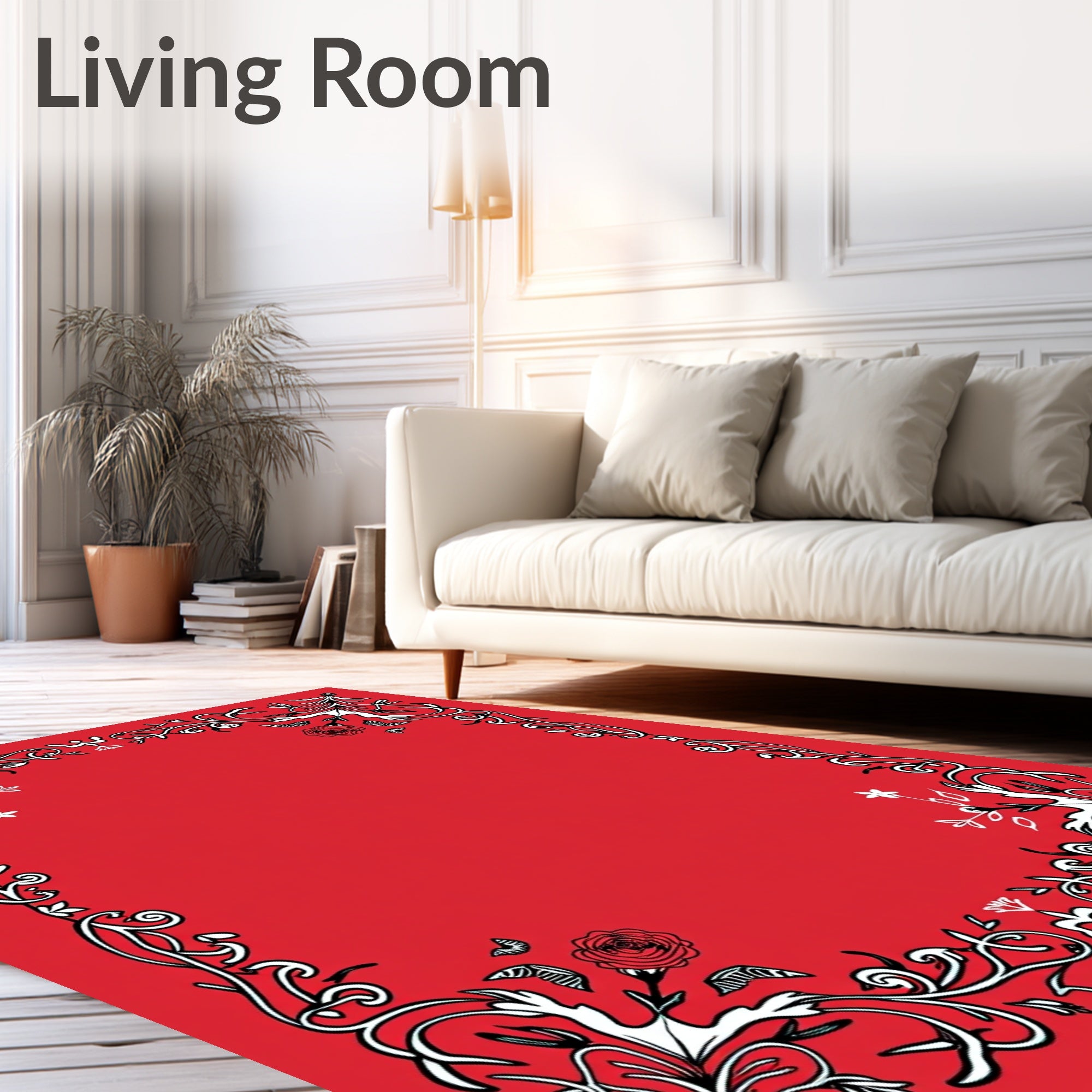 Ultra Soft Area Rug, Non Slip, Stain Resistant, Washable Area Rugs for Living Room, Bedroom, Whimsical Fairytale Garden Wonderland Decorative Surface Cover Playmat(Red) Overview: