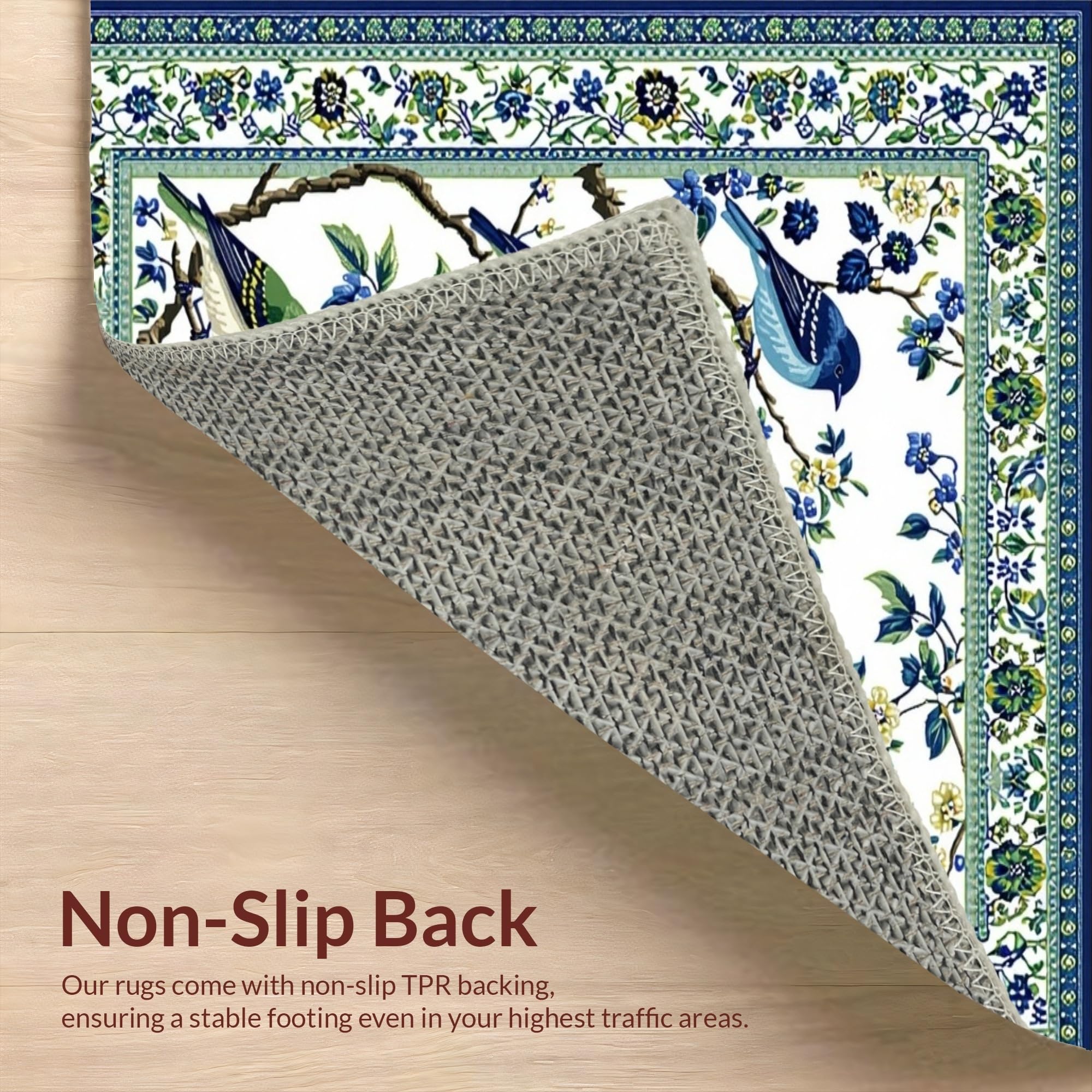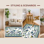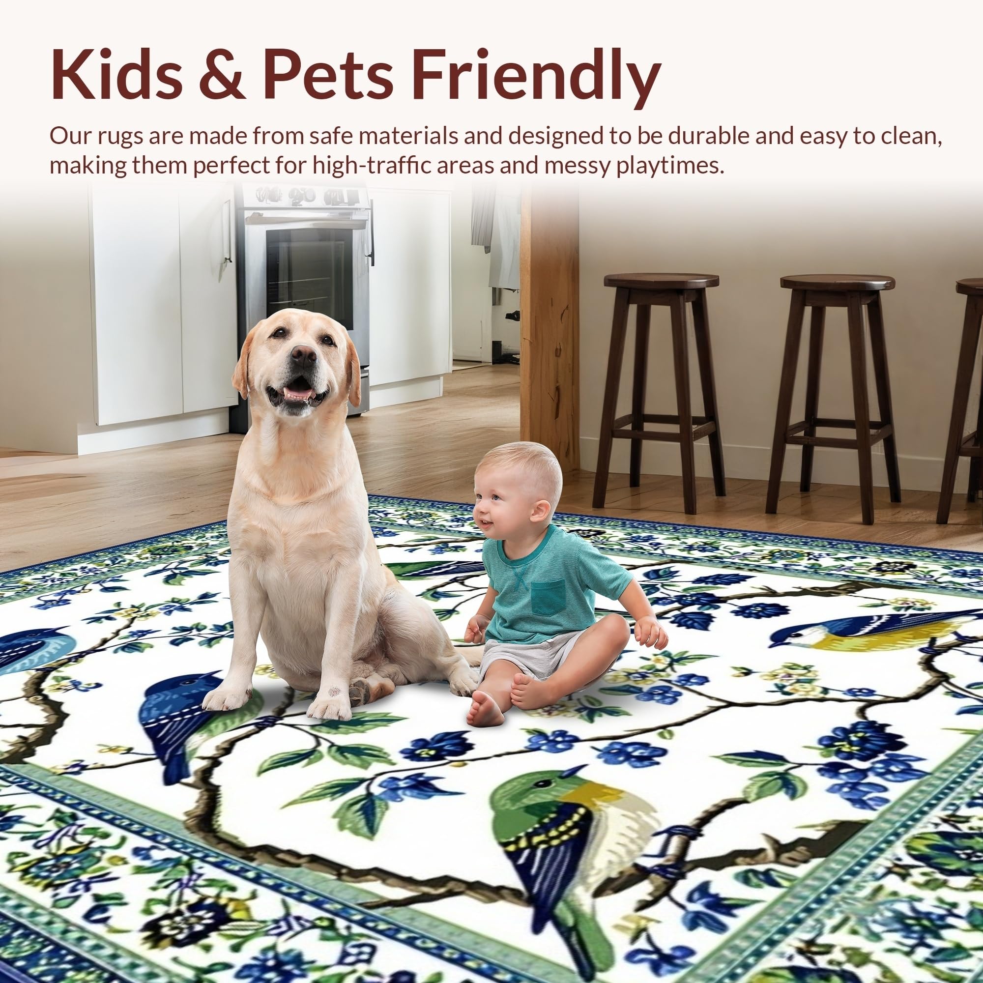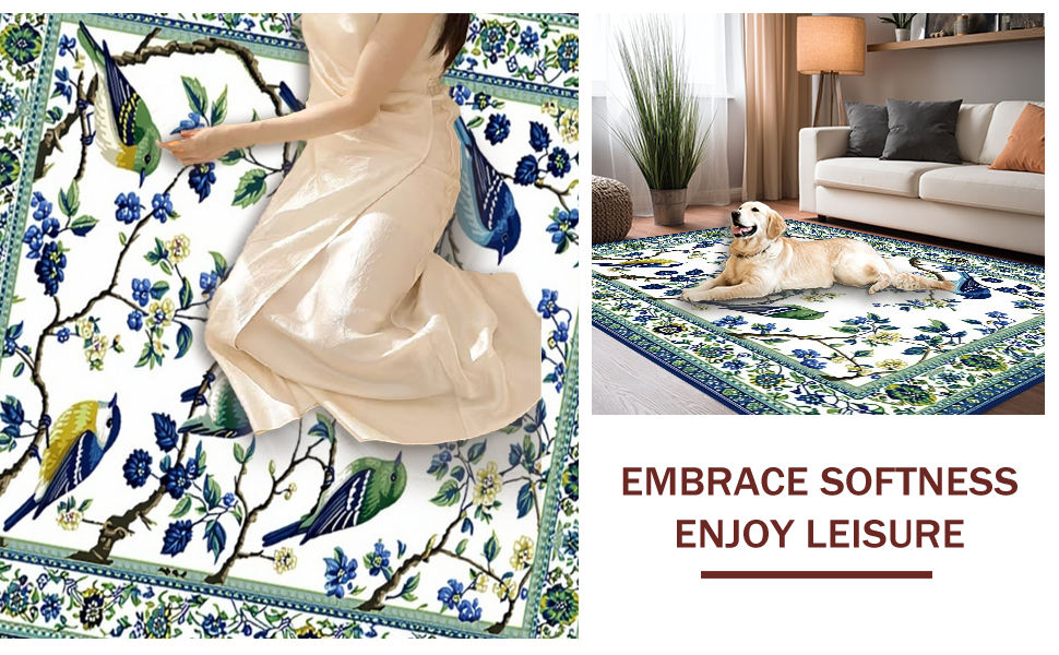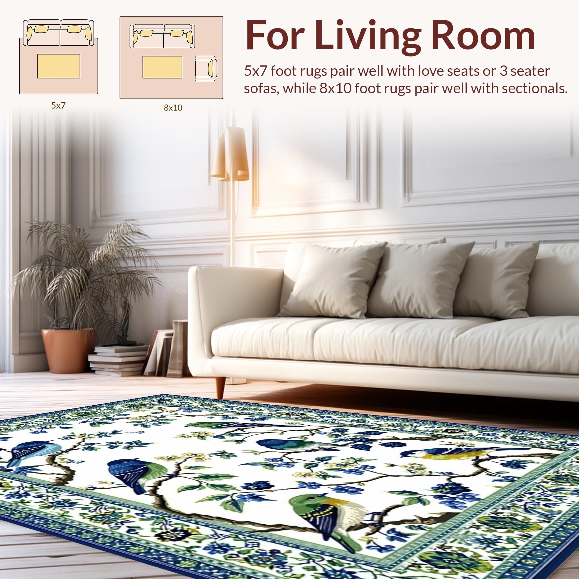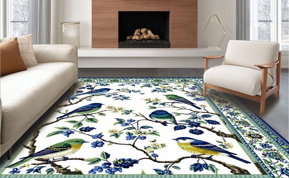 Ultra Soft Area Rug, Non Slip, Stain Resistant, Washable Area Rugs for Living Room, Bedroom, Whimsical Feathered Theme with Branches(White) Overview:
