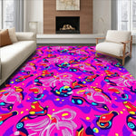 Ultra Soft Area Rug, Non Slip, Stain Resistant, Washable Area Rugs for Living Room, Bedroom, Whimsical Feline Motif with Colorful Pulsing Light Embellishments(Pink) Overview: