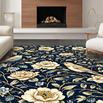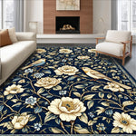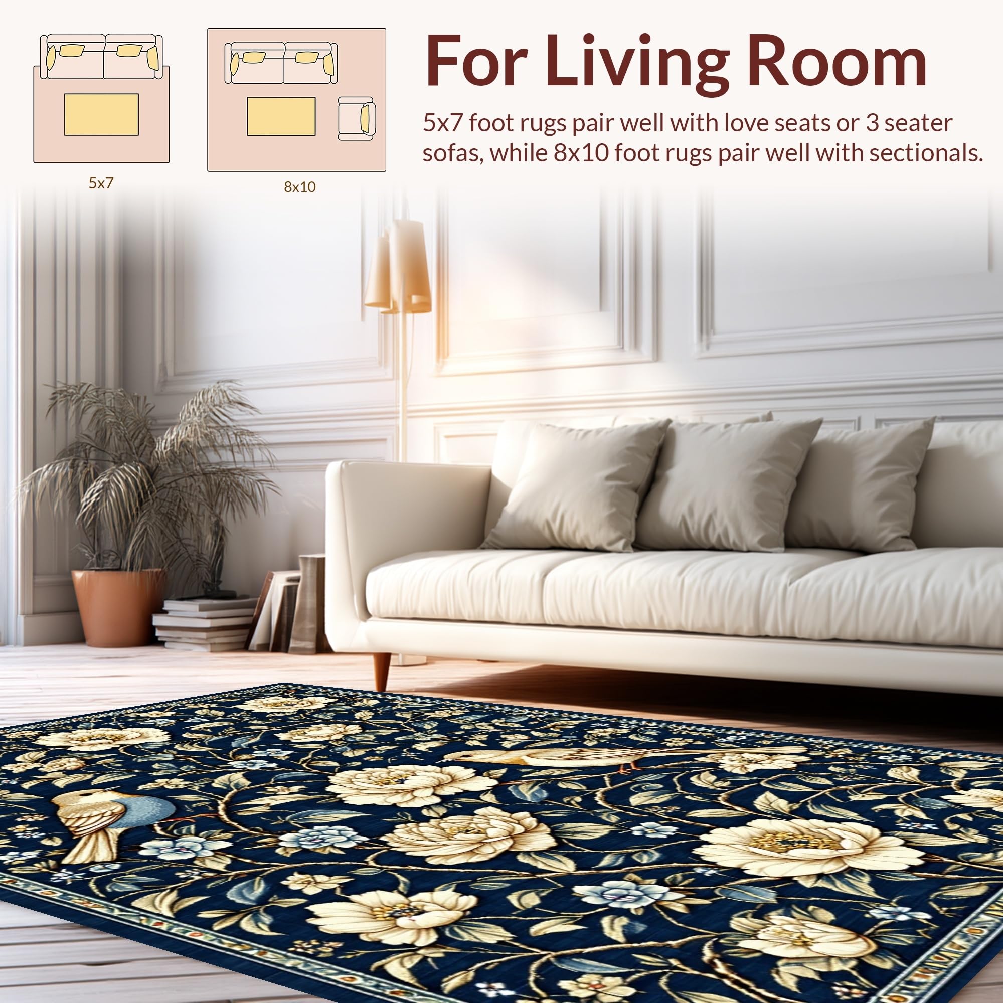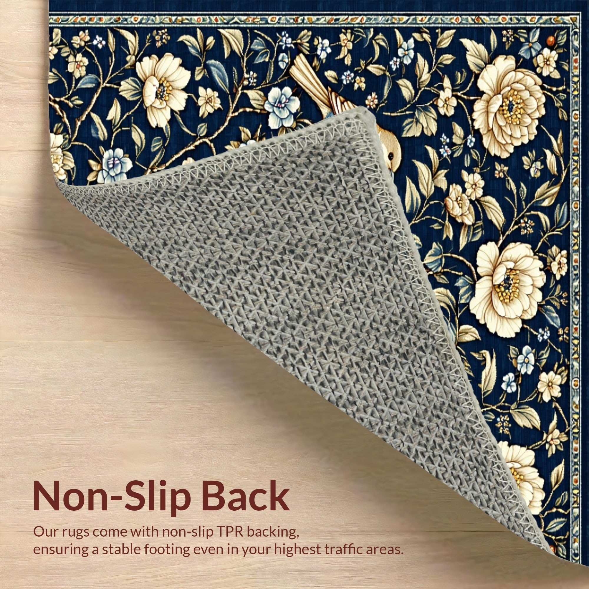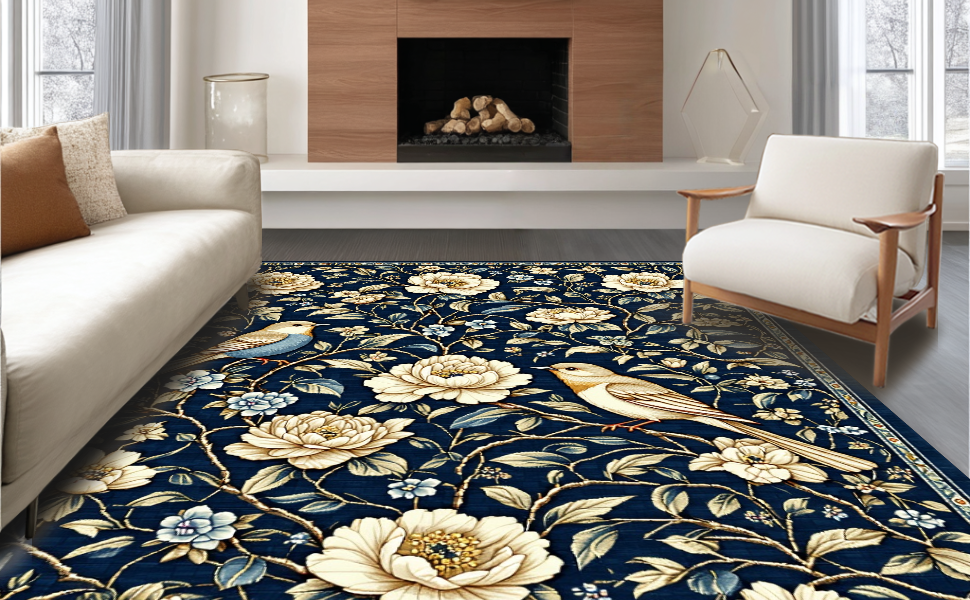 Ultra Soft Area Rug, Non Slip, Stain Resistant, Washable Area Rugs for Living Room, Bedroom, Whimsical Floral and Bird Fusion(Blue) Overview: