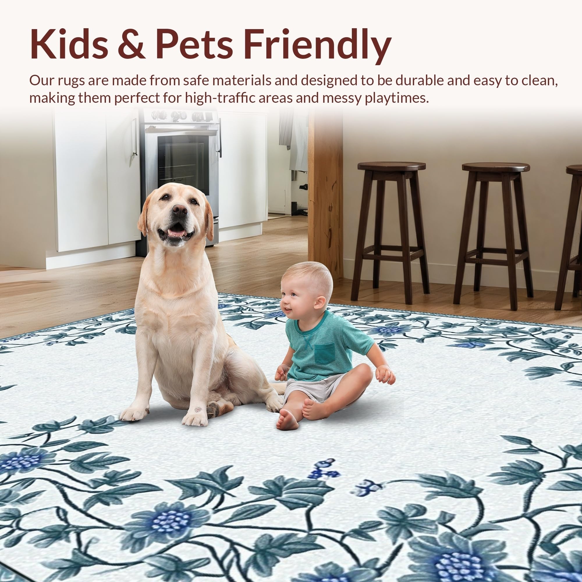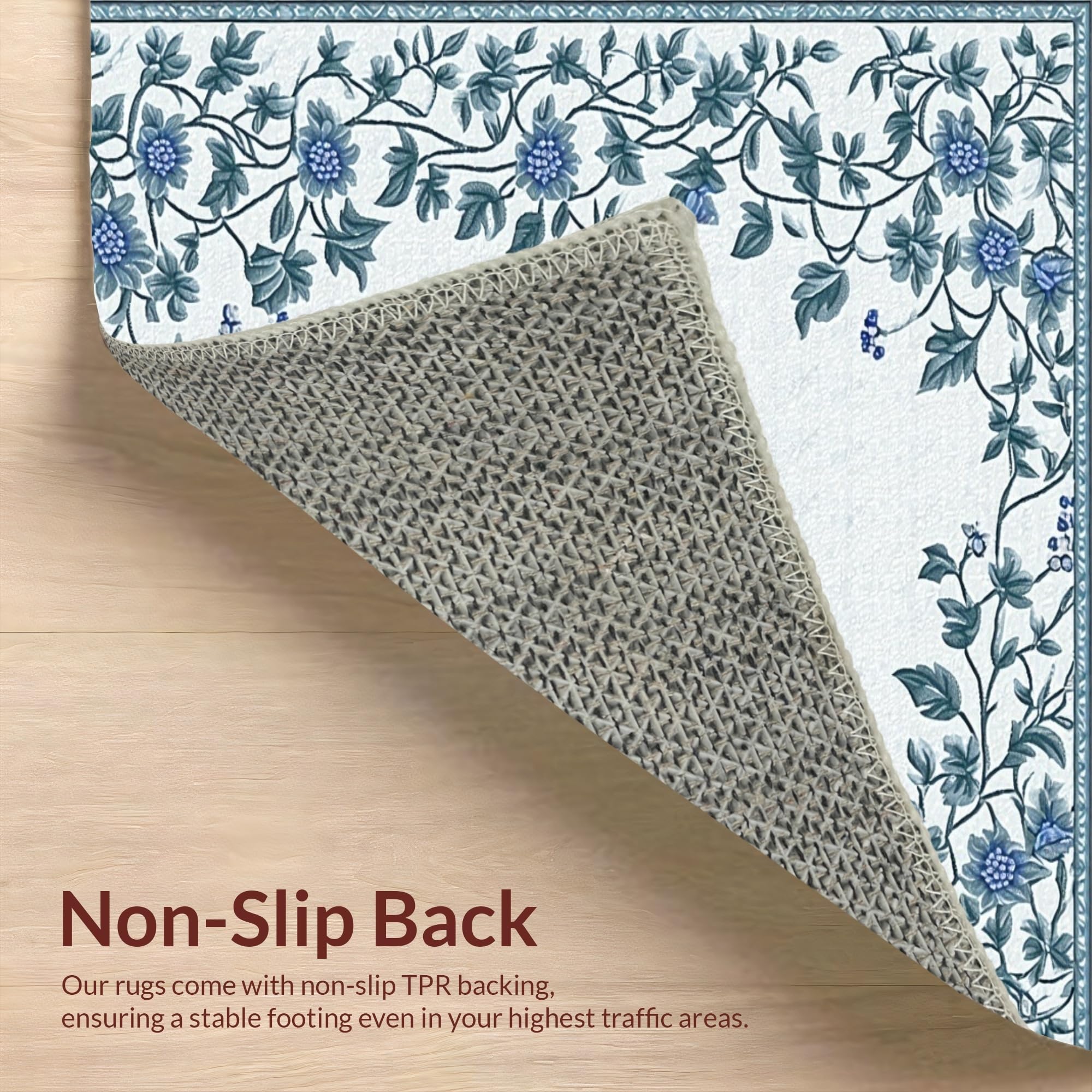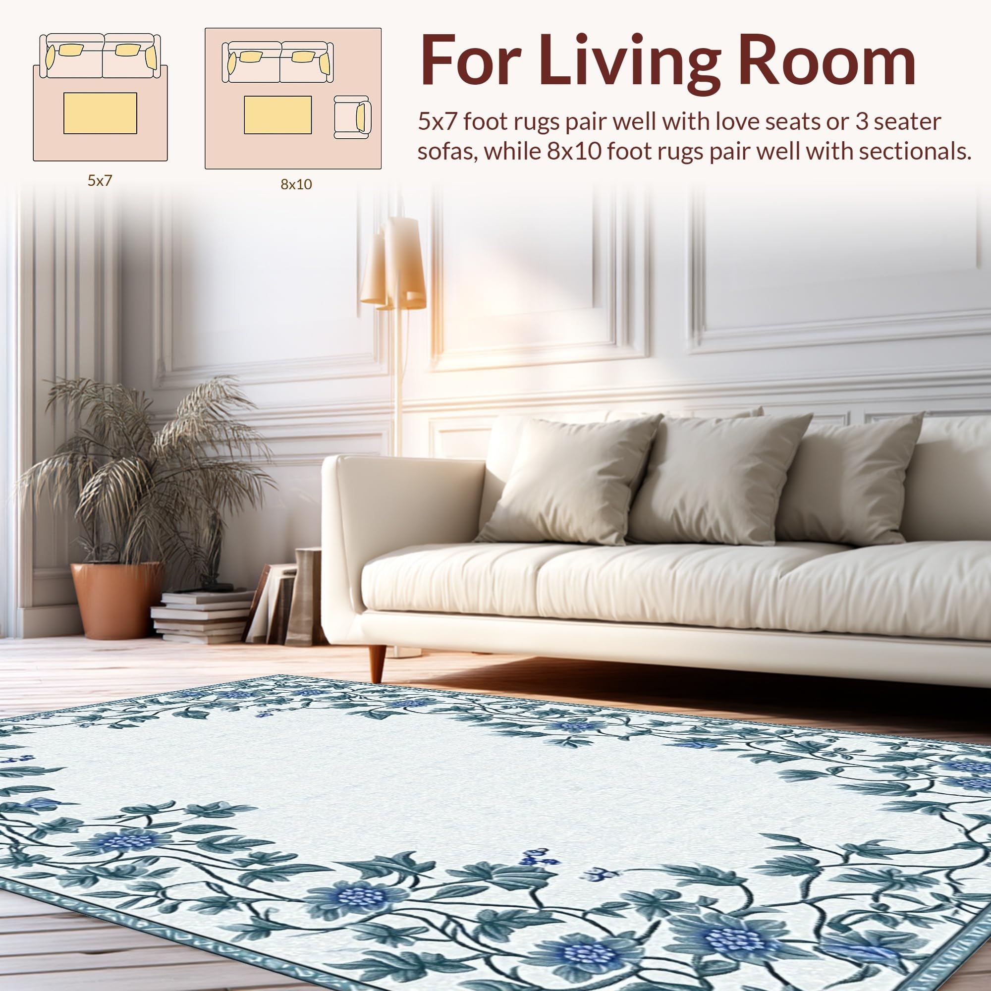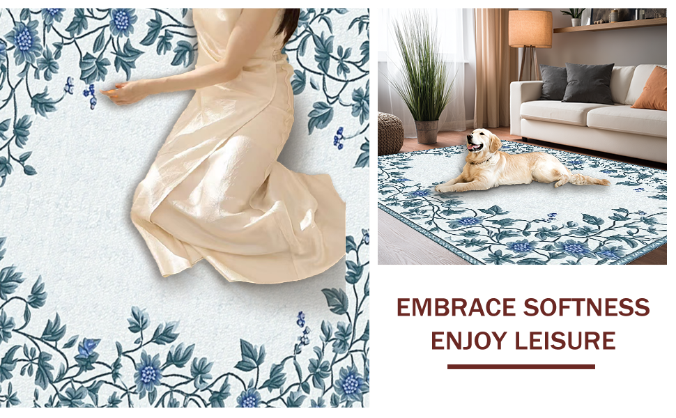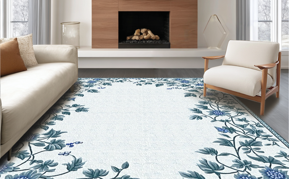 Ultra Soft Area Rug, Non Slip, Stain Resistant, Washable Area Rugs for Living Room, Bedroom, Whimsical Floral Artistry Composition(Blue) Overview: