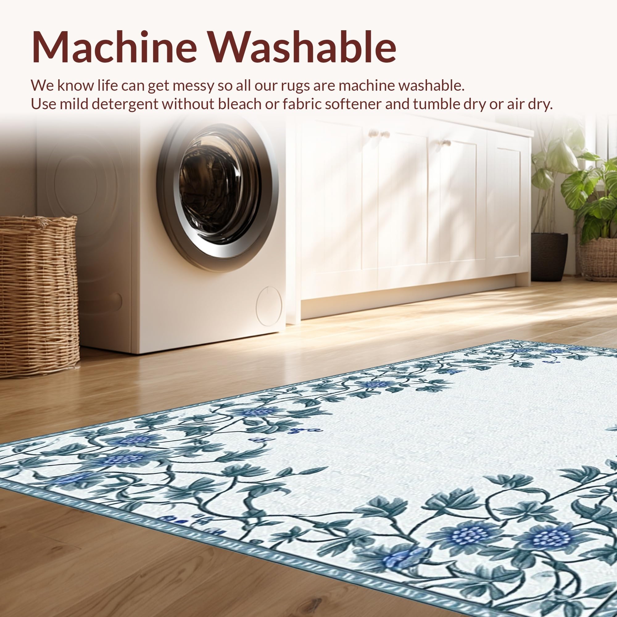- Machine Washable: Our rugs can be easily thrown in the wash machine.