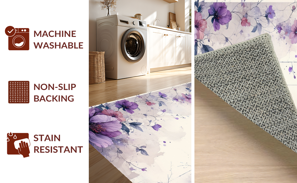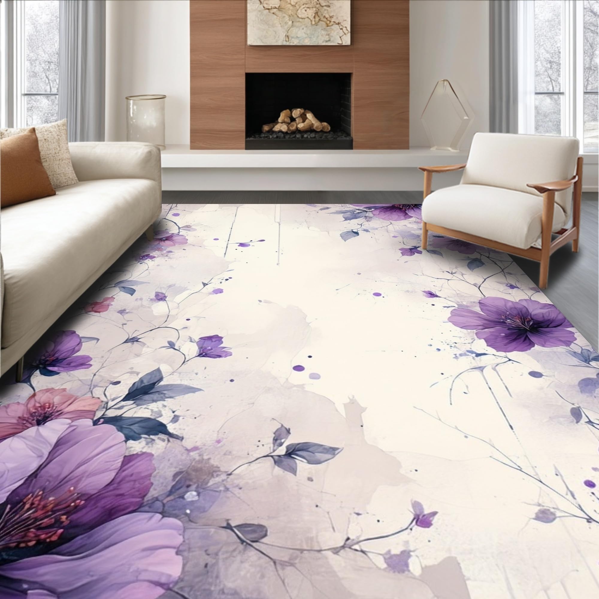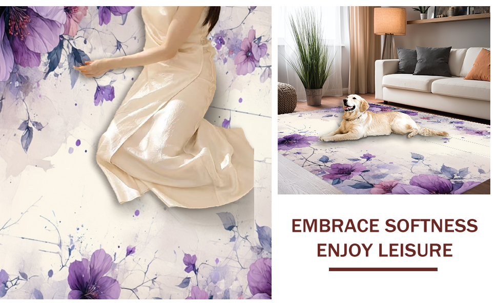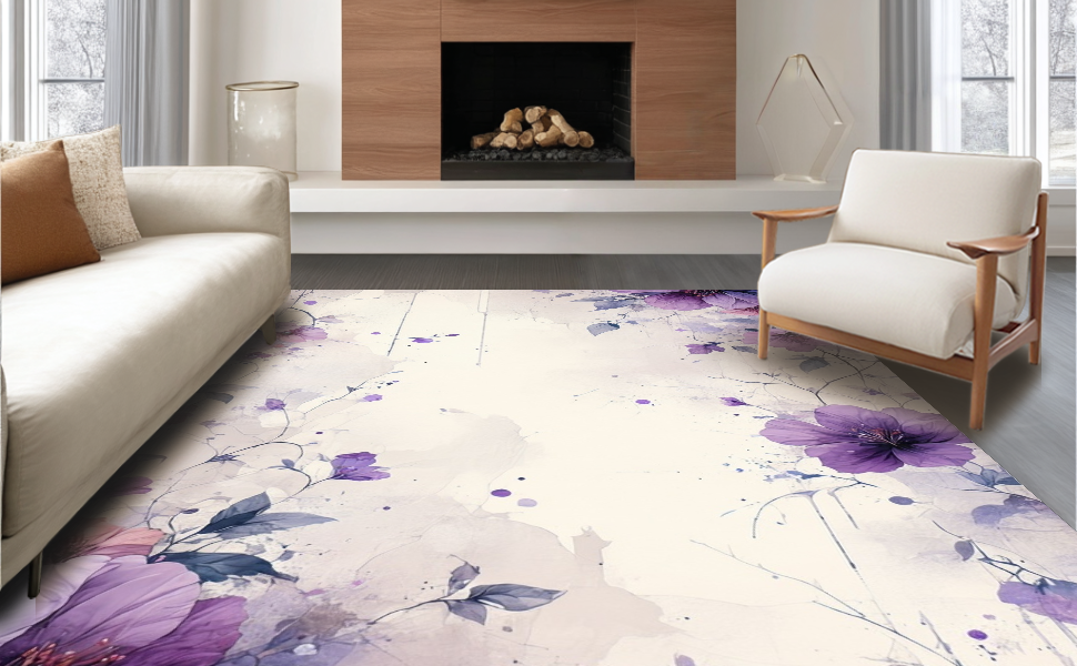 Ultra Soft Area Rug, Non Slip, Stain Resistant, Washable Area Rugs for Living Room, Bedroom, Whimsical Floral Brushstroke Creation(Purple) Overview: