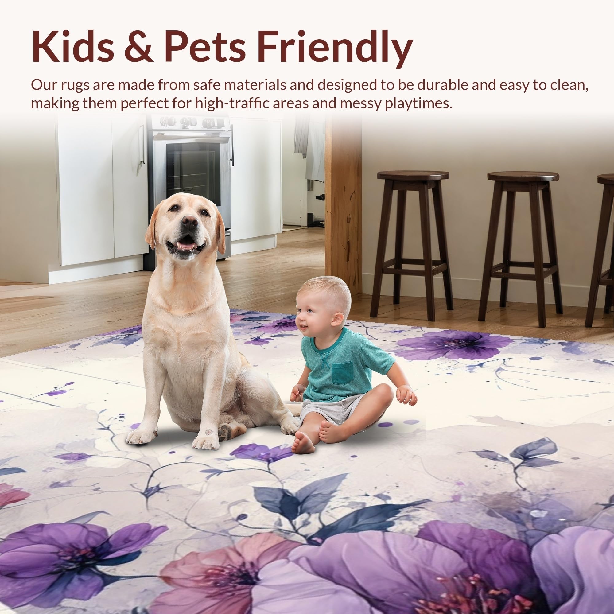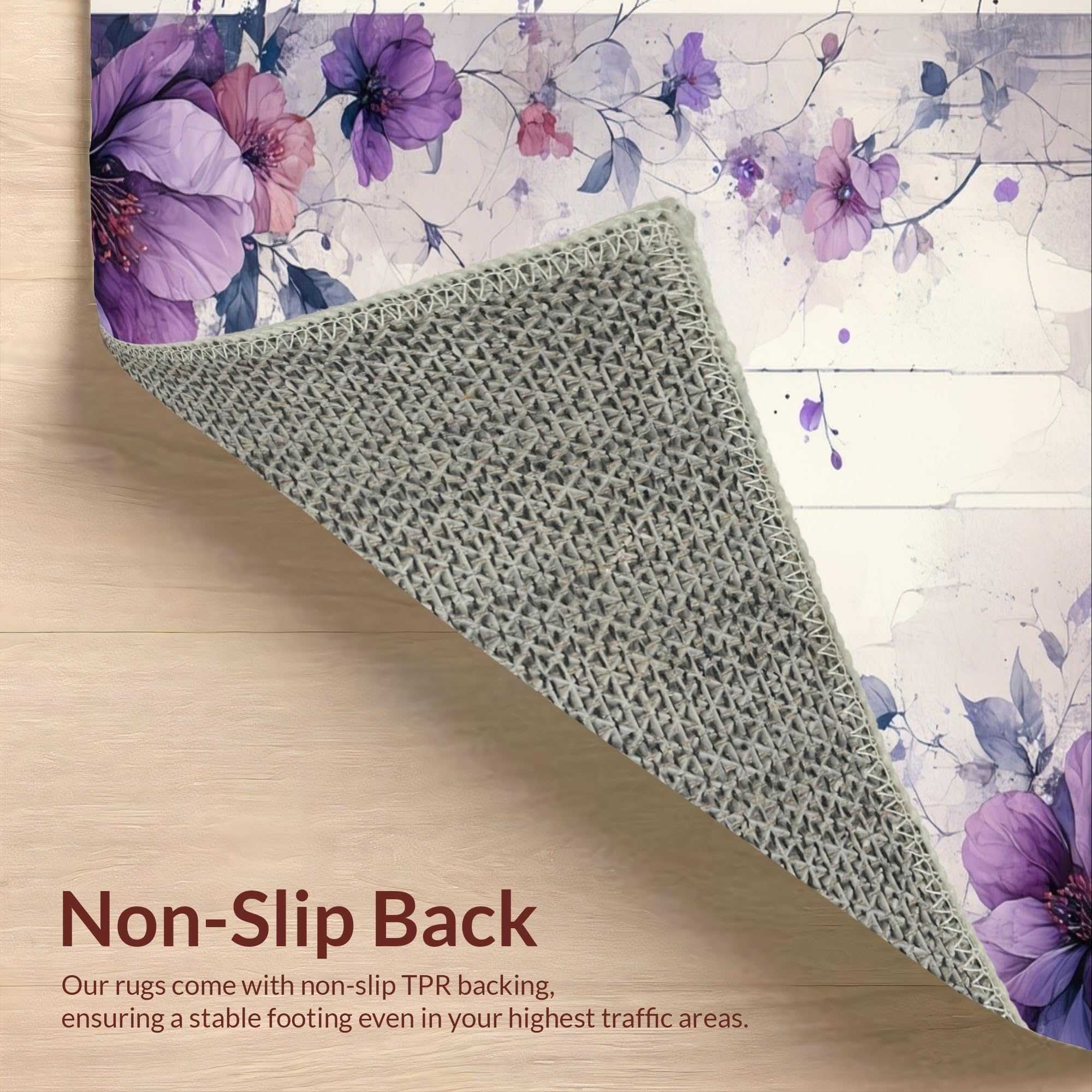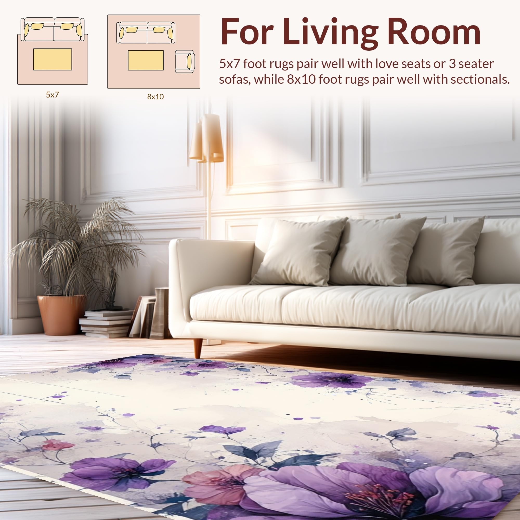 Ultra Soft Area Rug, Non Slip, Stain Resistant, Washable Area Rugs for Living Room, Bedroom, Whimsical Floral Brushstroke Creation(Purple) Overview: