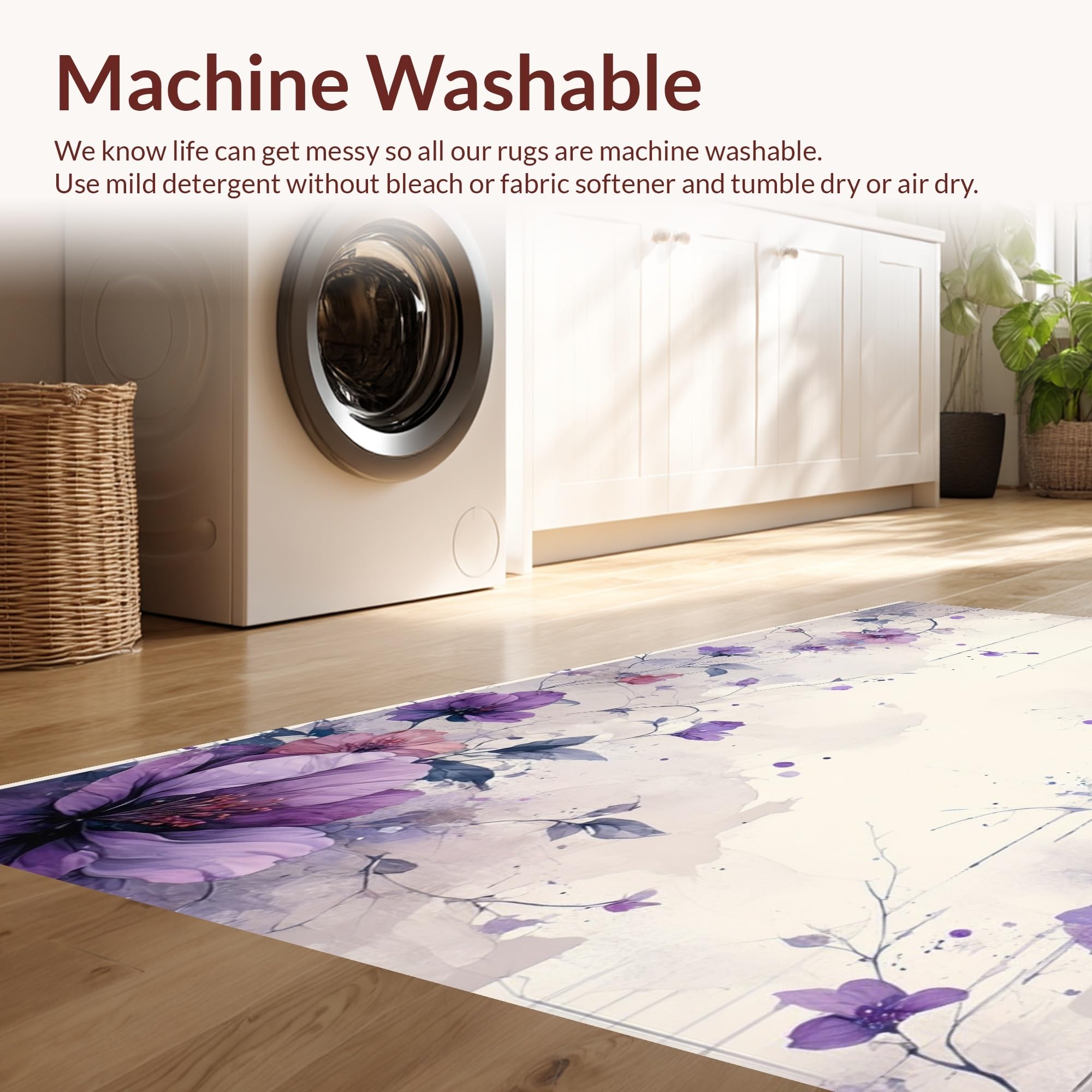 - Machine Washable: Our rugs can be easily thrown in the wash machine.