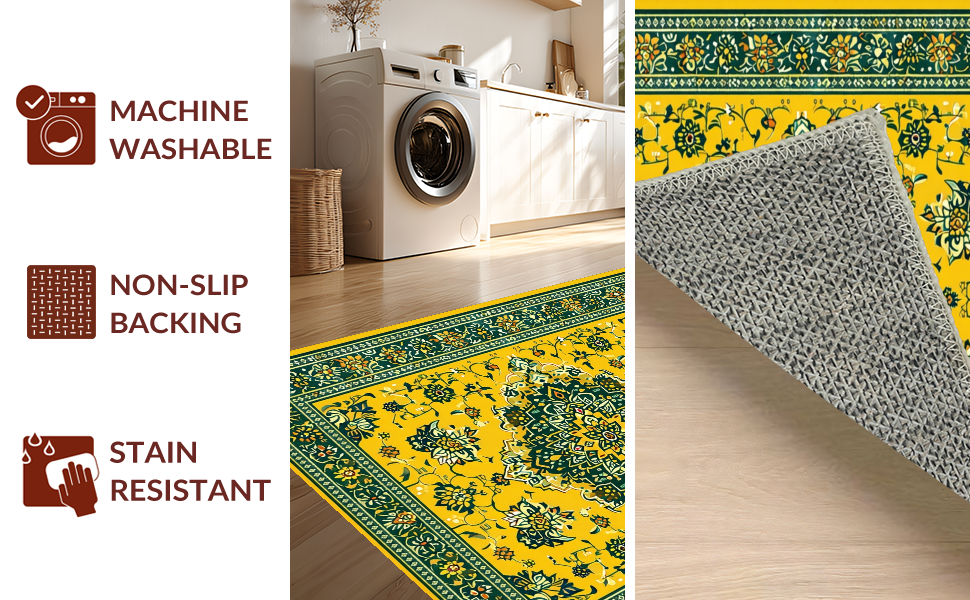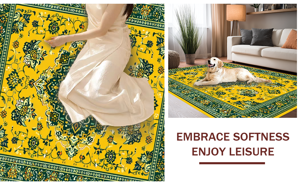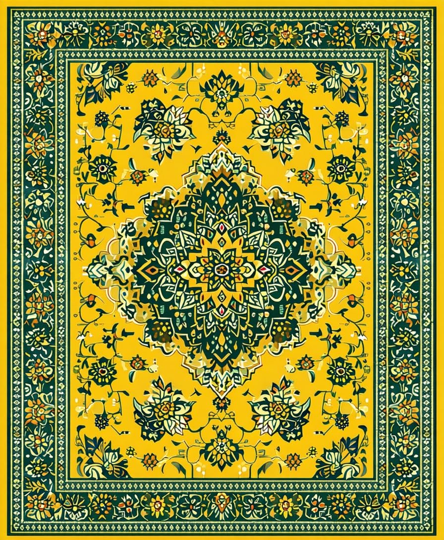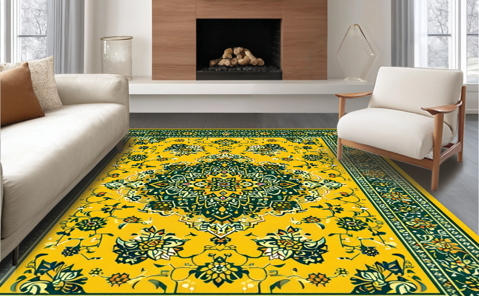 Ultra Soft Area Rug, Non Slip, Stain Resistant, Washable Area Rugs for Living Room, Bedroom, Whimsical Floral Medallion Delight(Yellow) Overview: