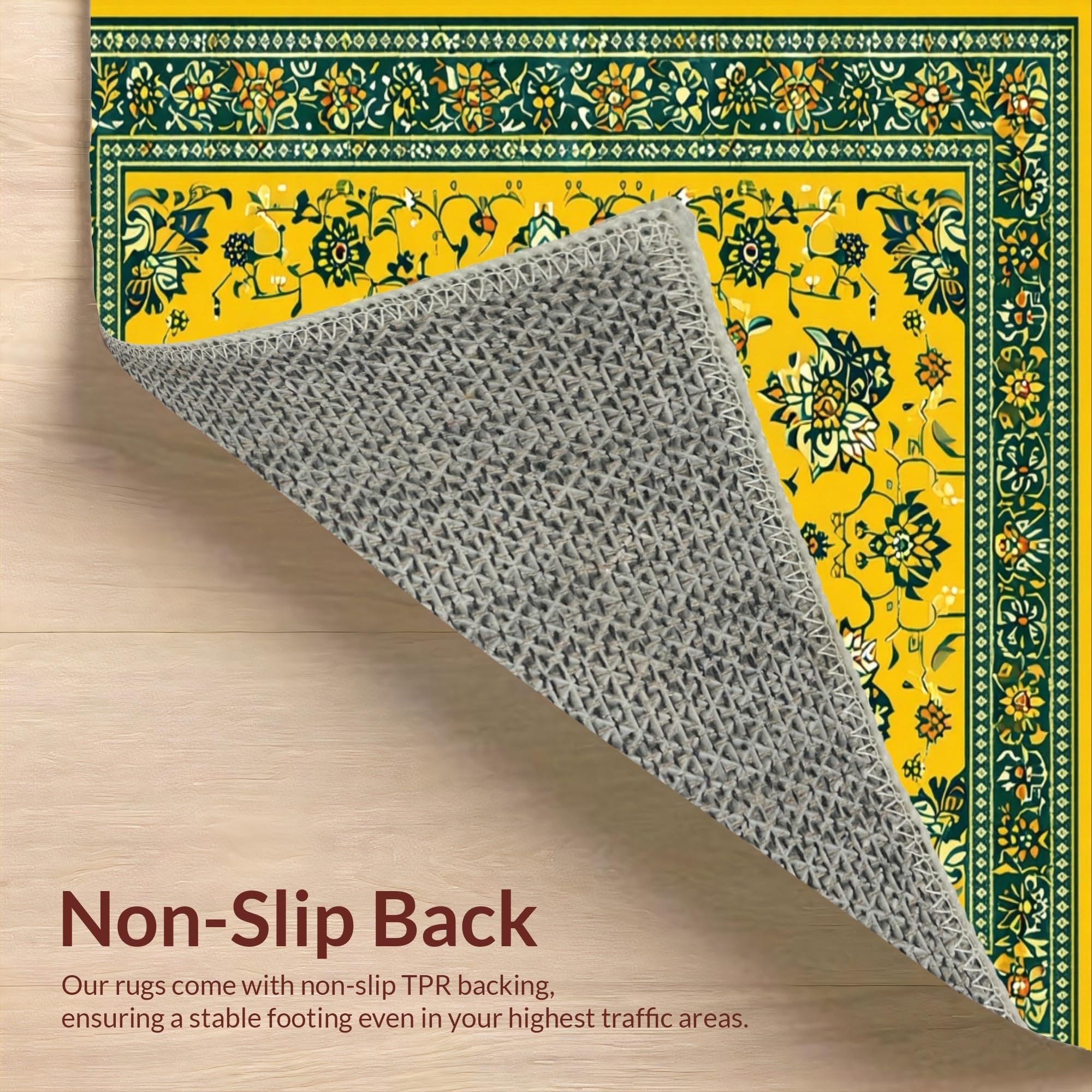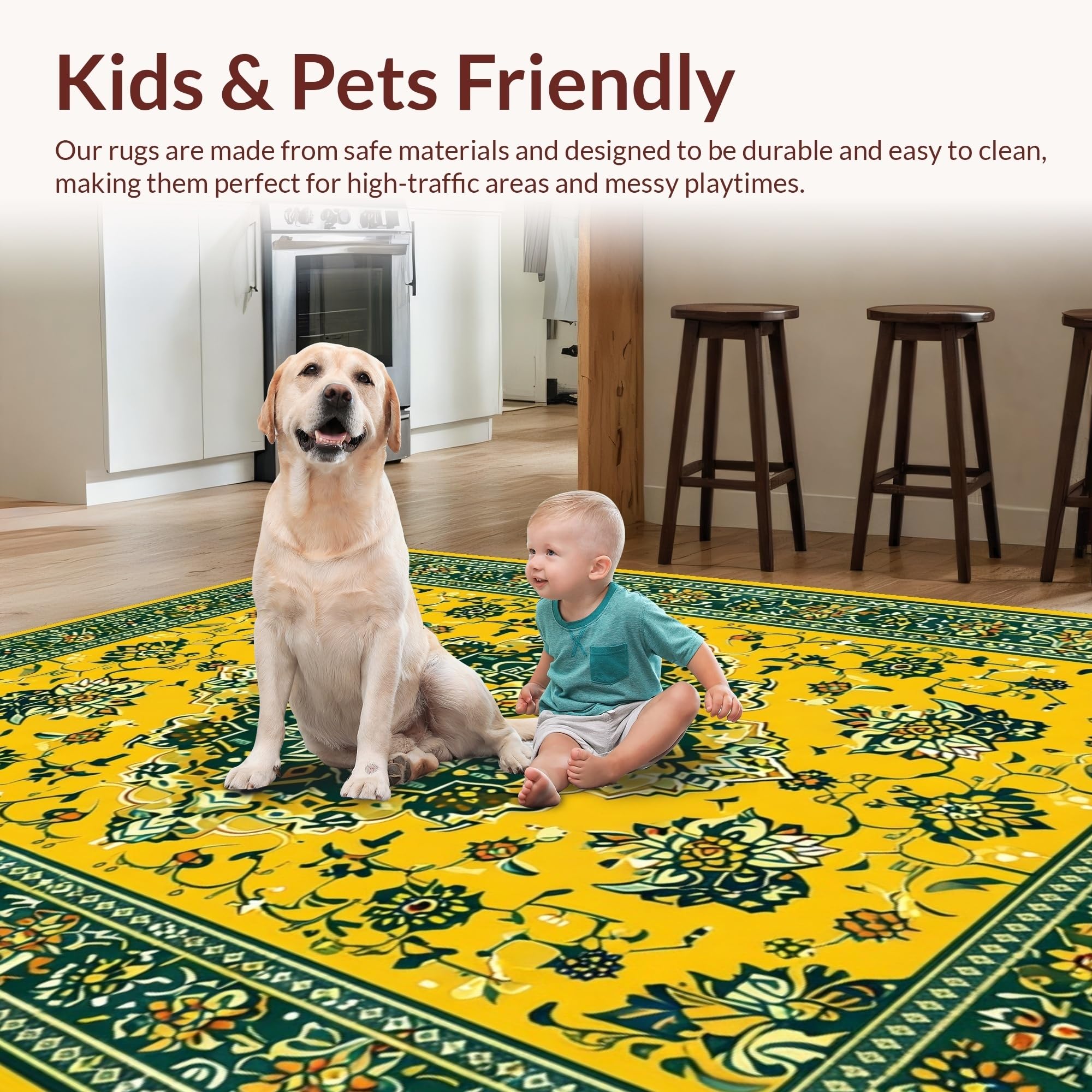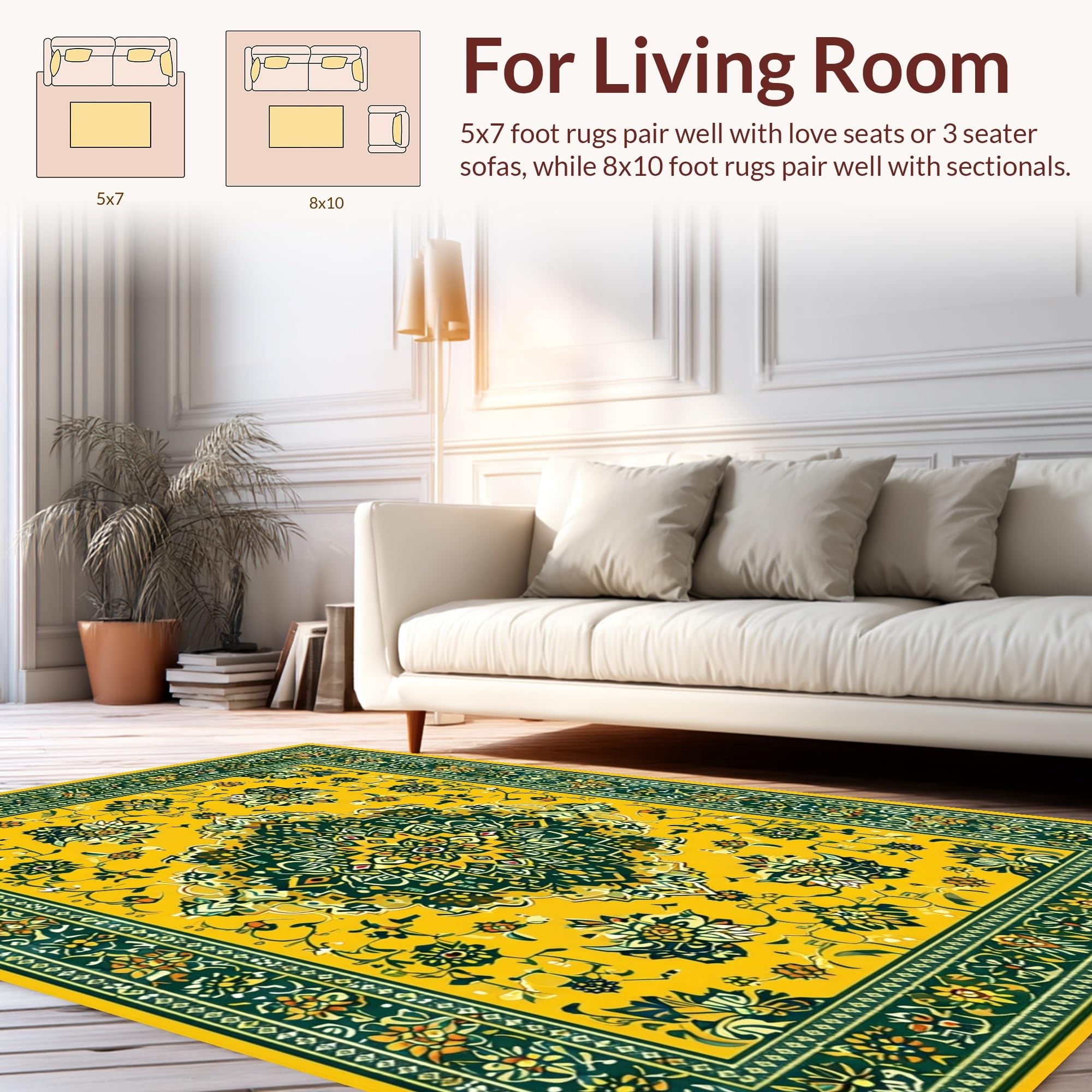 Ultra Soft Area Rug, Non Slip, Stain Resistant, Washable Area Rugs for Living Room, Bedroom, Whimsical Floral Medallion Delight(Yellow) Overview: